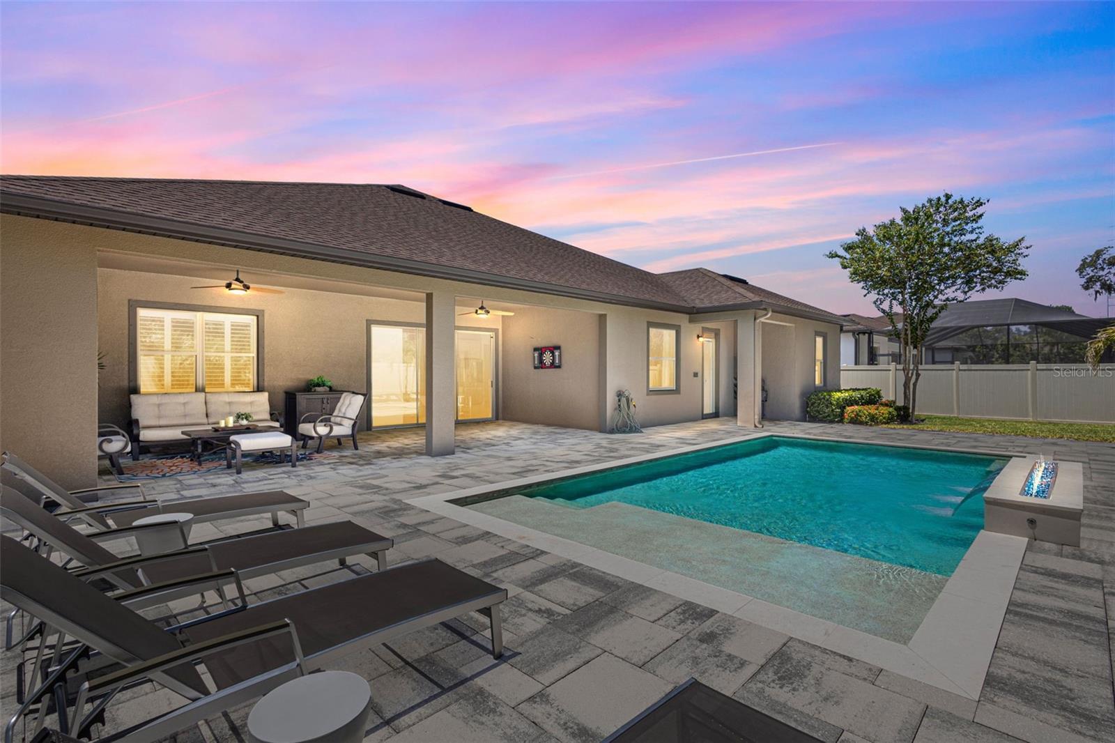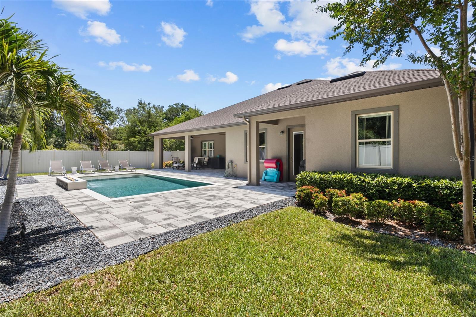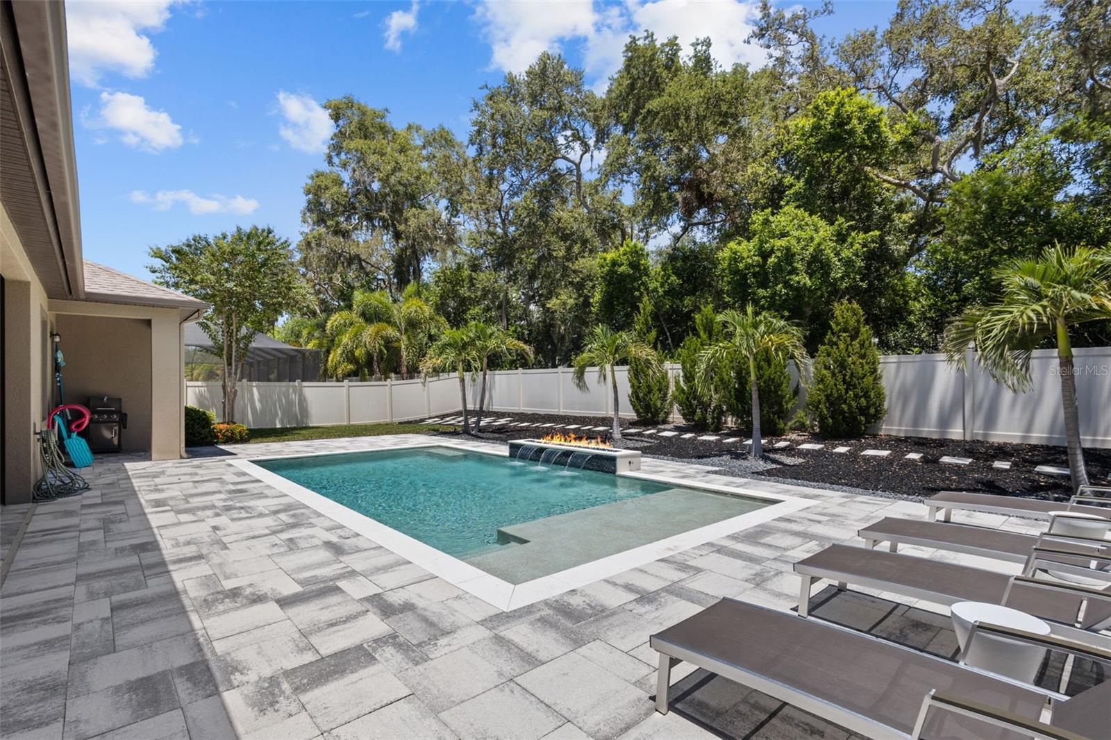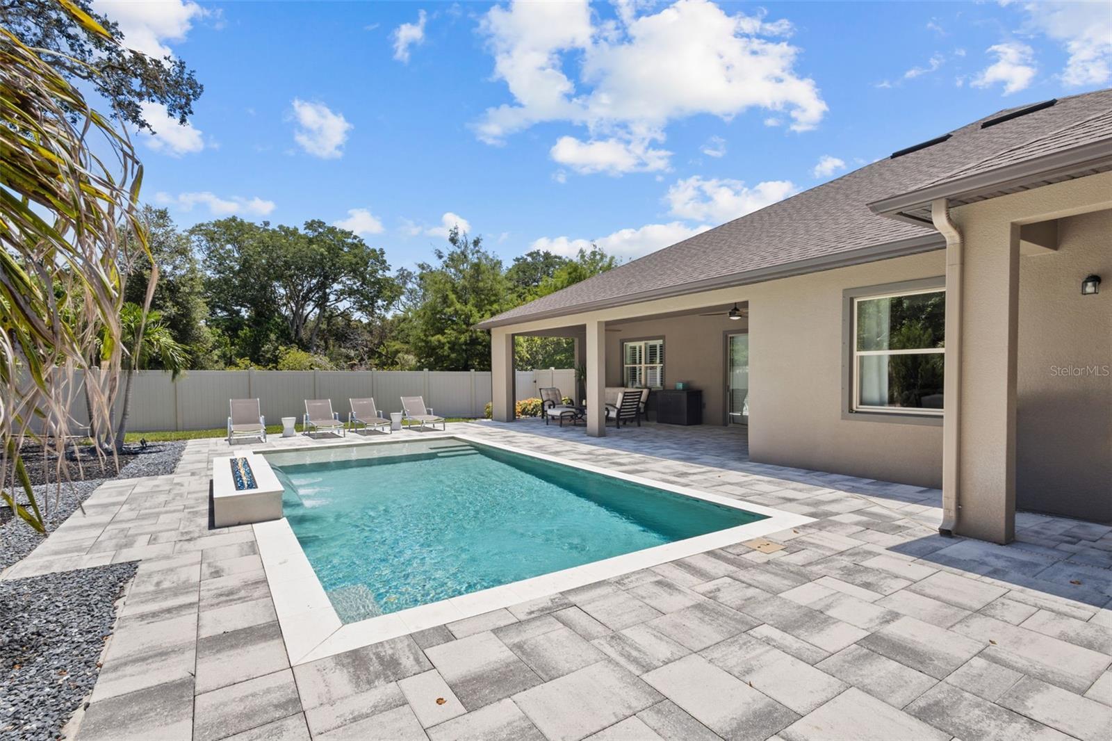 Under contract-accepting backup offers. Luxury living awaits in the highly sought-after gated community of The Enclave at Palm Harbor. This exceptional 4-bedroom + bonus room (possible 5th bedroom), 3-bathroom, 3-car garage home was built in 2019 and offers 3,300 square feet of modern elegance and comfort. Enjoy the peace of mind that comes with a newer construction home, including up-to-date building codes, energy-efficient systems, hurricane-rated features, and minimal maintenance concerns for years to come. Designed for both everyday living and entertaining, the open-concept layout features abundant natural light, high ceilings, and stylish finishes throughout. The gourmet chef’s kitchen is equipped with stainless steel appliances, quartz countertops, custom cabinetry, a large center island, and a walk-in pantry, all flowing seamlessly into the expansive dining and living areas. The primary suite is a true retreat, offering a spa-inspired ensuite bath with dual vanities, oversized shower, and generous his and her walk-in closets. Three additional bedrooms and a versatile bonus room provide flexible space for guests, a home office, or play room. Step outside to your private backyard oasis with no rear neighbors and an adjacent unbuildable lot. The custom resort-style pool with sun shelf, pavered patio, crisp waterfall and gorgeous fire feature was designed with a covered lanai and outdoor entertainment area, perfect for year-round relaxing. This unique residence also features ample storage, a spacious laundry room, and energy-efficient upgrades throughout. Located near top-rated schools including Palm Harbor University High, this home is just minutes from world-famous Gulf beaches such as Honeymoon Island and Clearwater Beach, charming downtown Palm Harbor, Innisbrook Golf Resort, and an easy commute to Dunedin, Tarpon Springs, and the Tampa International Airport. Experience refined Florida living with all the benefits of modern construction in one of Palm Harbor’s premier communities. Schedule your showing of this model perfect home today!*See link to property tour*