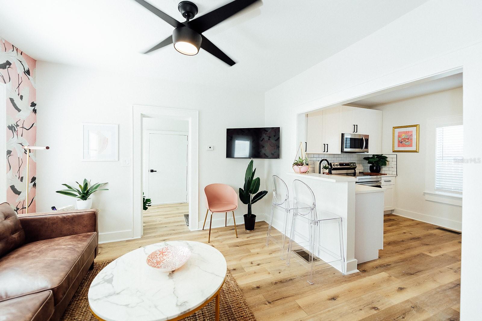 Available for midterm or long-term rental (30+ days) – no short-term rentals. No pets (service animals only). Step into the vibrant Key West vibes of Mallory Square in charming downtown St. Petersburg! This Conch Republic-themed 2BR/1BA downstairs unit is part of a boutique Key West-inspired complex, designed to feel like a private island retreat in the heart of the city. This fully furnished and fully stocked apartment features fun, unique Key West décor inspired by the Key West life style, from the pink bird wallpaper to the large scale pelican wall art and coastal accents. Perfect for extended stays, it includes a ?? dedicated workspace with abundant natural light, providing a peaceful and productive work-from-home setup. Rent includes all utilities and high-speed internet, with central AC. Enjoy professional laundry service provided at move-in and move-out, plus onsite shared laundry accessible via app (additional charges) during your stay. Additional cleanings available upon request for a fee. Location Highlights: Nestled in a walkable, colorful neighborhood just minutes from downtown St. Pete, you’re steps from local coffee shops, unique restaurants, and boutique shopping. Explore nearby Central Avenue, Vinoy Park, museums, and take a short drive to St. Pete Beach. Relax in the laid-back charm of Mallory Square’s tropical courtyard with lush landscaping and turf. Move-in Requirements: First month’s rent, cleaning fee, and security deposit. Availability: 7 units total – 1BR/1BA and 2BR/1BA layouts available. Contact agent for availability and pricing. $2950mo November - April. $2450mo May - October