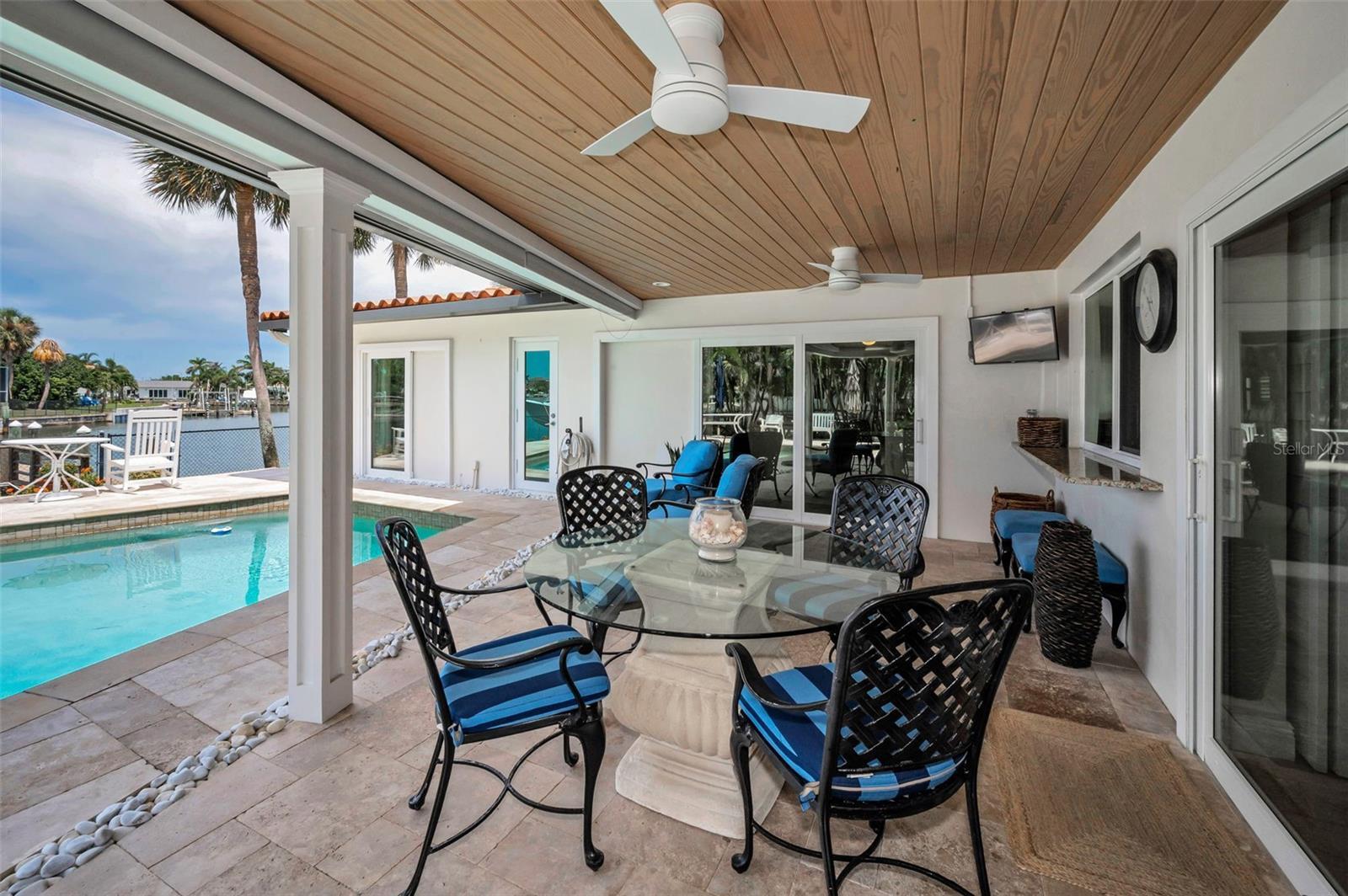 LOCATED IN ONE OF TAMPA BAY’S PREMIER BOATING COMMUNITIES, THIS LUXURIOUS 4 BEDROOM, 3 BATH WATERFRONT RESIDENCE IS BEAUTIFULLY FINISHED THROUGHOUT; AND WITH NO BRIDGES TO WORRY ABOUT, YOUR BOAT WILL BE OUT IN OPEN WATERS OF TAMPA BAY IN A MATTER OF SECONDS! Lushly landscaped with an exceptional brick paver circular driveway and a fine covered entry, discover a magnificently-updated home with elegant crema mar fil marble flooring complemented by driftwood-style porcelain floors in the bedrooms. The generous great room plan with living and dining areas transitions to a wonderful open concept kitchen with sumptuous custom cabinetry, inviting granite surfaces, Viking stainless steel appliances, a lovely multi-level island bar that overlooks the waterfront, and a kitchen pass through to the covered outdoor bar area. You’ll love the private owner’s suite with its views of the waterfront, dedicated access to the pool deck and spacious custom walk-in closet system. The dazzling owner’s bath boasts beautiful coastal-white cabinetry, superb granite surfaces, dual vanities, high-end fixtures, skylight, exquisite tilework, and a gorgeous glass rain-shower enclosure. Opening to the pool deck, the generous family room connects three splendidly-appointed bedrooms; two bedrooms are joined by a lavish Jack and Jill bath with impressive tilework, shiplap and quartz finishes. The 4th bedroom opens to the pool deck and is supported by a posh full guest bath that likewise opens to the pool deck (pool bath). You will appreciate the large indoor laundry facility with its dedicated office/work space and terrific built-in storage! Step out to the 330 sqft covered dining and lounging deck overlooking the pool and waterfront. Rich travertine pavers gracefully encase the swimming pool and provide ample space for lounging and sun bathing. Beyond the pool deck rests the composite boat dock with its new 10,000 lb boat lift and step-down area that is ideal for launching kayaks and paddleboards. This remarkable residence enjoys a long list of superior updates and upgrades. From its interior finishes to its impeccable landscaping, the meticulous attention to detail will leave you impressed. Come see why the sellers have called this their “happy place” from the very day they moved in. Dimensions/measurements are estimates, buyer to verify. An outstanding value in a great location near fine shopping, dining and excellent K-12 schools.