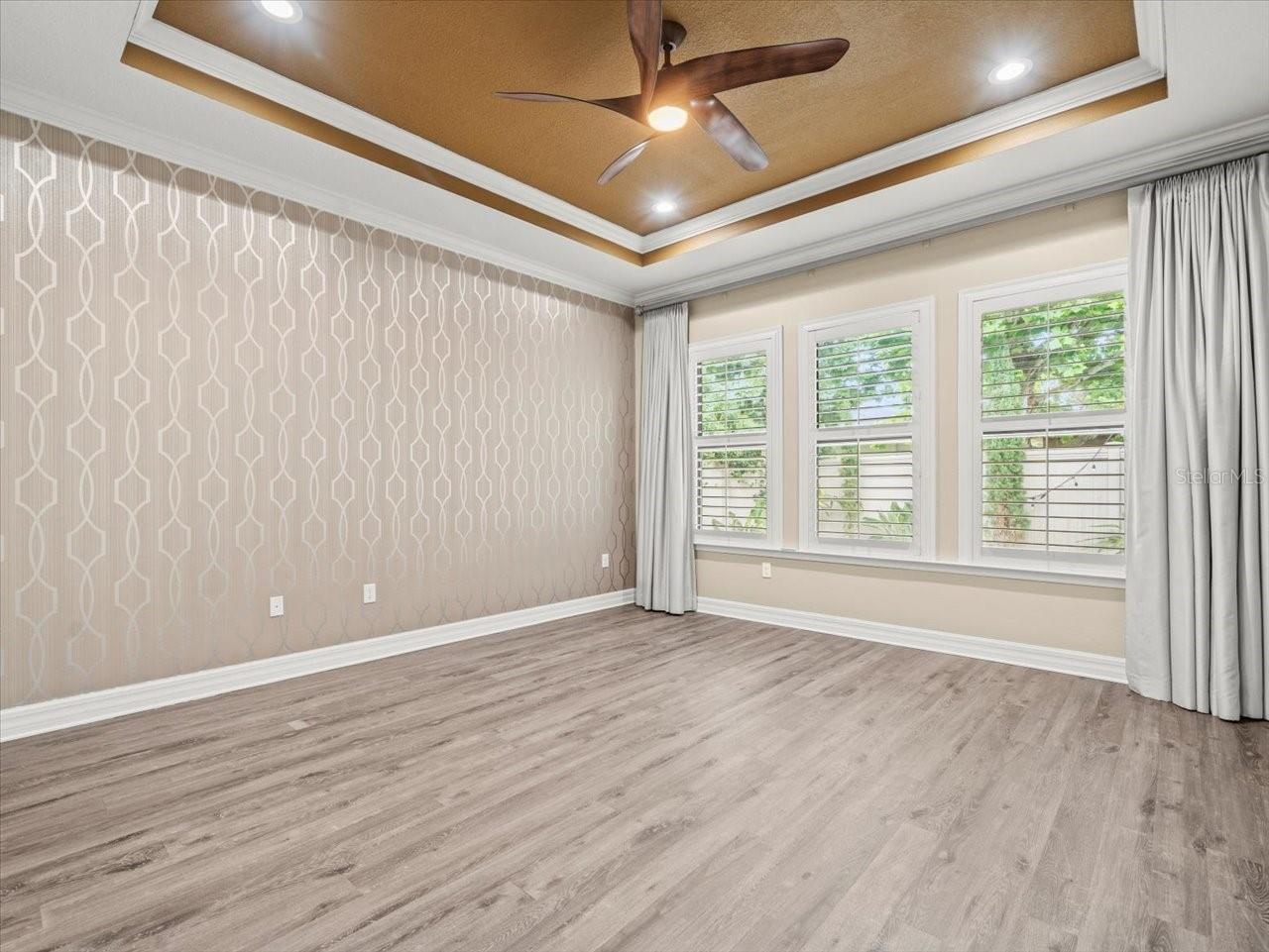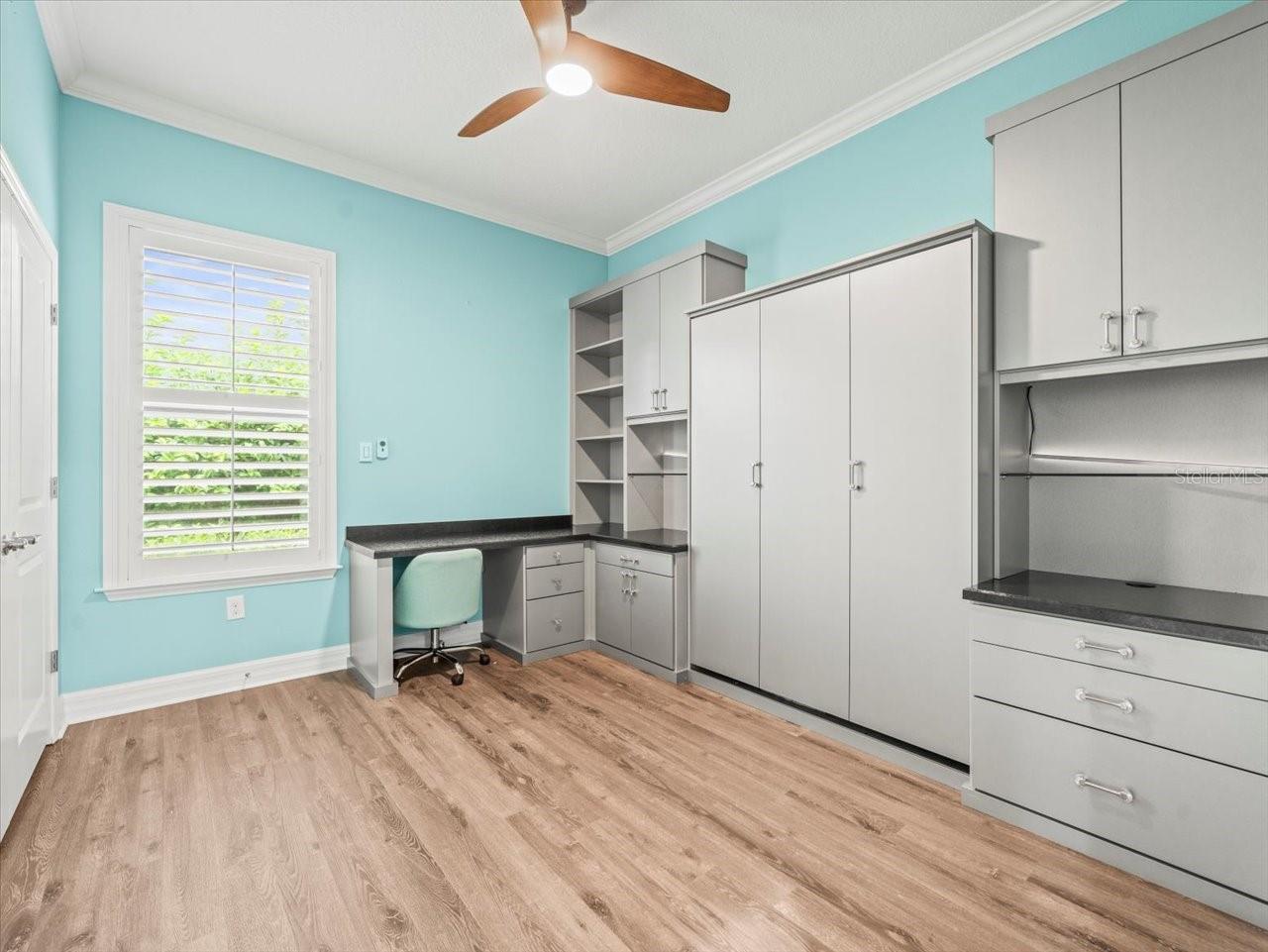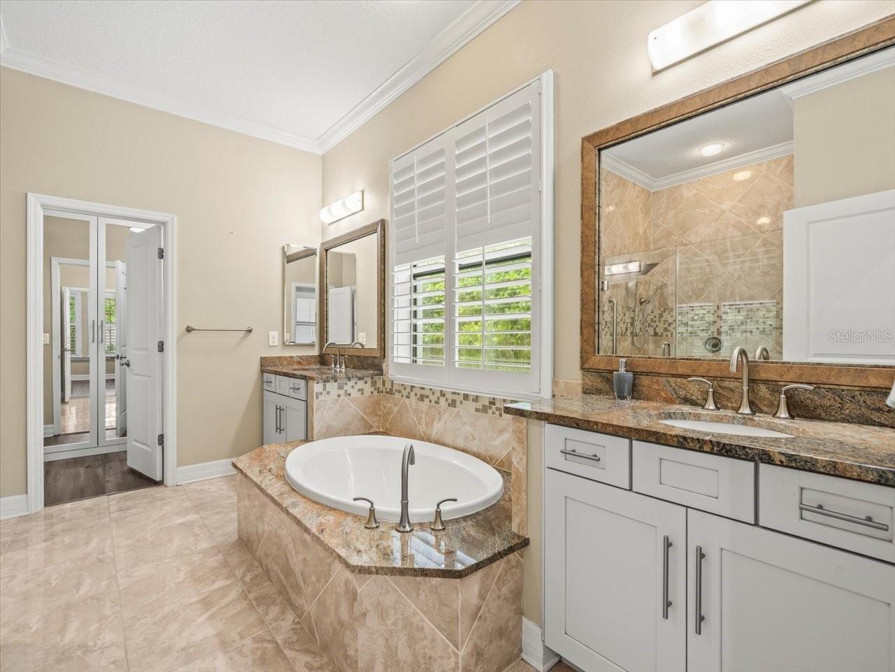 - Built-in Features, Ceiling Fans(s), Crown Molding, Dry Bar, Eat-in Kitchen, High Ceilings, Kitchen/Family Room Combo, Open Floorplan, Primary Bedroom Main Floor, Split Bedroom, Stone Counters, Walk-In Closet(s)