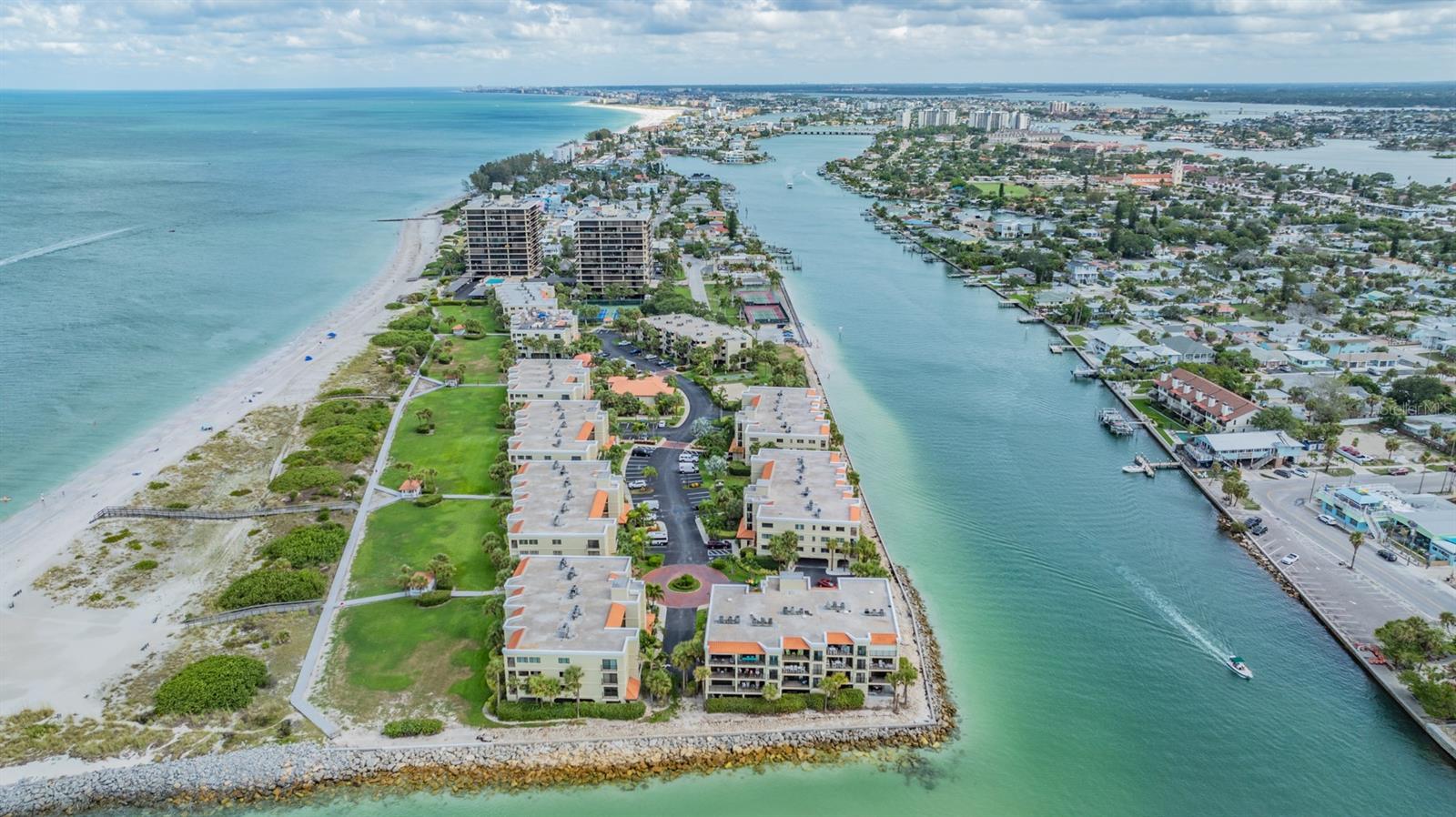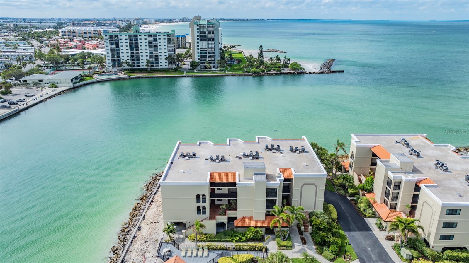 Under contract-accepting backup offers. *SELLER MOTIVATED* Welcome to paradise! Notably, this condo sustained no flooding or damage from Hurricane Helene or Milton! Island living on the southern edge of Sunset Beach in Treasure Island. This stunning waterfront condo offers luxurious amenities and breathtaking views of the Gulf of Mexico and Boca Ciega Bay. Situated on the tip of Treasure Island, this 2/2 features a spacious open floor plan with natural light, a gourmet kitchen with stainless steel appliances and granite countertops, and a private sunset balcony. Beautiful bathrooms with walk-in showers, oversized bedroom closets, solid wood interior doors, and completely furnished for a turnkey purchase. Keep your peace of mind during storms with the high-impact hurricane windows. Enjoy sweeping southwestern views of the Pinellas sandy beaches and Emerald water. Residents have access to resort-style amenities, including a swimming pool, hot tub, fitness center, clubhouse, and private dock. The primary bedroom boasts an en-suite bathroom with dual vanities, a walk-in shower, and a soaking tub. Additional features include a dedicated parking space, extra storage, and professional property management services for maintenance-free living. Enjoy proximity to pristine beaches, local dining, entertainment options, and downtown St. Petersburg's vibrant arts scene. Experience coastal living at its finest—perfect for a part-time residence or your primary home in one of Florida's best beachfront communities.