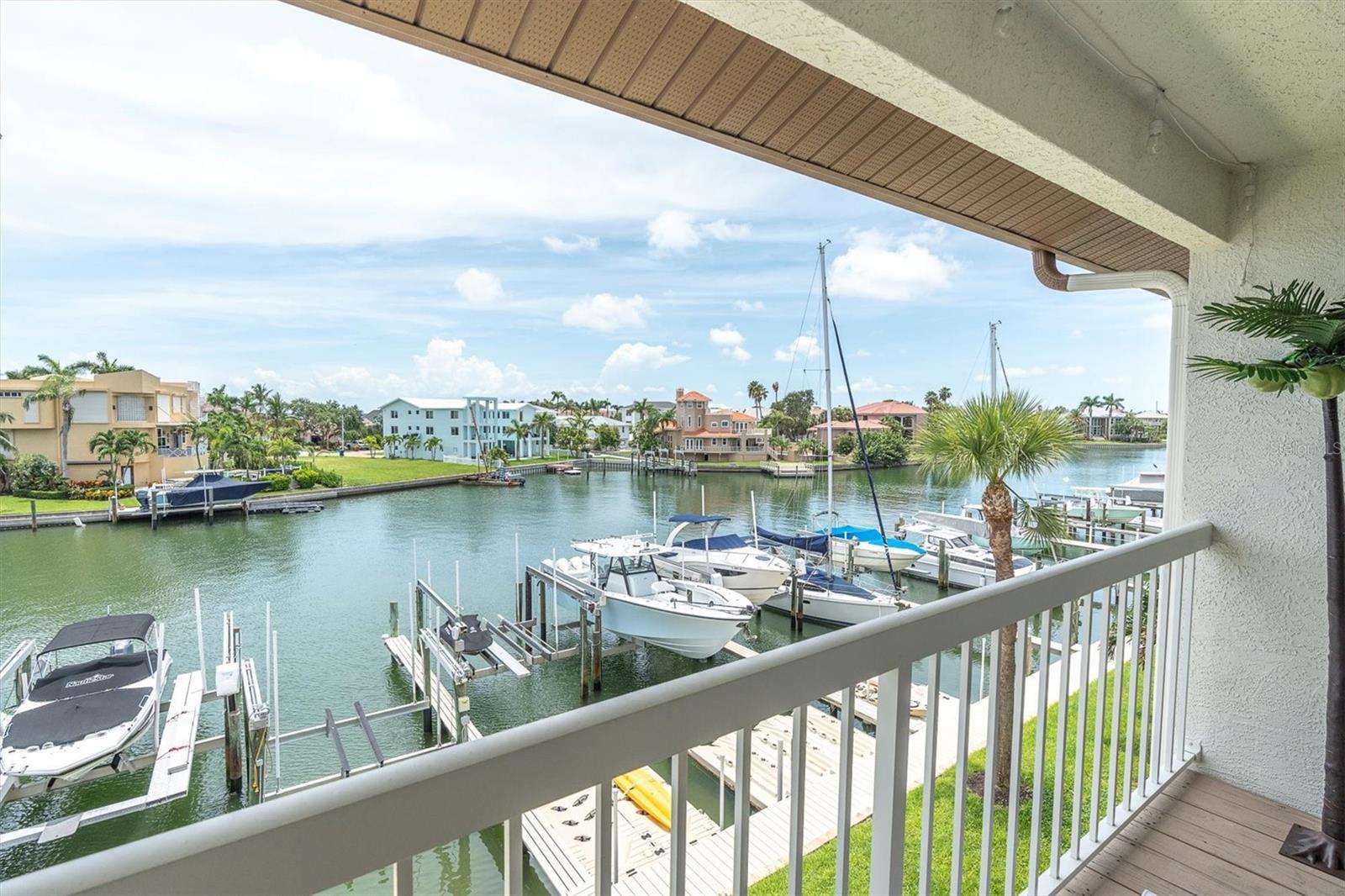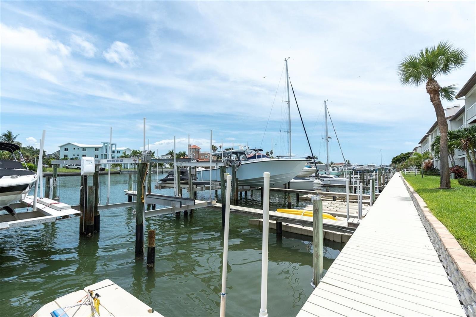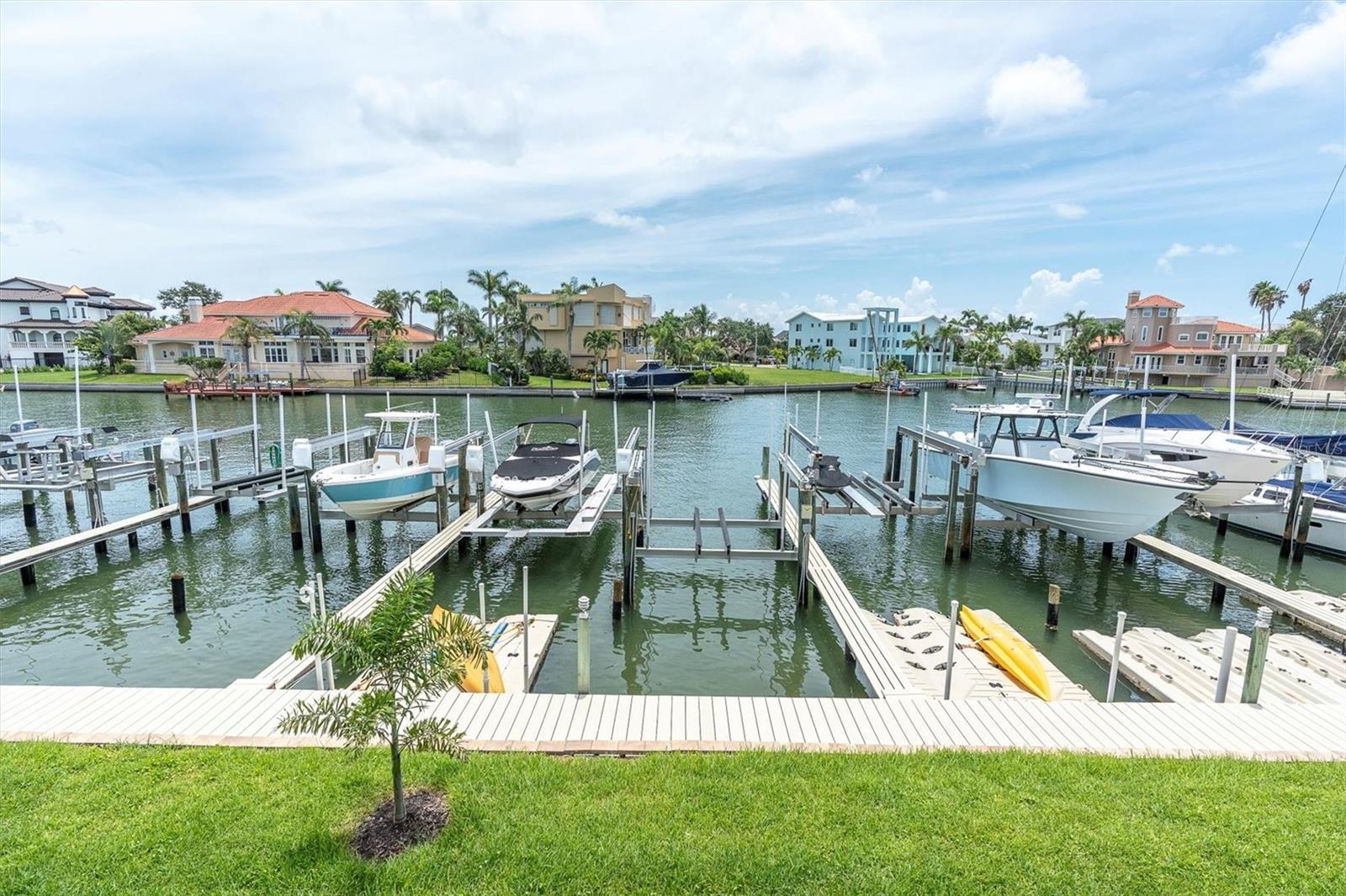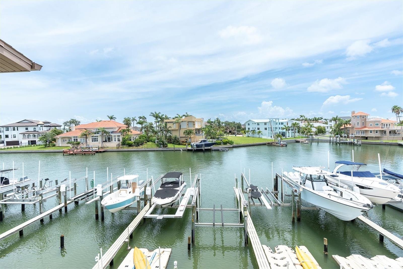 Calling all boaters! Don't miss this absolutely beautiful WATERFRONT townhome offering a DEEP WATER, 50 FT DEEDED BOAT SLIP located right outside of your back door! Beautifully updated and decorated in true coastal style, this 3 bedroom, 3 bath furnished townhome is A MUST SEE with features galore!! Upon entry, you are welcomed with a custom tropical etched glass front door leading to a marble floored entryway. The inviting kitchen is equipped with white shaker cabinets, gorgeous marble countertops, a marble geometric design backsplash, under-cabinet lighting, and stainless steel appliances. A counter-height bar with seating and additional storage cabinets completes the space. Brand new hurricane-impact windows, sliding doors, skylights & garage door provide piece of mind! Inside you'll find waterproof luxury vinyl plank flooring throughout, a modern wood and steel cable staircase railing, plantation shutters, crown molding and a stacked stone wood-burning fireplace with a custom wood mantle. All 3 levels provide serene waterfront views with an outdoor patio on the ground level and private balconies off both the living room and master bedroom (fully furnished and ready for your enjoyment!)! All 3 bedrooms boast en-suite bathrooms with the master bath featuring custom built in closets, quartz countertops, a double vanity, and a huge walk-in shower with double shower heads and a bench seat. The private dock provides a 13,000 lift, Wearguard decking and electric and water hookups. This protected deep water location leads to the bay in under 1000 feet and is minutes to open water with NO DRAWBRIDGES. Additional features include an air-conditioned bonus room (not included in square footage). Palms of Tierra residents enjoy a community heated pool and spa, fitness center, tennis courts, and a fishing pier. This pet-friendly community is located on the island of Tierra Verde- 2 minutes to running/ bike trails, 5 minutes to Fort DeSoto beaches, 5 minutes to the words famous St Pete Beach, 10 minutes to downtown St Petersburg, 40 mins to TPA airport, and just steps away from from a boating cruise. There's nothing like waterfront island living and your boat right outside calling your name. You don't want to miss this one! Copy and paste to see the video tour at https://lightlineproductions.hd.pics/307-Madeira-Cir/idx