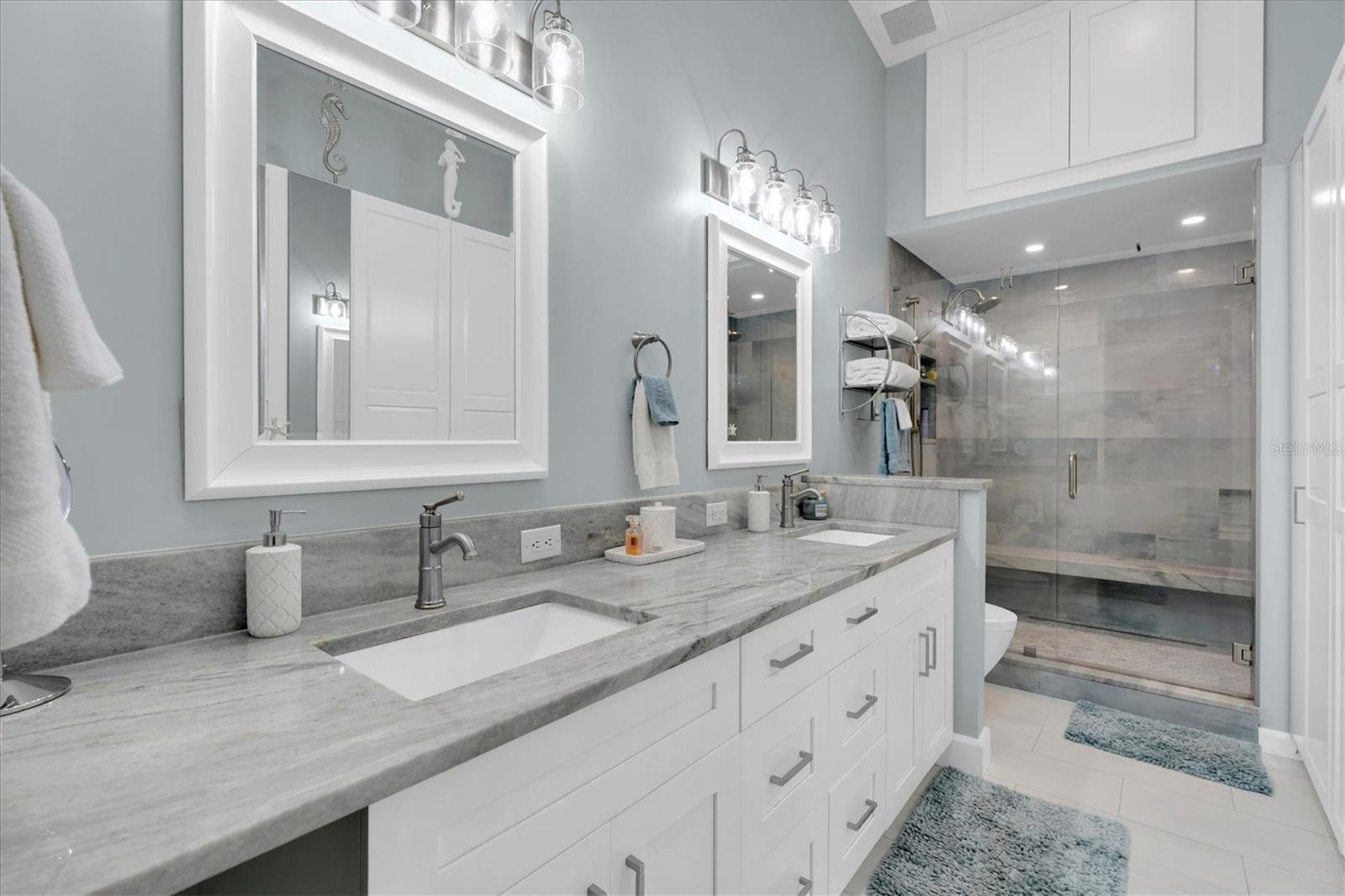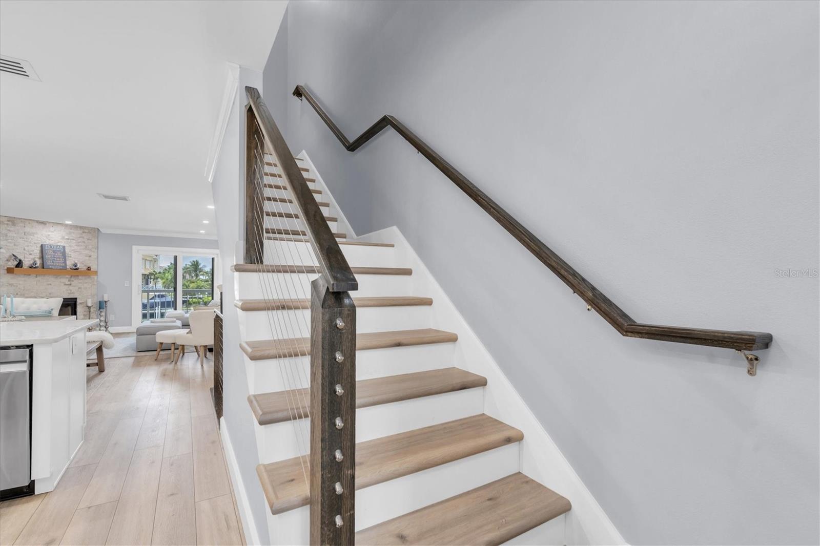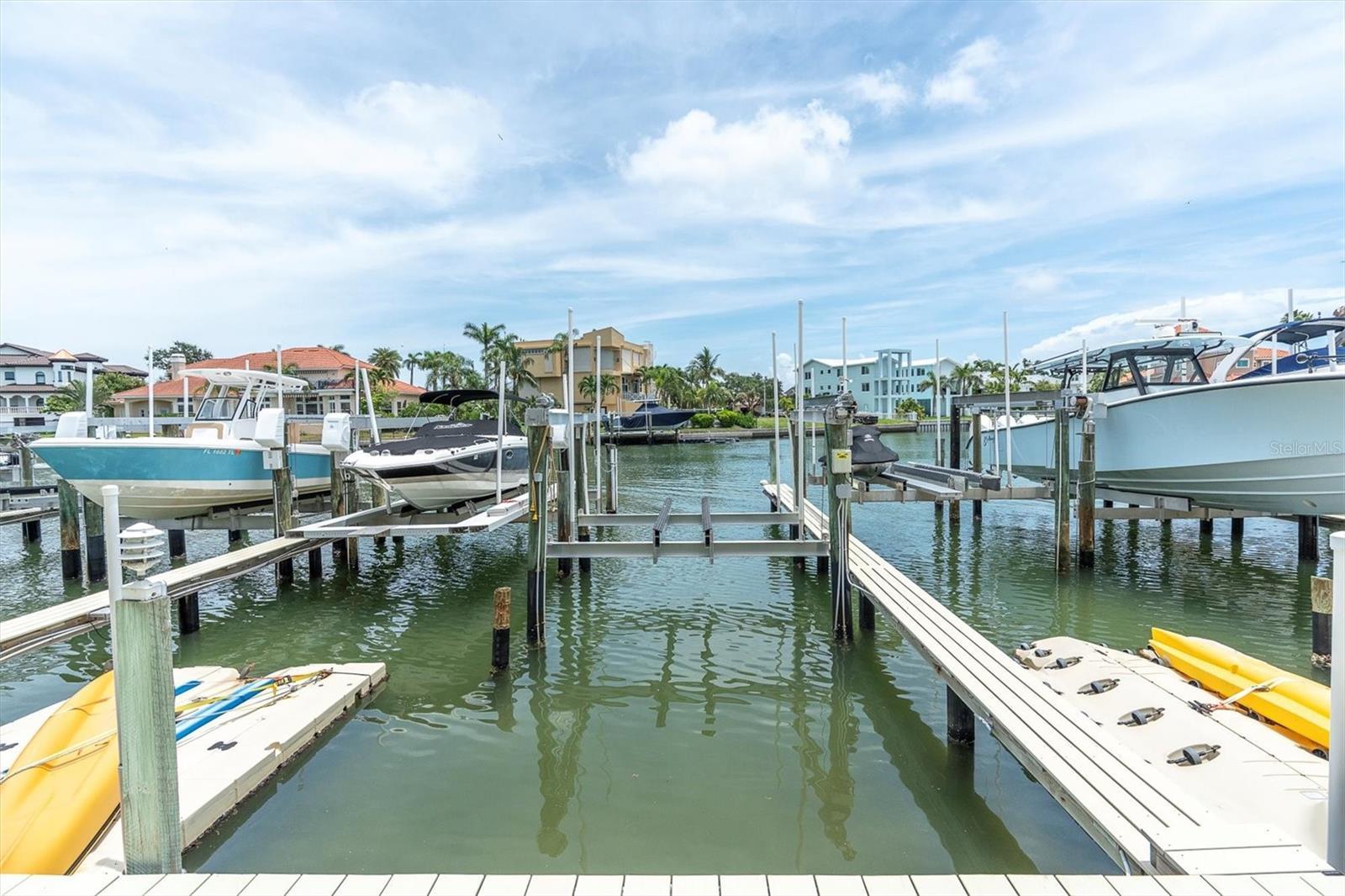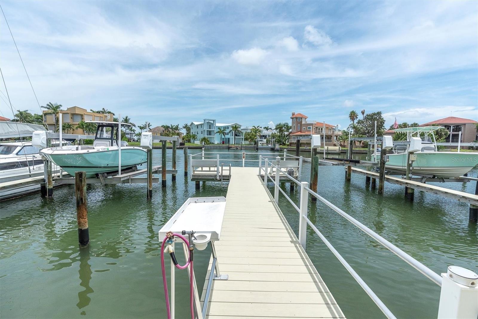Calling all boaters! Don't miss this absolutely beautiful WATERFRONT townhome offering a DEEP WATER, 50 FT DEEDED BOAT SLIP located right outside of your back door! Beautifully updated and decorated in true coastal style, this 3 bedroom, 3 bath furnished townhome is A MUST SEE with features galore!! Upon entry, you are welcomed with a custom tropical etched glass front door leading to a marble floored entryway. The inviting kitchen is equipped with white shaker cabinets, gorgeous marble countertops, a marble geometric design backsplash, under-cabinet lighting, and stainless steel appliances. A counter-height bar with seating and additional storage cabinets completes the space. Brand new hurricane-impact windows, sliding doors, skylights & garage door provide piece of mind! Inside you'll find waterproof luxury vinyl plank flooring throughout, a modern wood and steel cable staircase railing, plantation shutters, crown molding and a stacked stone wood-burning fireplace with a custom wood mantle. All 3 levels provide serene waterfront views with an outdoor patio on the ground level and private balconies off both the living room and master bedroom (fully furnished and ready for your enjoyment!)! All 3 bedrooms boast en-suite bathrooms with the master bath featuring custom built in closets, quartz countertops, a double vanity, and a huge walk-in shower with double shower heads and a bench seat. The private dock provides a 13,000 lift, Wearguard decking and electric and water hookups. This protected deep water location leads to the bay in under 1000 feet and is minutes to open water with NO DRAWBRIDGES. Additional features include an air-conditioned bonus room (not included in square footage). Palms of Tierra residents enjoy a community heated pool and spa, fitness center, tennis courts, and a fishing pier. This pet-friendly community is located on the island of Tierra Verde- 2 minutes to running/ bike trails, 5 minutes to Fort DeSoto beaches, 5 minutes to the words famous St Pete Beach, 10 minutes to downtown St Petersburg, 40 mins to TPA airport, and just steps away from from a boating cruise. There's nothing like waterfront island living and your boat right outside calling your name. You don't want to miss this one! Copy and paste to see the video tour at https://lightlineproductions.hd.pics/307-Madeira-Cir/idx