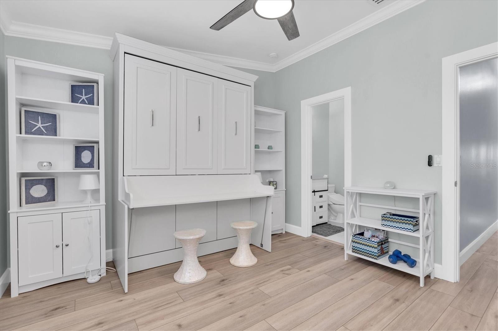- Built-in Features, Ceiling Fans(s), Crown Molding, Living Room/Dining Room Combo, PrimaryBedroom Upstairs, Solid Surface Counters, Split Bedroom, Thermostat, Vaulted Ceiling(s), Window Treatments