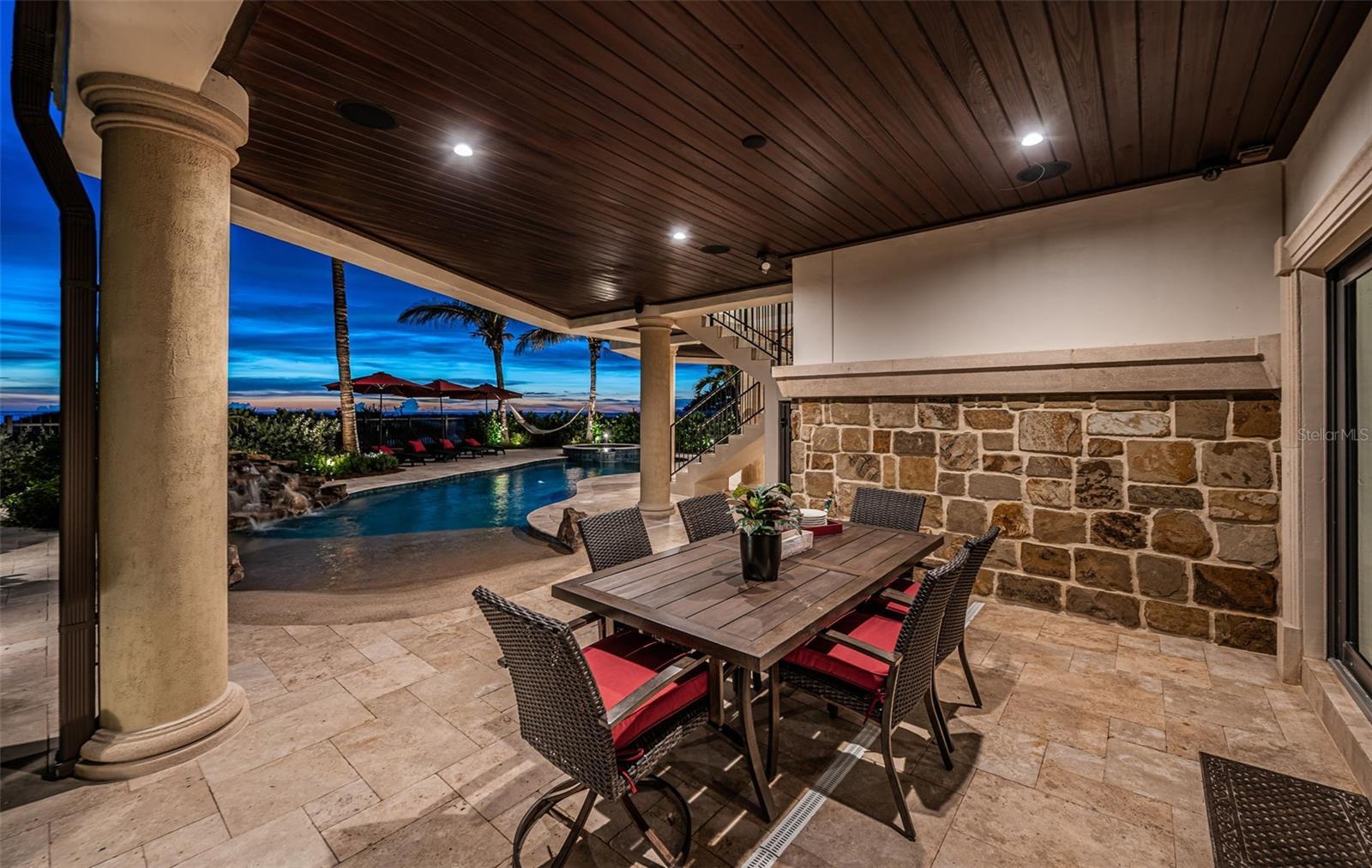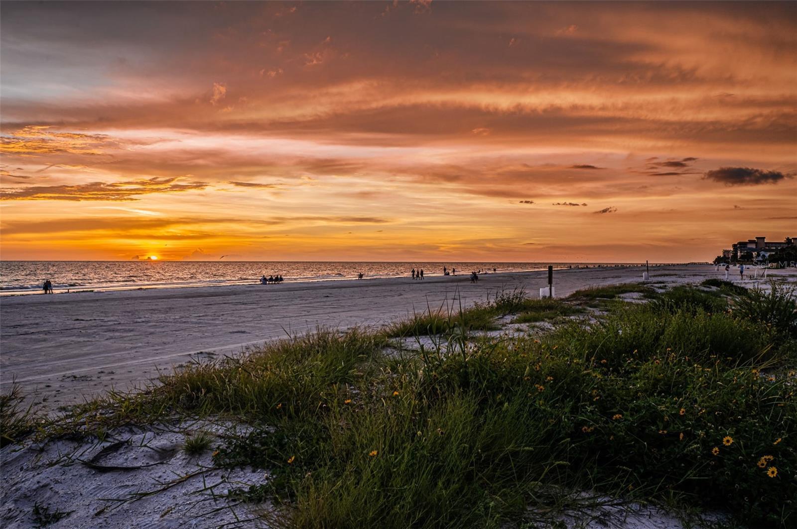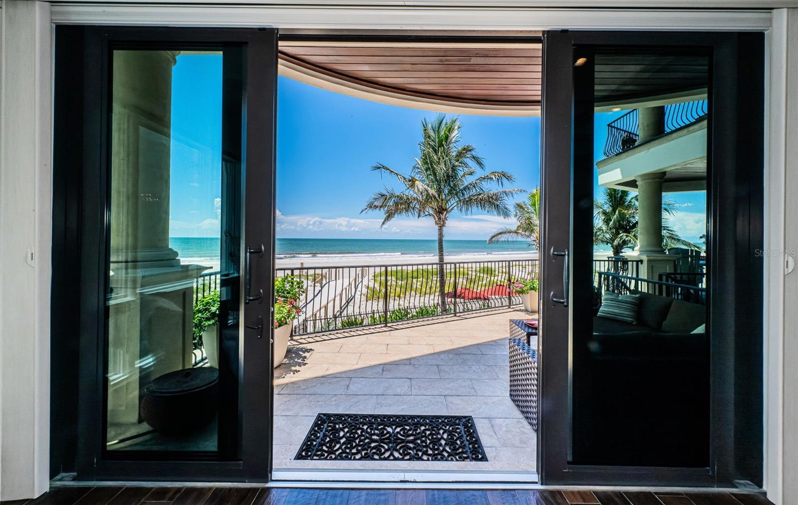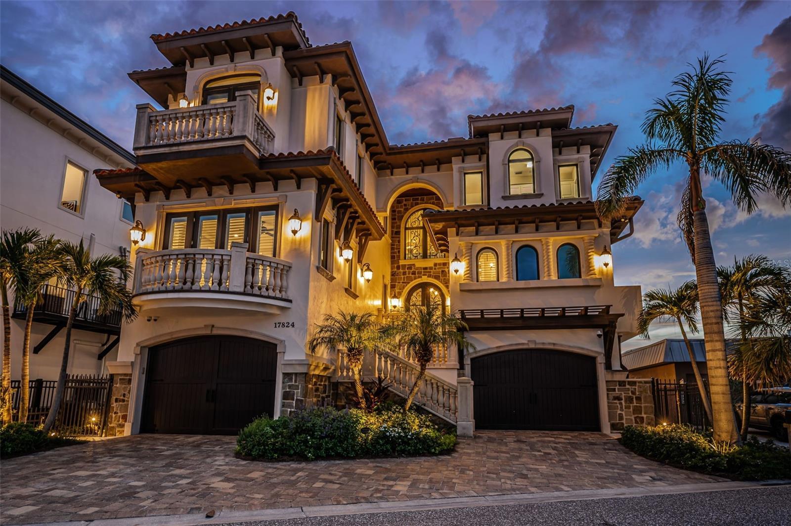 What happens when Tampa Bay’s premier architect, most accomplished structural engineer, and most respected builder come together? The result is an extraordinary beachfront residence that merges architectural brilliance, meticulous engineering, and beautiful state-of-the-art construction. Dan Dawson, Koly International, and Monogram Builders have created a modern 7719 sqft under one roof Gulf-front masterpiece where every detail has been carefully considered, tested, and refined. Balanced and cantilevered concrete engineering minimize columns and maximize sweeping Gulf views. Built on a foundation of 47 pilings, poured concrete structural columns, and poured concrete floors on every level, the home offers superior strength that is unmatched in the Tampa Bay area. Hurricane-rated windows and doors, and a roofing system engineered for the harshest coastal conditions help create a residence that is designed to last for generations. The impressive structural integrity is matched by luxurious, finely crafted finishes. Cast stone accents and custom exterior detailing set the tone, leading into a grand covered entry. Inside, you’ll find an open floor plan designed for Gulf front living, with porcelain floors that echo the look of distressed Brazilian hardwood, level 5 drywall, intricate woodwork, designer lighting, custom ceilings, and integrated whole-house audio, lighting, and electronics. The gourmet kitchen is a chef’s dream – boasting expansive granite counters, custom cabinetry, double islands, two bar seating areas, Wolf / Subzero appliances, dual Miele luxury dishwashers, gas cooking, and a hidden pantry with built-in work center. The adjoining dining space opens to a covered beachfront balcony, while the Gulf-front living room offers coffered ceilings, a gas fireplace, and wide balcony access. A unique 3-stop glass elevator with custom hammered copper finish adds artistry to function. The beachfront owner’s suite is an indulging retreat, with luxe ceilings, a private balcony and a custom mahogany closet system. The spa-like bath contains a hammered copper soaking tub, dual vanities, cosmetics station, and a glass-enclosed rain shower. The four additional bedroom suites include two with Gulf-front balconies and two bedrooms with their own private terrace overlooking the Intracoastal Waterway. Step out back and discover a true beachfront oasis: a zero-entry PebbleTec pool and spa with cascading stone waterfall, expansive Travertine paver deck, 800 sq ft of covered outdoor living space with a built-in gas cooking center and bar, a stone-encased gas fireplace, and separates area for dining and entertaining. With additional features including a 22KW Generac gas generator, dual Rinnai tankless water heaters, central vacuum system, and countless luxury details, this home delivers an uncommon luxury Gulf front living experience built with unparalleled precision, quality and elegance. Dimensions are estimates, buyer to verify.