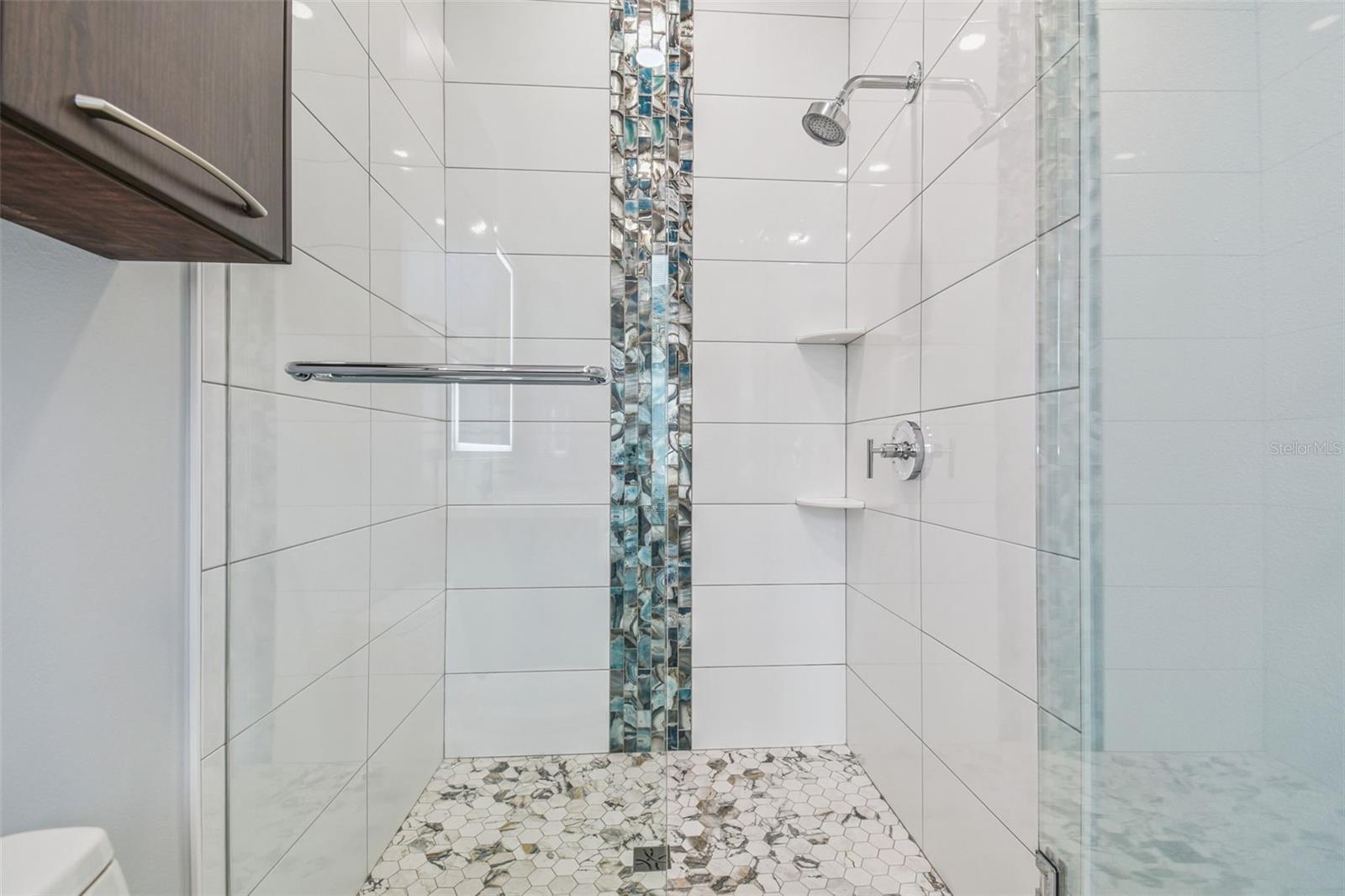 Luxury reimagined, a fully remodeled Beacon in Esplanade at Wiregrass. This 3 bedroom, 3 bath, 3 car side load garage, pool/spa home with an office and bonus room located on a wraparound conservation cul-de-sac lot is all you have been looking for in a home. The kitchen features custom cherry cabinets, stainless steel built-in appliances including separate 33" refrigerator and 33" freezer, 24" beverage refrigerator, 36" induction cooktop, two Café ovens and microwaves, as well as a two-drawer Fisher-Paykel dishwasher. The expansive primary suite features a fireplace, custom cherry cabinets bidet, dual walk-in closets with custom LifeSpan system, dual sinks, and reimagined shower. The huge, covered lanai has a soaring screen enclosure, the expanded travertine deck features an outdoor kitchen by Paradise Grills with a stainless-steel grill with searing and pizza options, a 7' island with Bluetooth speakers, and four poly counter-height stools. The inviting swimming pool has a spa, sun shelf, waterfalls, and lap area, along with both gas and electric heaters, all designed to let you enjoy the Florida lifestyle. Recent upgrades include but are not limited to two Carrier AC’s with UVGI, 8' interior doors with reeded glass, two tankless water heaters, Pella designer series windows with integrated blinds, Thermatru doors, sprinkler system, custom landscape curbs, 3/4" solid French white oak flooring throughout, with porcelain tile in bathrooms. GE Profile front-load washer and dryer with pedestals. Custom cherry wood storage cabinets line the laundry room and hallway entry from garage, featuring a folding area, sink, and desk area, ideal for crafting. Additionally, bedrooms 2 & 3 each have walk-in closets, a separate mini-split unit for individualized comfort and a whole house Generac generator. This home is mobility friendly inside and out, with generously wide walkways, and larger than average custom showers, two with zero entry. Esplanade of Wiregrass Ranch is a 55+ community that has a luxurious upscale club house with full-time lifestyle and fitness directors. The Venue includes a resort style pool, hot tub, cabanas, dog park, state-of-the-art 24-hour fitness center, billiard/card room, and spa room. For active outdoor entertainment there is a firepit, tennis, pickleball, bocci, and a large meeting/gathering area. Esplanade also includes worry free yard maintenance, reclaimed water and Spectrum TV and internet package included in fees. This home is located only minutes from shopping, I-75, hospitals, restaurants, recreation, and entertainment. Come see for yourself this exquisite residence, sit down, relax and call it home! Please see Matterport 3D tour and attached upgrade sheet.