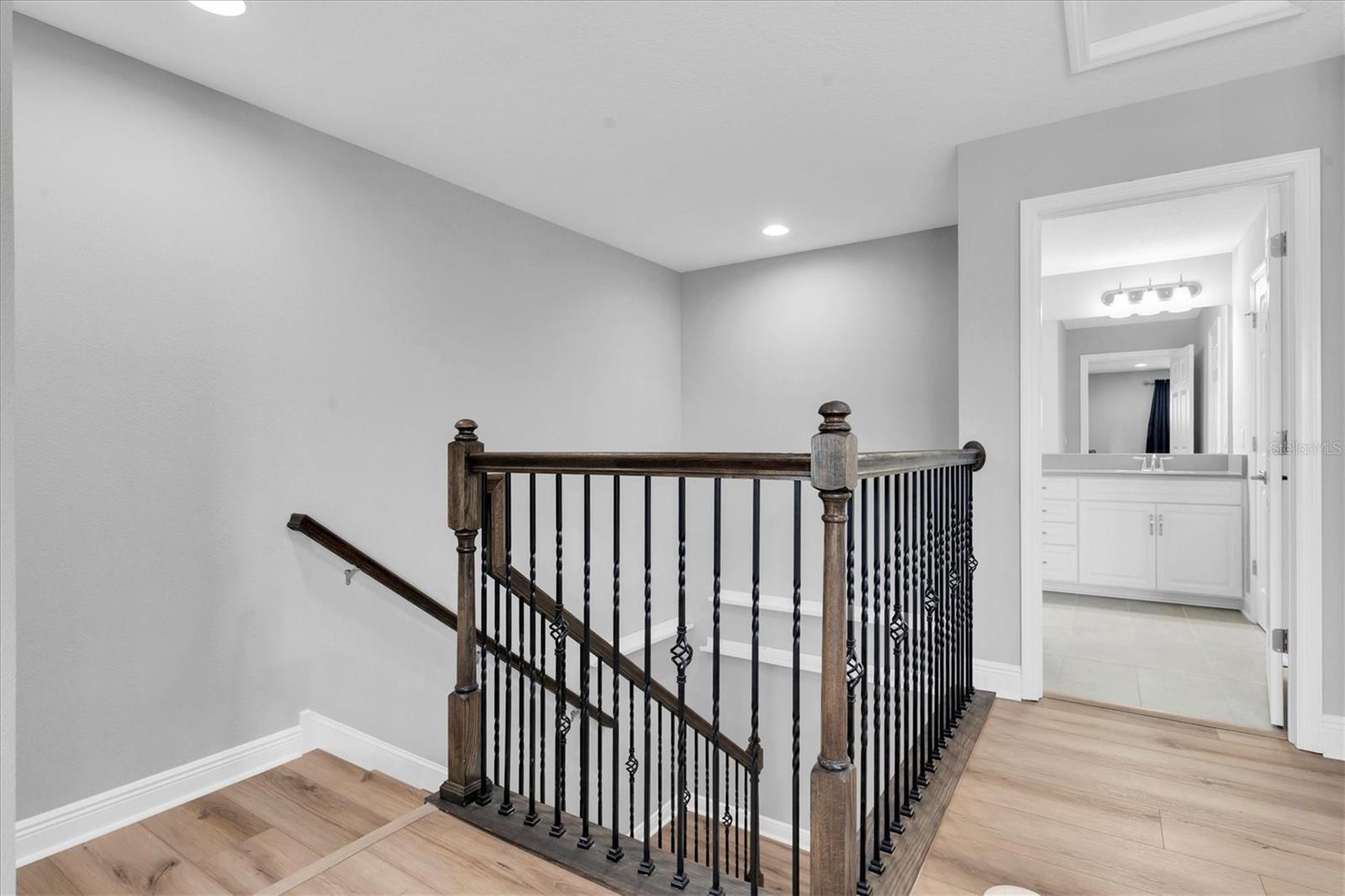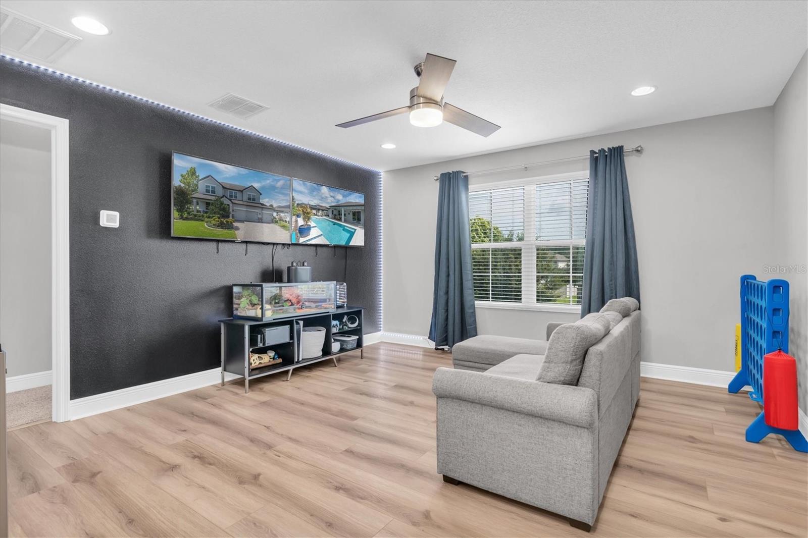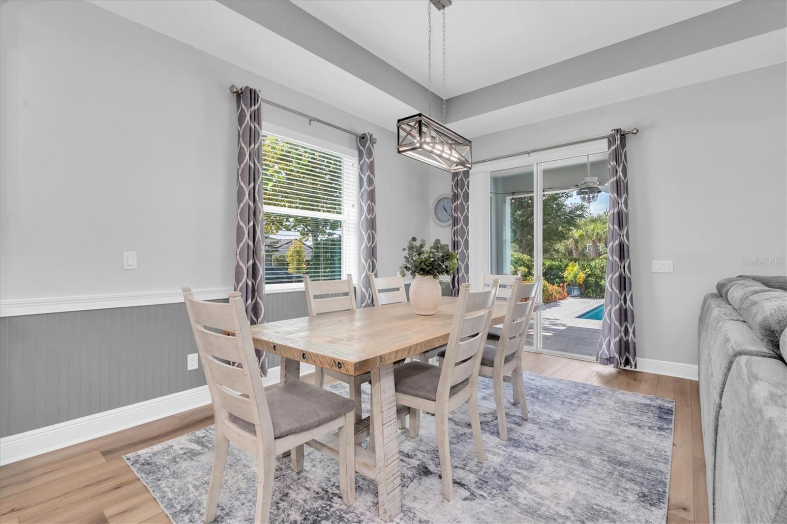 Under contract-accepting backup offers. INVITING POOL HOME IN DESIRABLE STARKEY RANCH! Well Appointed MI Homes Santa Monica on a corner lot offers 4/3.5/3 + bonus rm & office with large, covered lanai overlooking 26 x 13 Pebble Tec pool with sun shelf and fully fenced turf yard with beautiful gazebo located in Albritton in the highly sought-after community of Starkey Ranch. Custom designed in 2019 w/ over 60K in luxurious upgrades w/ builder & 135K after market, this intelligently positioned & popular open floor plan offers functional living space for entertaining & everyday life. Attractive exterior has exceptional curb appeal thanks to the stone detail, Hardie Siding, paver driveway, manicured landscaping with designer curbing & a welcoming front porch. Entering the foyer through the frosted glass inlay front door, the soaring ceiling, custom vertical shiplap wall & modern light fixtures capture your attention. Newly added neutral waterproof & scratchproof Luxury vinyl floor is located throughout most of the home creating a consistent flow. As you enter the foyer, to the left is the office with ceiling fan, double window and a half bath close by. The open floor plan unfolds offering a cozy gathering place to entertain and relax. The spacious living room is anchored by a ceiling fan, tray ceiling, shiplap wall & a beautiful view of the pool. The luxurious Gourmet kitchen will impress w/ White 42’ Raised Panel wood cabinets & Drawers accented w/ crown molding are complimented by brushed nickel hardware & subway backsplash blend beautifully w/ upgraded Dove Gray Quartz counters. Custom walk-in pantry helps stay organized. Spacious island with shiplap accent seats 3 bar stools comfortably illuminated by 2 Pendant Lights. Island also provides additional storage, a deep basin sink & Moen Gooseneck faucet. Upgraded Stainless appliances include refrigerator, 5 burner gas cooktop, Built in oven & microwave & Dishwasher. A dining room, adjacent to the kitchen, highlighted by chandelier and accent chair rail, offers pretty views of the pool. Located on the 1st floor, the spacious owners retreat offers ample room for furniture w/ ceiling fan and views of the pool. Luxurious selections in ensuite impress w/ his & hers quartz counters, cabinets & drawers, frameless oversized walk-in shower with listello, pebble floor & bench. Ascend the wrought iron staircase with white risers & LVP floors to the second story where a large bonus rm will be useful space to gather for a football game or movie night. Well-sized Br 2 offers ensuite bath. Br 3 and 4 are located close by with an adjacent full bath w/ tub shower combo & dual sinks. The extended covered lanai with breezy ceiling fans will be a nice area to BBQ or enjoy morning coffee. The sparkling 26x13 pool with sunshelf surrounded by shellac pavers will provide hours of entertainment and enjoyment. This fully fenced yard is made even more private with a natural barrier and turf for easy care. An outdoor gazebo with electricity adds to the enjoyment of this exceptional outdoor space. *Baskeball Hoop* Laundry Room w/ Cabinets & Shiplap* Starkey Ranch offers an unparalleled lifestyle w/ its Magnet K-8 school, 3 pools, playgrounds & 20 miles of trails. Easy access to Restaurants, Publix, beaches & Tampa Airport. Make this exquisite home yours.