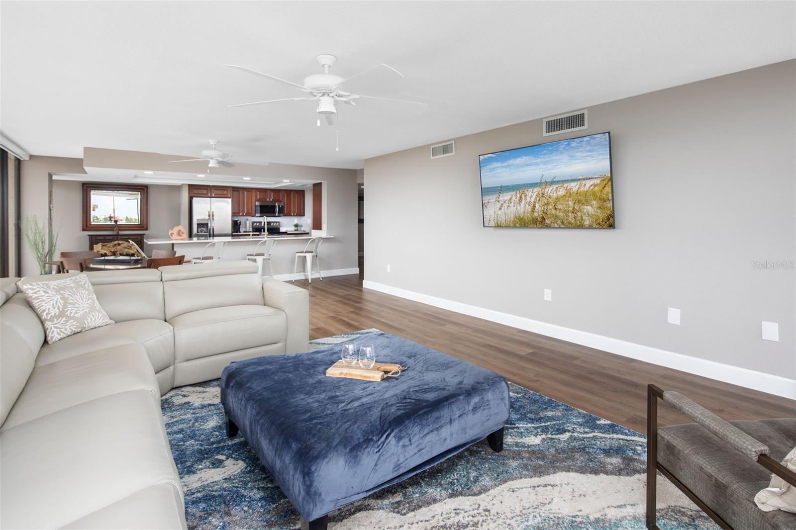 ANNUAL FURNISHED RENTAL 6-12 MONTHS- RENTAL RATE IS DISCOUNTED DUE TO CONSTRUCTION, Mansions is known for spectacular views from their generous balcony! BEAUTIFUL LONG TERM RENTAL ON THE BEACH!! This luxury 2 bedroom, CORNER UNIT is tastefully furnished and fully equipped for your leisure. Complete renovation in 2023 superbly done. Brand new features throughout including new luxury vinyl panel flooring, new stainless steel kitchen appliances, new baths, and a tasteful neutral color scheme for modern charm. Split floor plan with both bedrooms having private bathrooms and amazing views of the gulf! The main living area is large and wide open; perfect for entertaining. The wonderful complex has a heated pool, clubhouse, tennis courts, work out room, 1 under building parking, security and the BEACH! Located at the end of Sunset Beach in Treasure Island, there is no through traffic and a semi-private beach. A convenient drive to Florida's major attractions! Disney, Busch Gardens, Sea World, etc. Good restaurants are in abundance within short drive. Lots of diverse local shopping as well as great nearby shops and malls! For the beach lover- The beautiful gulf with its warm blue clean waters is at your back door. The beach provides the perfect playground for beach volleyball, walking, jogging and looking for shells. SCHEDULE YOUR SHOWING TODAY!