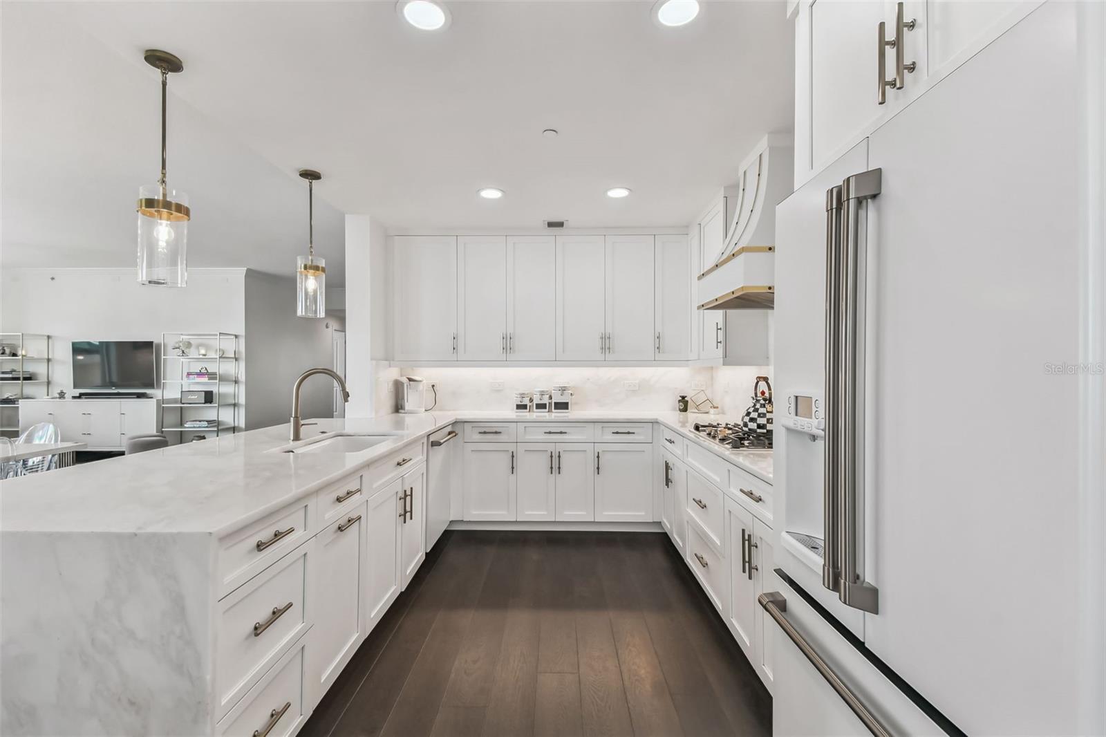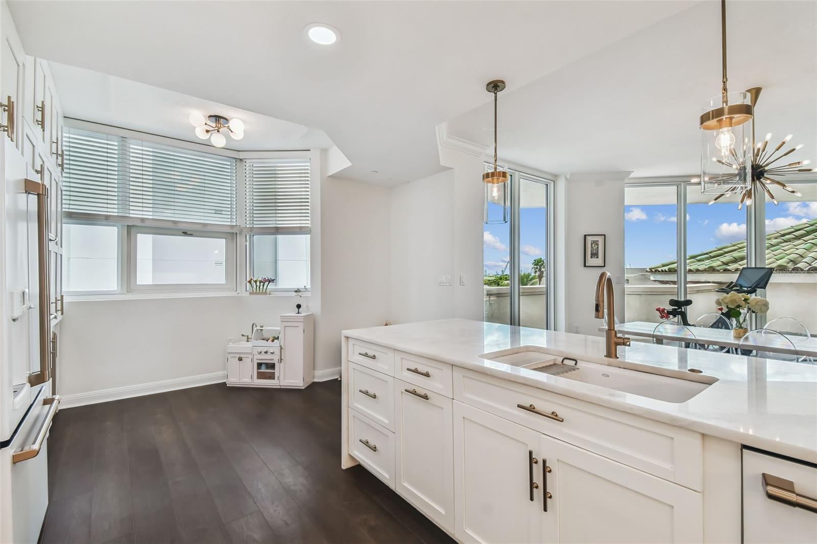 Set on the 5th floor of The Plaza on Harbour Island, this 3-bedroom, 3-bath residence offers the perfect blend of elevated city living and a connected, walkable lifestyle. From its rare expansive wraparound terrace, enjoy a unique perspective—high enough for sweeping views, yet close enough to feel part of the vibrant Harbour Island community. Inside, natural light pours through floor-to-ceiling windows, highlighting the open layout, modern finishes, and seamless indoor-outdoor flow. The kitchen, fully renovated in 2021, is both stylish and functional with custom white shaker soft-close cabinetry, marble waterfall countertops, and a matching backsplash. GE Café appliances include a 5-burner gas range with hood, microwave/convection oven with WiFi connect, second full-size oven with Wifi connect, dishwasher, wine fridge, and pot filler. A bar-style eat-in counter adds an inviting, casual touch. The primary suite offers a serene retreat with a large bedroom, a walk-in closet, and a spa-like bath featuring a dual-sink stone vanity, walk-in shower, and garden tub. The second bedroom enjoys its own floor-to-ceiling windows, custom lighting, and walk-in closet, with a hall bath nearby offering an extended stone vanity and walk-in shower. The third bedroom includes a private ensuite with a shower/tub combo and stone vanity. A dedicated laundry room with a stackable Smart washer/dryer with Wifi features and utility closet adds convenience. Additional details— one of the few units with gas, solid core doors, tray ceilings, crown molding, recessed lighting, blinds throughout, and built-in fire sprinklers—underscore the home’s quality and comfort. The oversized wraparound terrace, framed by a solid parapet for privacy and a water faucet for easy upkeep, offers endless possibilities for use. Whether you're envisioning a lush garden retreat or a playful dog run, this versatile space is ready to bring your ideas to life. Additional updates for owner convenience include new wide plank flooring, AC 2022 and water heater 2014. Located in The Plaza Harbour Island—one of Tampa’s most prestigious high-rises—residents enjoy resort-style amenities including a heated infinity-edge pool with cabanas, state-of-the-art fitness center, and a beautifully appointed club lounge. The building offers a full-time concierge, 24-hour doorman, valet parking, and private elevator access for select units. All in a peaceful Harbour Island setting, just steps from Downtown Tampa’s best dining, entertainment, and the Riverwalk.