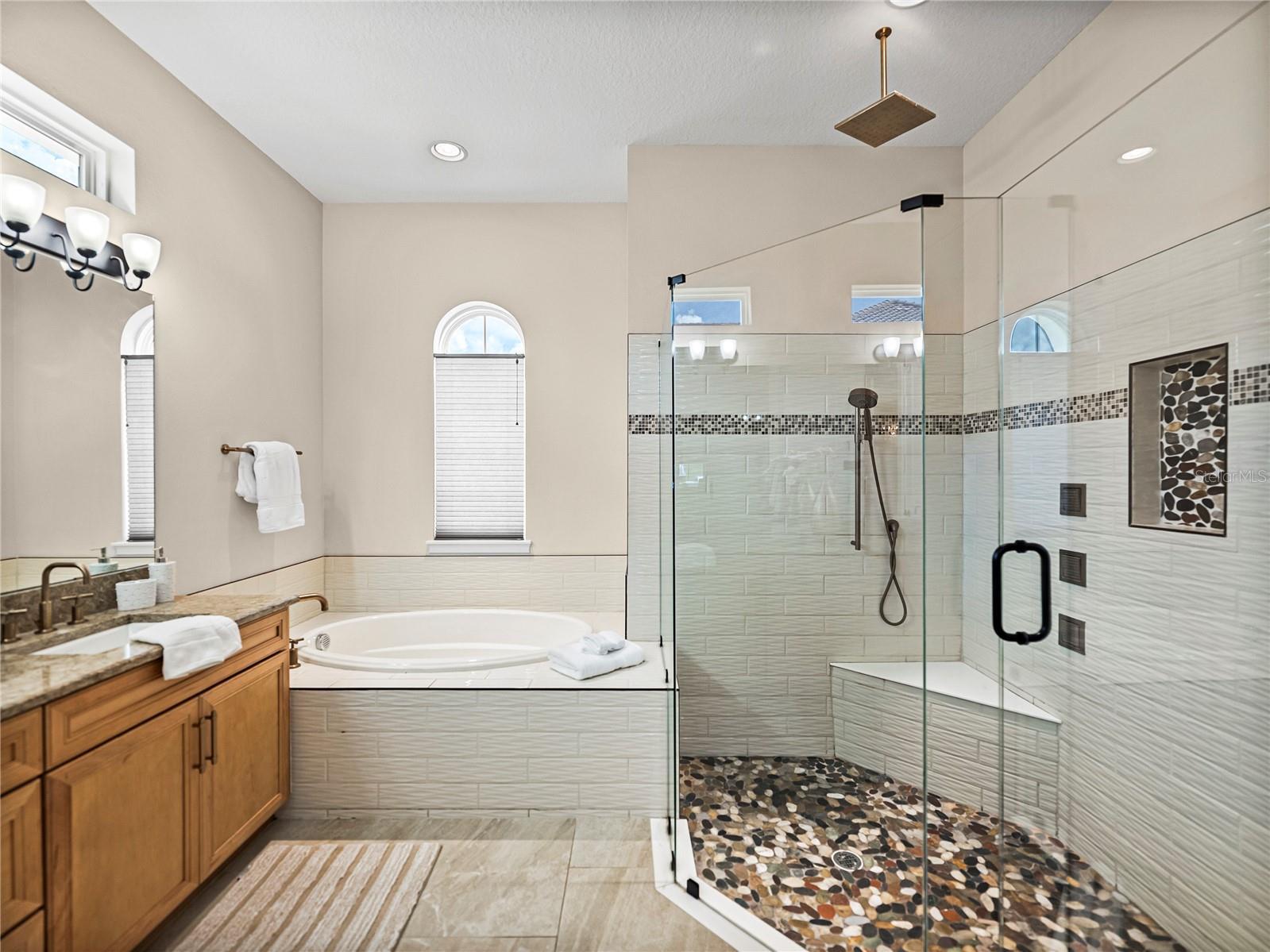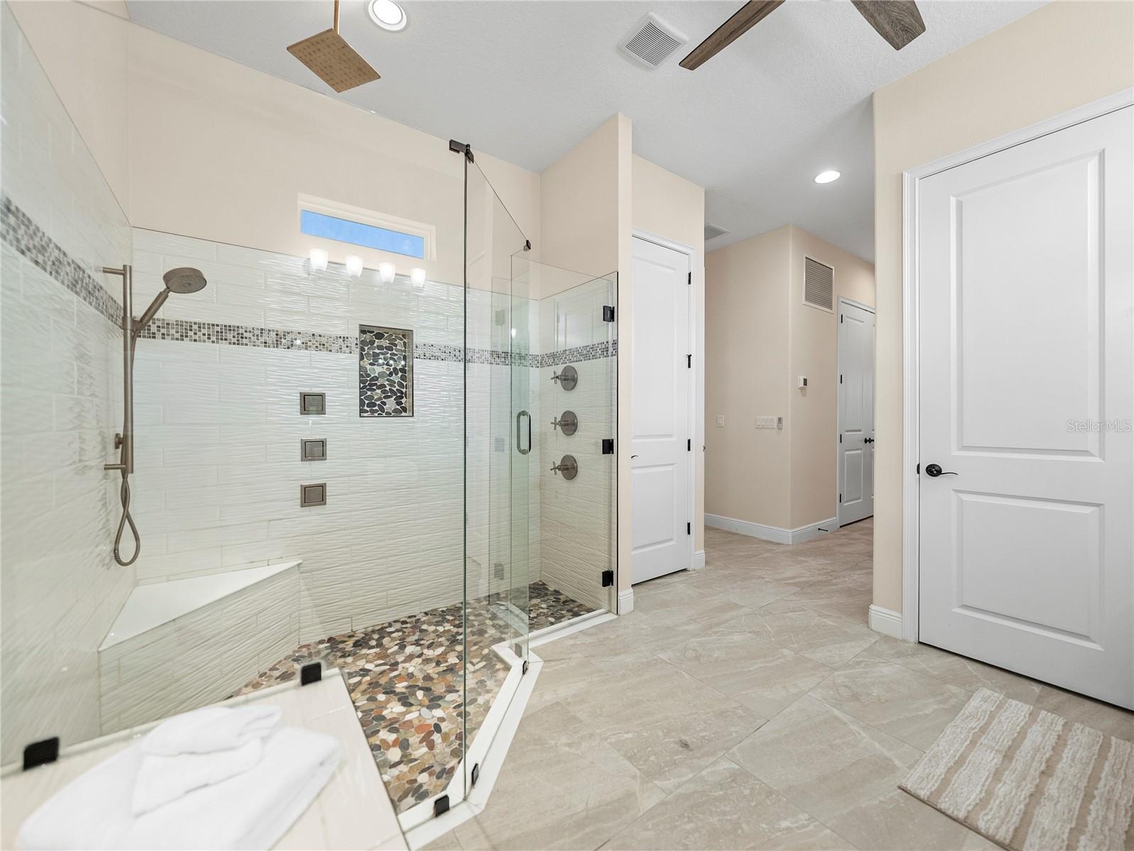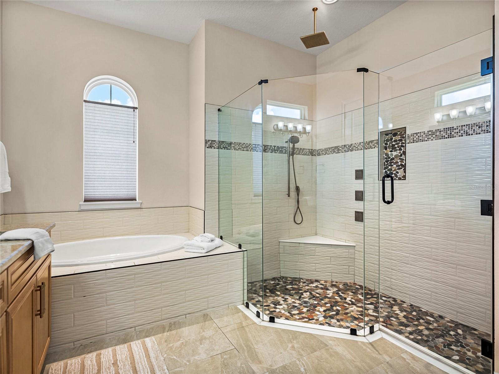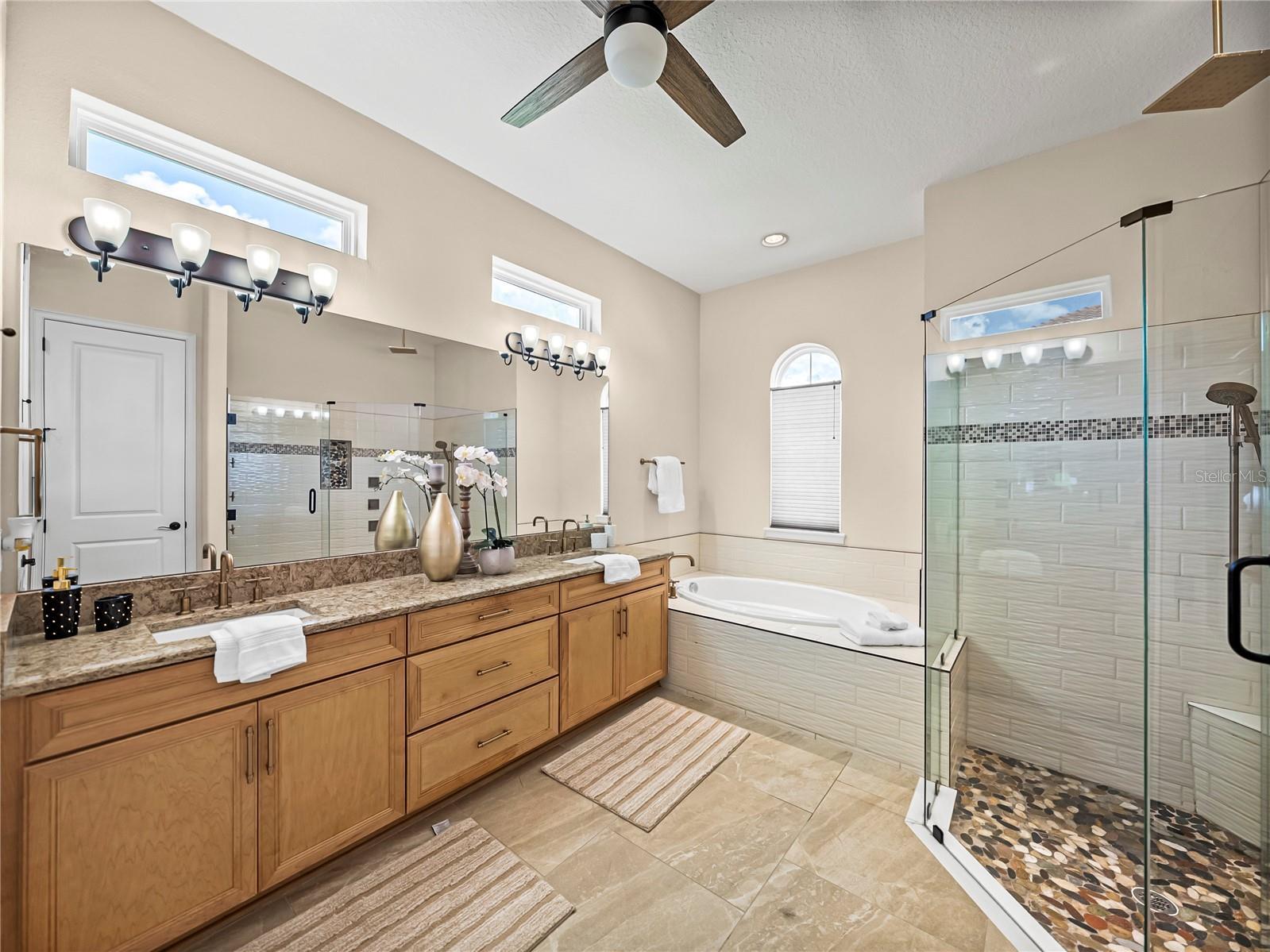 Discover this breathtaking, custom-designed 2022-built residence, offering 3,440 sq. ft. of luxurious living on nearly 0.67acres. This home is one of the kind in entire community.Designed for elegance, comfort, and seamless indoor-outdoor entertaining, the home features crystal chandeliers in the foyer, formal dining room, and kitchen, 8-ft doors throughout, ceramic tile floors, and soaring ceilings. Pavered driveway leads to a grand double-door entry and 13-ft covered foyer with concrete roof tiles.This home is filled with natural light, creating an open and airy atmosphere throughout. Large windows invite abundant sunlight, making every room warm and welcoming. The formal room and family rooms feature 12-ft ceilings, creating an extraordinary sense of space. The gourmet kitchen offers high-end finishes, upgraded granite countertops, ample storage, an instant hot water and drinking water filtration system, full-size appliances, a small freezer, and a 250-gallon underground propane tank for gas cooking. The primary suite provides privacy and luxury with two walk-in closets and a spa-like en-suite bath featuring a rain shower and jets. Guest bedrooms include a Jack & Jill bath, while a versatile third bedroom/game room offers additional entertainment space. A private Office is counted as 5th bedroom is filled with sunlight with 8-ft French doors. The home includes a well-appointed laundry room, pantry, half bath for guests, and additional water softener system. Step outside to a resort-style backyard, An oasis for family fun, gatherings, or peaceful afternoons with heated/ saltwater pool controlled by jades system with 2 variables speed pump , 8-jet hot spa, bubblers, LED color-changing lights, three fountains controlled via mobile app, sun shelf, swim-out bench, umbrella sleeves, and dedicated vacuum line. The covered lanai, finished in travertine, features motorized shades, a Soleic designed outdoor kitchen with gas burner, grill, side wash basin, and custom granite countertops, plus provision for a fire pit and seating.Landscaping includes seasonal fruit trees, manicured grounds, and extensive LED outdoor lighting. Additional features include 9 security cameras hard wire connect that has Wi-Fi capability, Guardian security system, fully paid solar system has consumption offset size 15.795kw DC.Level 2 EV charger & extra shelving in the garage, HOA-provided 1GB fiber optic internet service, and well water full sprinkler system with rust-prevention tank. Lake Jovita offers two award-winning 18-hole golf courses and top-tier practice facilities. Located just 20 minutes from North Tampa and about an hour from Orlando, this home delivers the ultimate Florida lifestyle. Wake up to manicured fairway views and entertain on the lanai at sunset this extraordinary home is ready to welcome you. SELLER IS OPEN TO ALL FAIR, SERIOUS & COMPETITIVE offer .Schedule your private tour today.