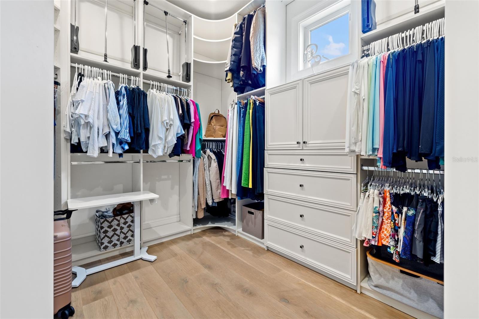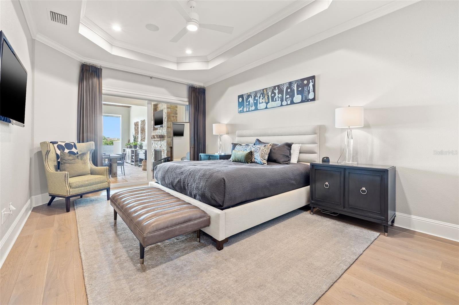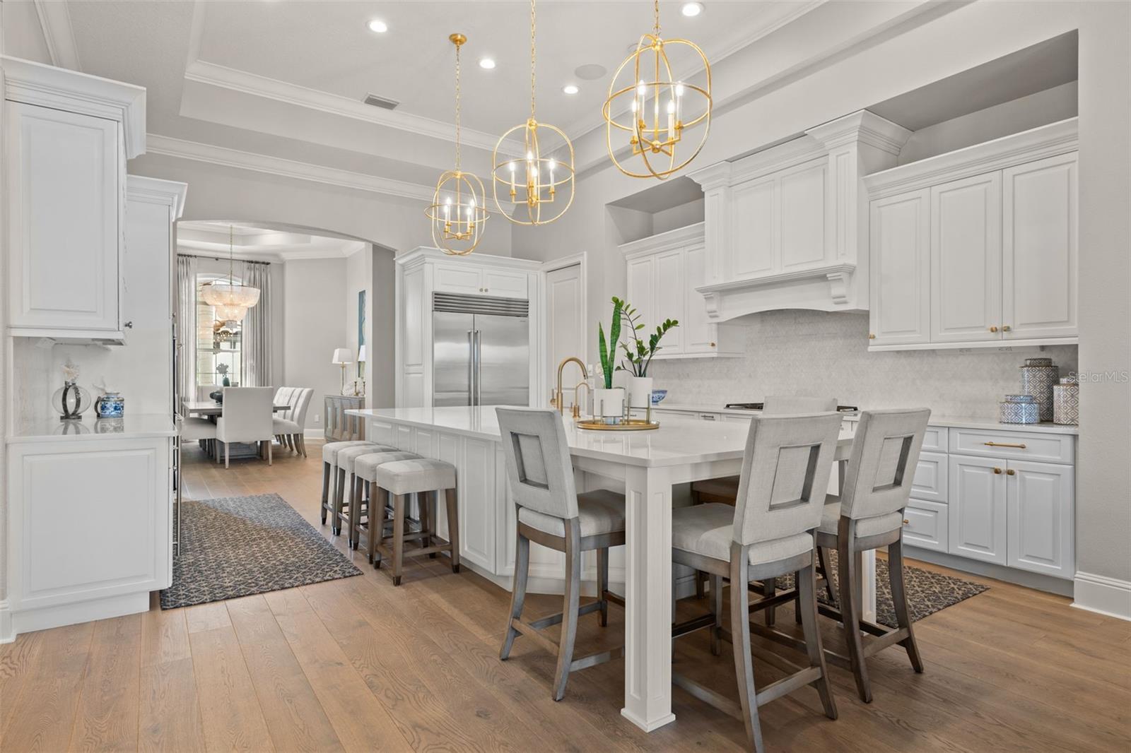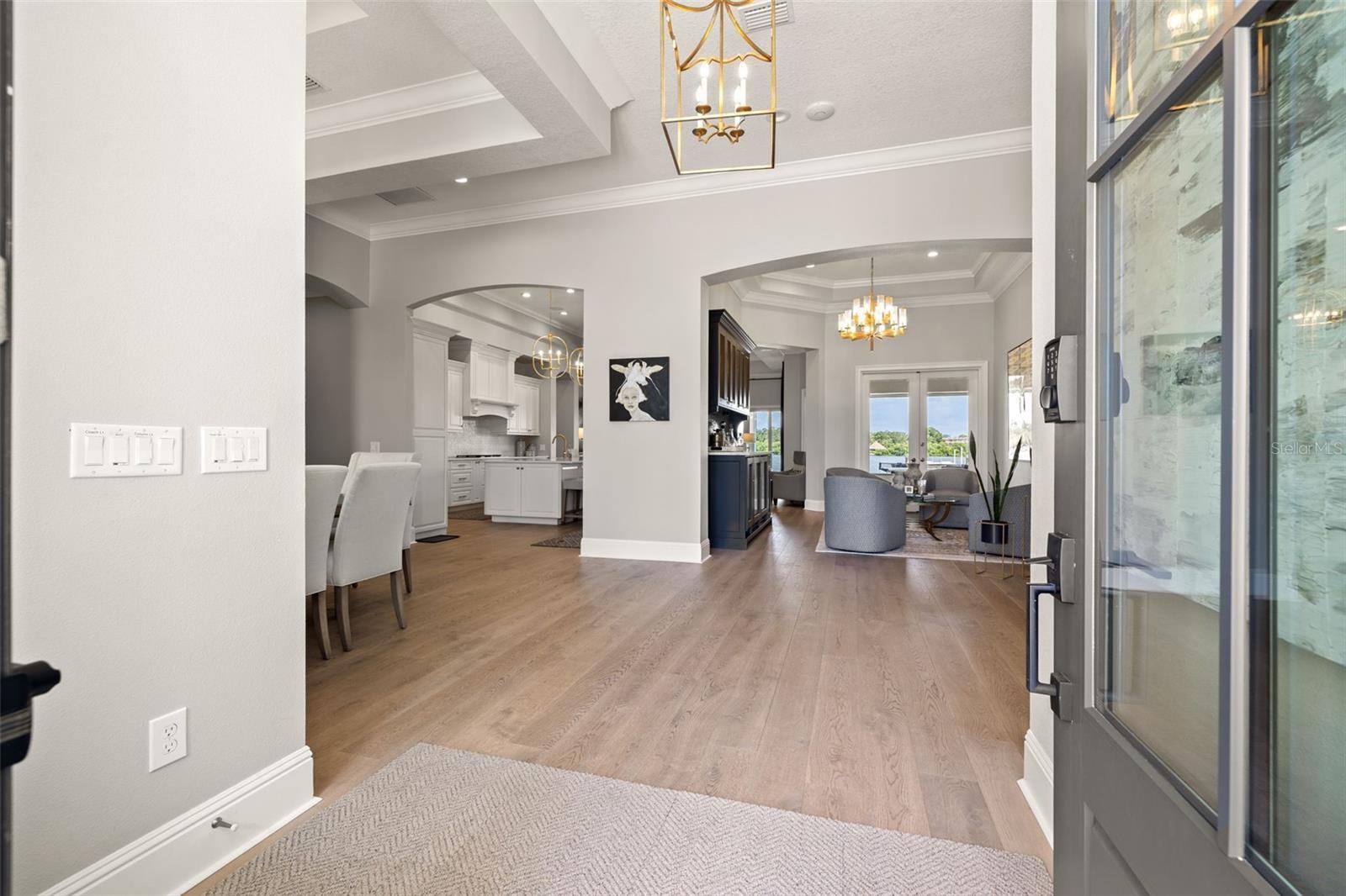 - Built-in Features, Ceiling Fans(s), Crown Molding, Dry Bar, Eat-in Kitchen, High Ceilings, Kitchen/Family Room Combo, Open Floorplan, Primary Bedroom Main Floor, Smart Home, Solid Surface Counters, Solid Wood Cabinets, Split Bedroom, Stone Counters, Thermostat, Tray Ceiling(s), Vaulted Ceiling(s), Walk-In Closet(s), Wet Bar, Window Treatments