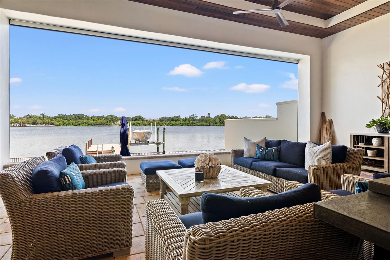 Under contract-accepting backup offers. PRICE REDUCED! Luxury Waterfront Retreat on Coffee Pot Bayou | Snell Isle Experience refined Florida waterfront living in this custom-built 2016 residence, ideally situated on the tranquil waters of Coffee Pot Bayou in the highly coveted Snell Isle community. Constructed with solid block and stucco, a slab foundation, and a classic barrel tile roof, this home seamlessly blends timeless architecture with modern sophistication.Offering 4,560 square feet with 5 bedrooms and 6 bathrooms, the interior features soaring 10+ foot ceilings, hurricane-impact windows and doors, and a whole-home smart system integrating lighting, sound, and video. Nearly every room is designed to capture serene waterfront views, filling the home with natural light. A standout feature is the main-floor primary suite, providing the ease of single-level living with peaceful bayou views, and refined finishes. Perfect for entertaining, the chef’s kitchen is equipped with premium Wolf appliances, a new Sub-Zero refrigerator, Miele dishwasher, custom Upstairs, a spacious bonus room offers exceptional flexibility as a media lounge, entertainment space, or additional bedroom, complete with cabinetry, a water purification system, and an expansive island with seating and built-in bar. Wine enthusiasts will appreciate three wine refrigerators and the classic parlor bar area. a walk-in closet—perfect for guests, teens, or a private retreat. A waterfront guest suite with a private bath on the main level further enhances the home’s thoughtful layout. Outdoor living is designed for year-round enjoyment with a heated saltwater pool (2021), expansive covered patio with motorized screens, outdoor gas grill, and fireplace. The updated seawall meets current standards. Boat lift with floating dock for launching kayakes and paddle-boards.. Additional features include a whole-home generator, 3-zone HVAC, dual instant-hot gas water heaters, recent exterior paint (2022), and tenting completed in 2025. This exceptional waterfront property delivers luxury, comfort, and an unmatched Snell Isle lifestyle.