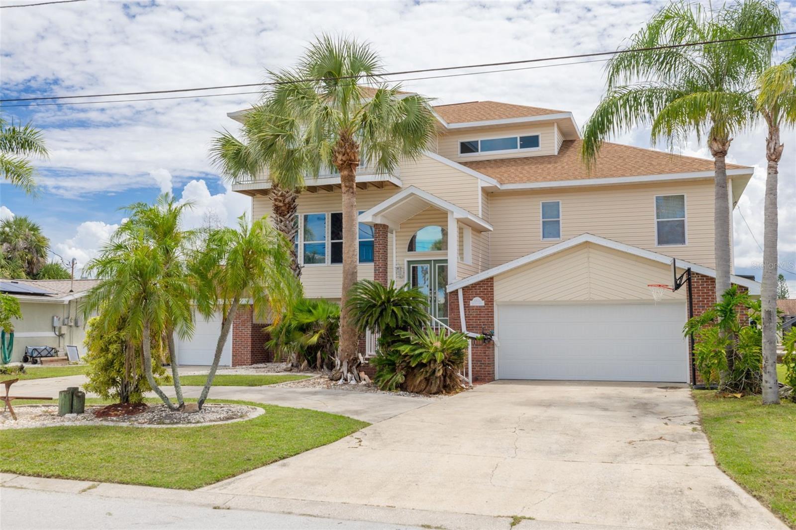 5% INTREST OWNER FINANCING AVAILABLE! Discover the ultimate Florida lifestyle in this stunning 3-story waterfront home, perfectly designed for comfort, versatility, and entertaining. Situated on over a ¼-acre lot in a highly sought-after golf cart community just minutes from restaurants and shopping, this residence offers 5 spacious bedrooms, 3.5 bathrooms, and breathtaking views throughout. Multiple porches and balconies provide the perfect vantage points to take in the water and enjoy coastal breezes. The third-floor master suite features a large private porch overlooking the water and pool, offering gorgeous, serene views. The versatile downstairs level, complete with its own kitchen, laundry, and private entrance, is ideal for a rental, guest suite, or mother-in-law quarters. The gourmet kitchen boasts granite countertops, a double oven, wine cooler, and a bright eat-in area, while soaring high ceilings—including a dramatic cathedral ceiling—enhance the open, airy feel throughout. Enjoy the outdoors with two boat lifts (14,000 lb and 10,000 lb), a sparkling pool with a brand-new 2025 pool pump and 2024 pool filter, and a spacious U-shaped driveway leading to a 2-car garage plus a tandem garage. Recent updates include brand-new window glass being installed in September 2025, a 2023 roof, and two new 2023 AC units. Additional features include a central vacuum system and an inviting neighborhood perfect for golf cart rides to local dining. INSIDE DOWNSTAIRS IS INSURABLE! This is coastal living at its finest!