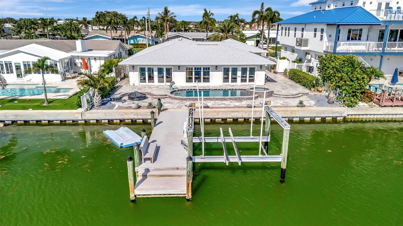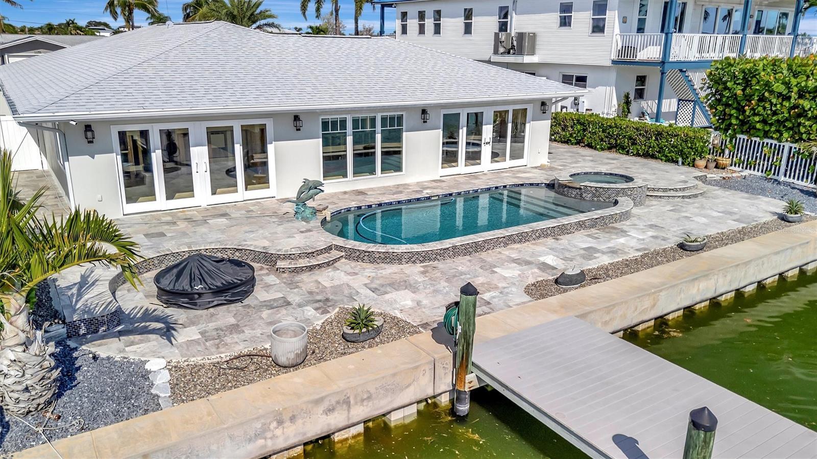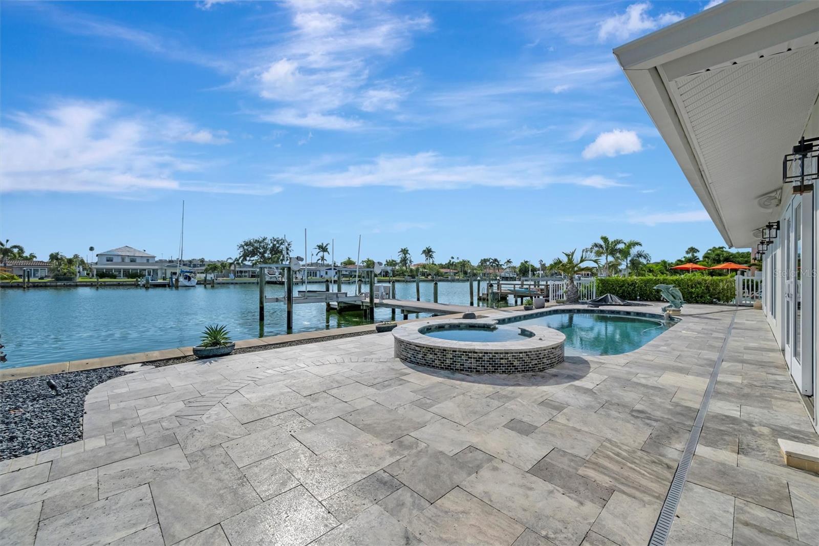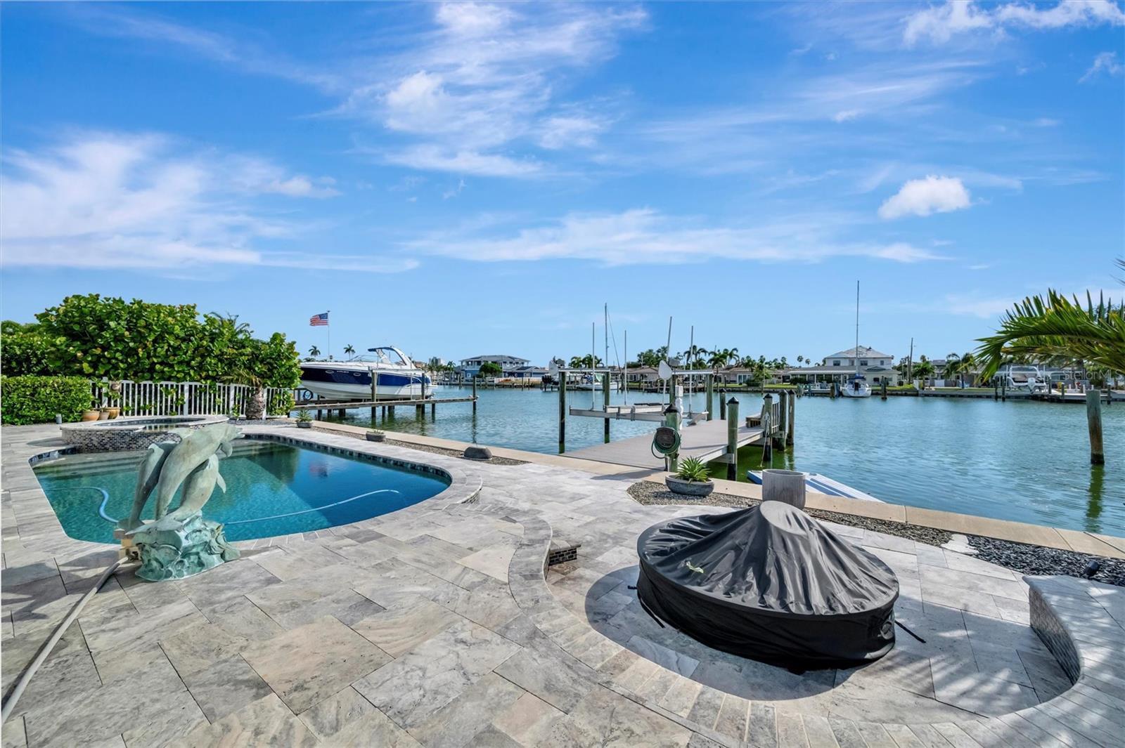 Under contract-accepting backup offers. Experience the rare chance to create your own luxury waterfront retreat on one of Treasure Island’s most desirable deep sailboat water canals, offering quick access to Boca Ciega Bay and the shimmering Gulf of Mexico. Set on an expansive 70x120 lot, this 2,716 sq. ft. residence is a blank canvas for your vision, a heated pool, bubbling spa, and fire pit set against wide water views. The home’s generous layout invites effortless entertaining, with multiple gathering areas off the kitchen that flow to the pool deck and dock. The kitchen space, complete with pantry, is ready to be transformed into your dream culinary showpiece, while the formal dining room showcases tranquil water vistas. In the center of the home, a spacious lanai serves as a versatile bonus space — perfect for morning coffee, afternoon yoga, or evening cocktails in a private, breezy setting. The large family room offers a relaxed spot for movie nights or casual get-togethers. The primary suite is ready to become a serene sanctuary, with room for a spa-inspired bath, dual walk-in closets, mini split for cool sleeping on hot summer nights and an adjacent flex room ideal for an office or expanded retreat. Two additional bedrooms are generously sized, each providing comfort, natural light, and flexibility for guests or family. Additional highlights include an inside laundry room, peace of mind of storm-rated doors and windows, 2024 roof and gutters, lush landscaping, seawall (2018), dock with 16,000 lb. lift and water/electric, 2025 A/C, 2024 water heater, 2024 pool equipment, pebble tech pool and travertine flooring in the main living areas. All just minutes to Treasure Island Beach, vibrant dining, boutique shopping, downtown St. Pete, Tampa, and both airports. Bring your imagination — the possibilities are as endless as the views.