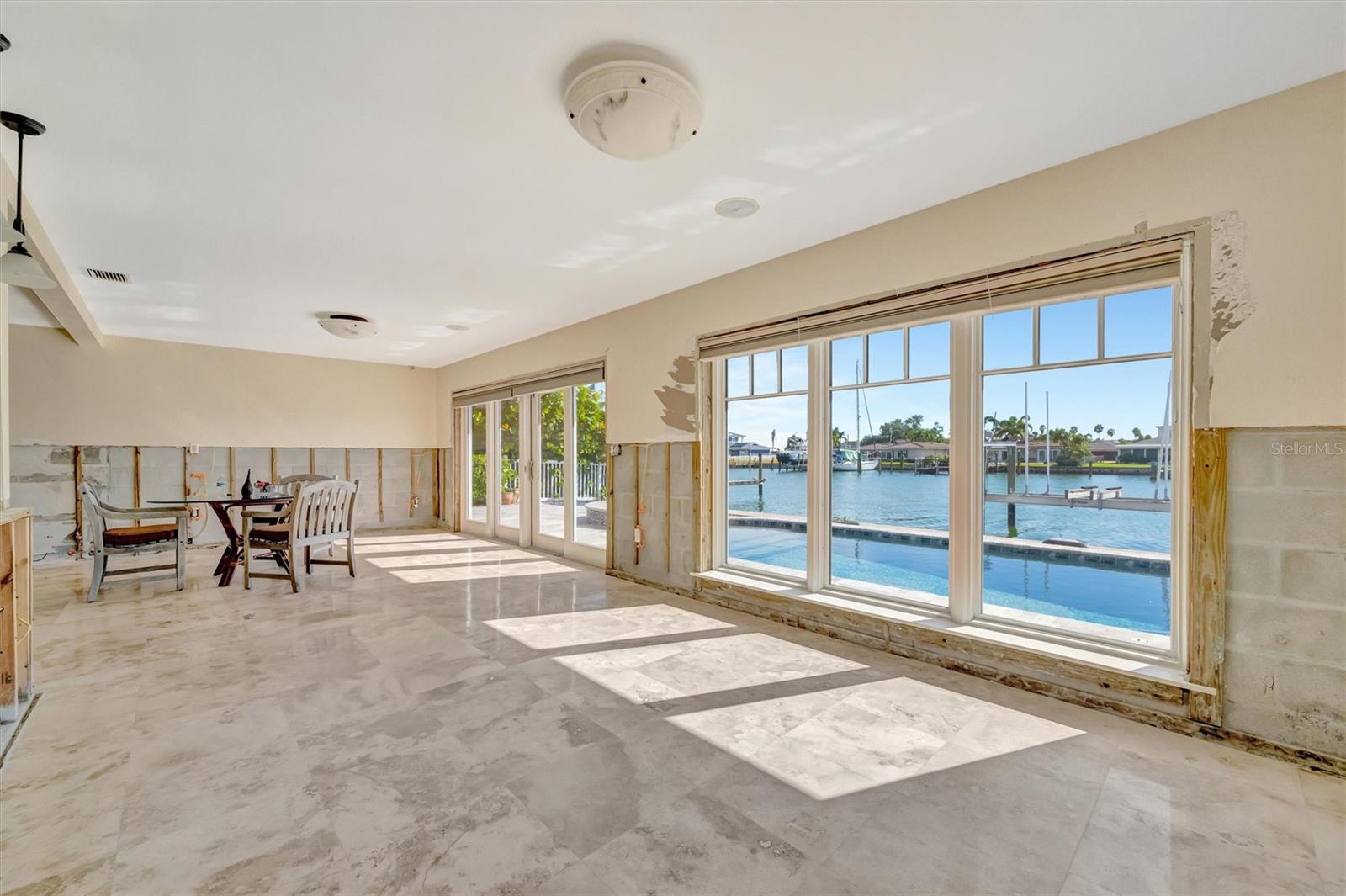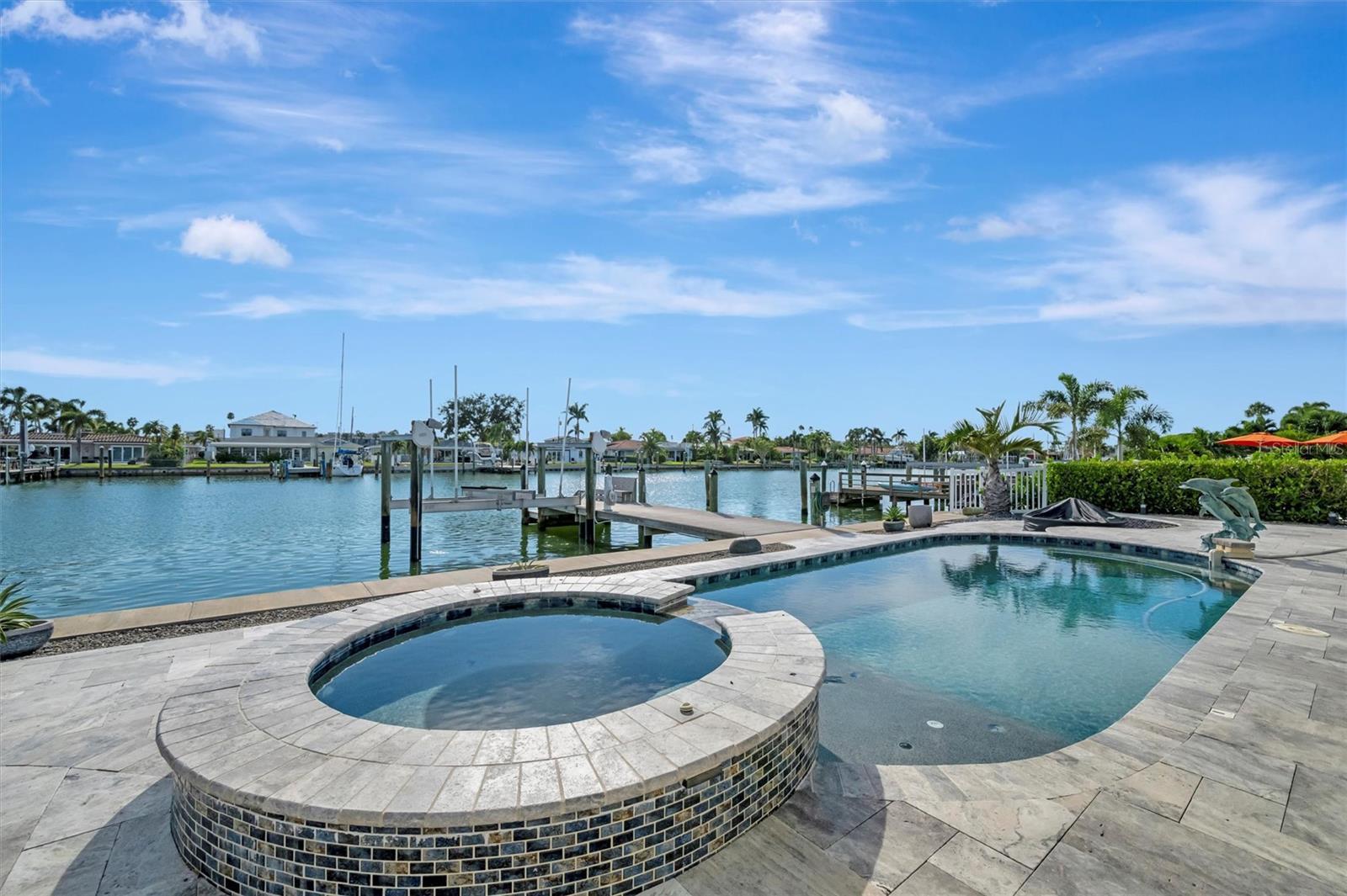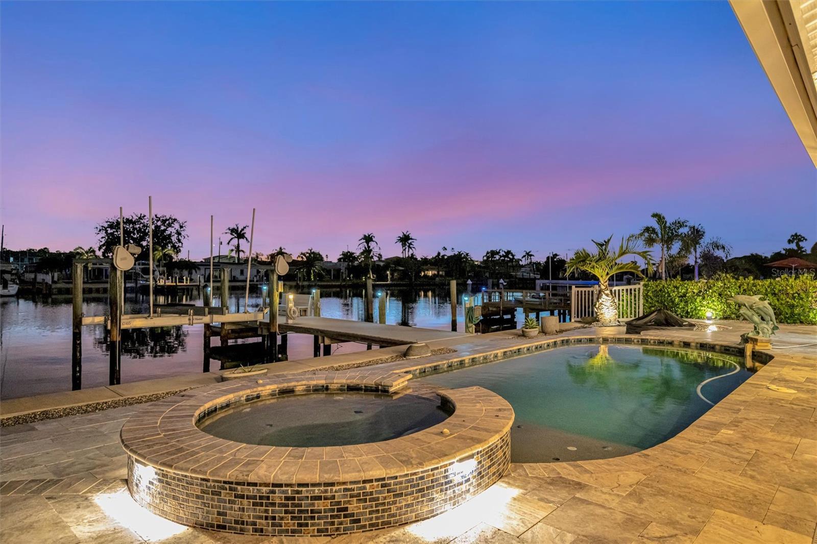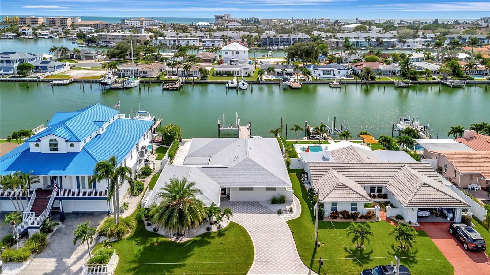 Under contract-accepting backup offers. Experience the rare chance to create your own luxury waterfront retreat on one of Treasure Island’s most desirable deep sailboat water canals, offering quick access to Boca Ciega Bay and the shimmering Gulf of Mexico. Set on an expansive 70x120 lot, this 2,716 sq. ft. residence is a blank canvas for your vision, a heated pool, bubbling spa, and fire pit set against wide water views. The home’s generous layout invites effortless entertaining, with multiple gathering areas off the kitchen that flow to the pool deck and dock. The kitchen space, complete with pantry, is ready to be transformed into your dream culinary showpiece, while the formal dining room showcases tranquil water vistas. In the center of the home, a spacious lanai serves as a versatile bonus space — perfect for morning coffee, afternoon yoga, or evening cocktails in a private, breezy setting. The large family room offers a relaxed spot for movie nights or casual get-togethers. The primary suite is ready to become a serene sanctuary, with room for a spa-inspired bath, dual walk-in closets, mini split for cool sleeping on hot summer nights and an adjacent flex room ideal for an office or expanded retreat. Two additional bedrooms are generously sized, each providing comfort, natural light, and flexibility for guests or family. Additional highlights include an inside laundry room, peace of mind of storm-rated doors and windows, 2024 roof and gutters, lush landscaping, seawall (2018), dock with 16,000 lb. lift and water/electric, 2025 A/C, 2024 water heater, 2024 pool equipment, pebble tech pool and travertine flooring in the main living areas. All just minutes to Treasure Island Beach, vibrant dining, boutique shopping, downtown St. Pete, Tampa, and both airports. Bring your imagination — the possibilities are as endless as the views.