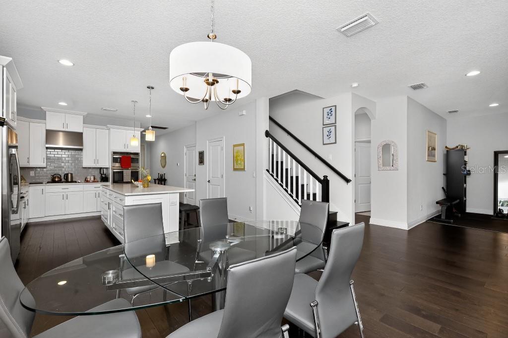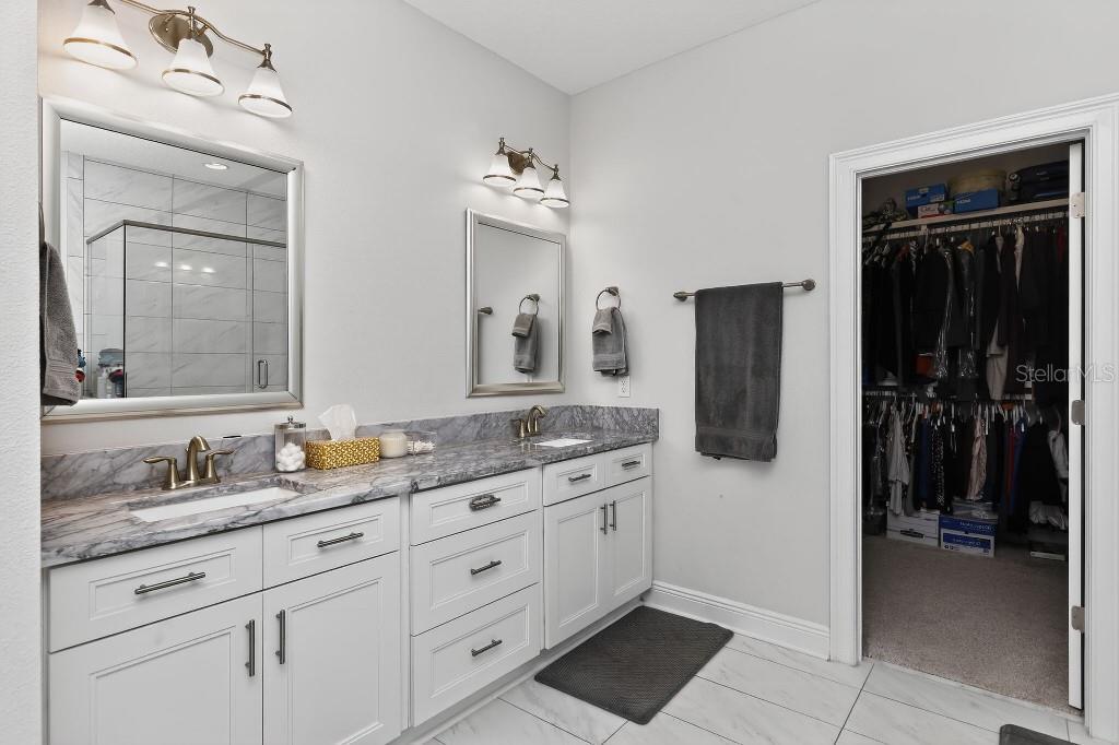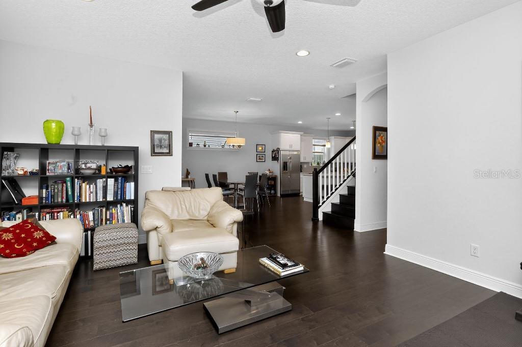 - Ceiling Fans(s), Crown Molding, Eat-in Kitchen, High Ceilings, In Wall Pest System, Kitchen/Family Room Combo, Open Floorplan, Solid Surface Counters, Split Bedroom, Stone Counters, Thermostat, Walk-In Closet(s), Window Treatments