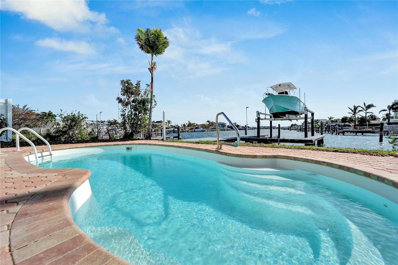 One or more photo(s) has been virtually staged. Waterfront Perfection on the Coveted Isle of Palms – 2023 Windway-Built Coastal Masterpiece Welcome to a rare offering that blends architectural elegance, cutting-edge efficiency, and the ultimate Florida waterfront lifestyle. This Windway-built home rises above the rest with elevated construction, hurricane-rated engineering, and panoramic water views that will take your breath away. From your private balconies, watch golden sunrises spill across the Intracoastal and end your day with fiery Gulf sunsets—this is paradise, perfected. Step through the grand entry and be immediately captivated by soaring ceilings, walls of glass, and a seamless open floor plan designed for both grand entertaining and intimate gatherings. The gourmet chef’s kitchen is a showstopper, boasting a professional-grade gas range, extended waterfall-edge island, walk-in pantry, and top-tier energy-efficient appliances. Designer craftsmanship is evident in every detail—8’ “Safe & Sound” solid-core doors with deco casing, oversized baseboards, TechSmart Home automation with USB outlets, Alexa whole-home music integration, and dual Ecobee thermostats for precision comfort. Every bedroom is a sanctuary with walk-in closets, while the owner’s suite rivals the world’s finest resorts, offering a freestanding soaking tub, frameless glass shower, and an expansive custom wardrobe. Built to impress and endure, the Hardie board exterior with elegant tabby shell finish, hurricane-impact windows, and quad-pocket sliding doors open to a 1,300 sq. ft. resort-style lanai overlooking your heated saltwater pool. Just steps away, a private 50’ dock with a 15,000-lb boat lift offers instant access to deep-water fishing and the turquoise waters of the Gulf of Mexico. The oversized three-car garage provides not only parking for vehicles but also a flex space for a gym, workshop, or additional storage for all your coastal toys. Nestled just blocks from the beach, world-class dining, and boutique shopping, this home offers thousands in annual savings thanks to elevated construction, hurricane-rated features, and advanced energy efficiency—plus the reassurance of a 10-year builder warranty. This isn’t just a home—it’s a statement of lifestyle, luxury, and location. Your waterfront dream awaits—schedule your private tour today before this Treasure Island masterpiece is claimed.