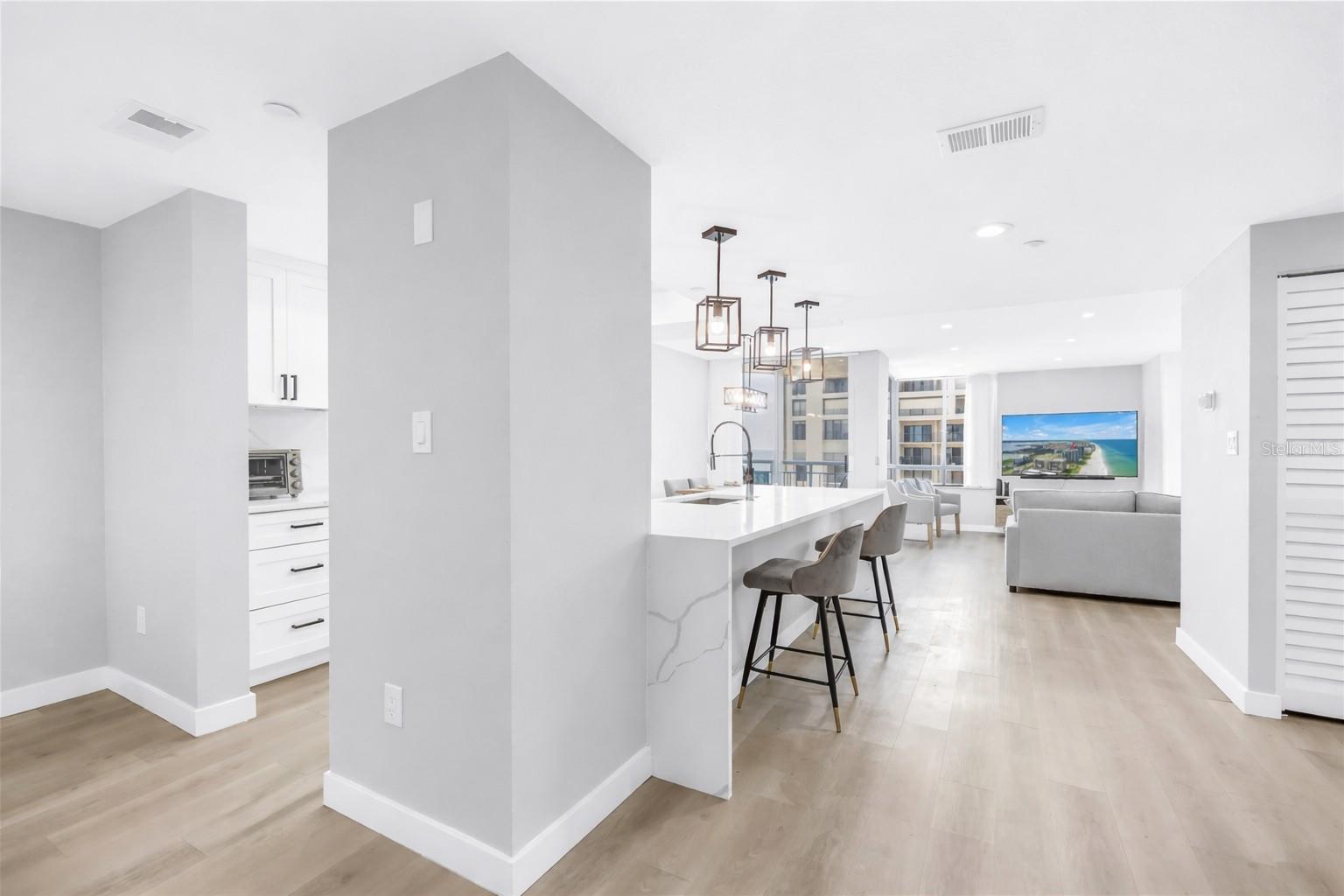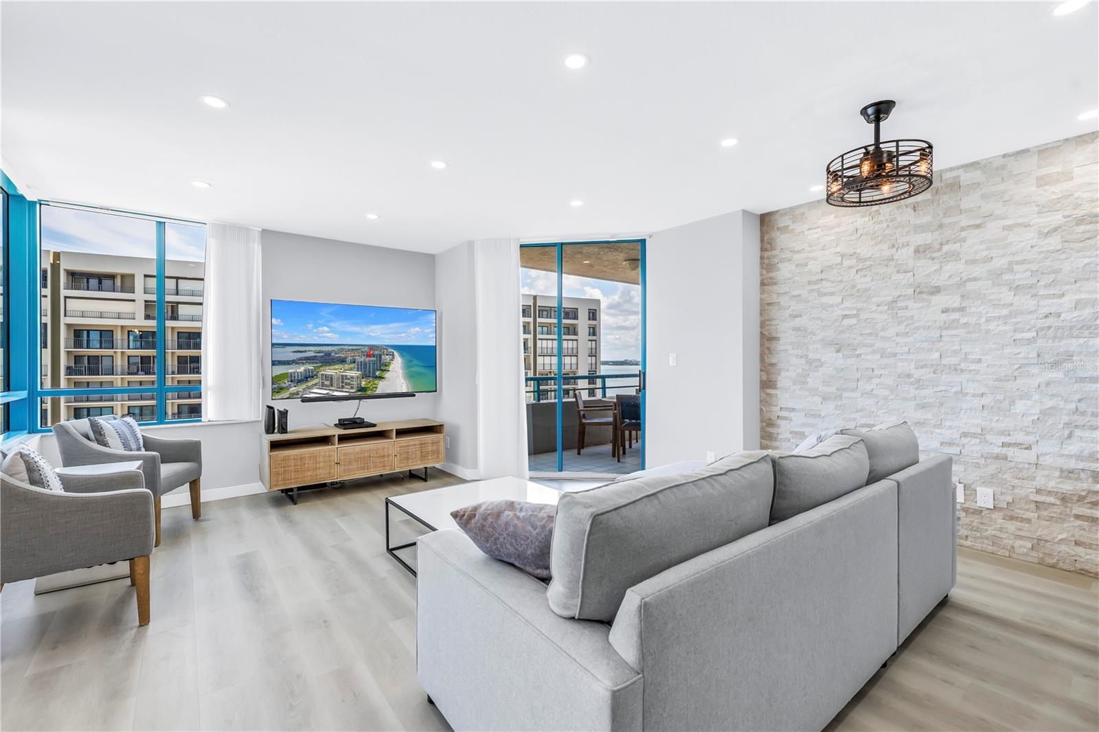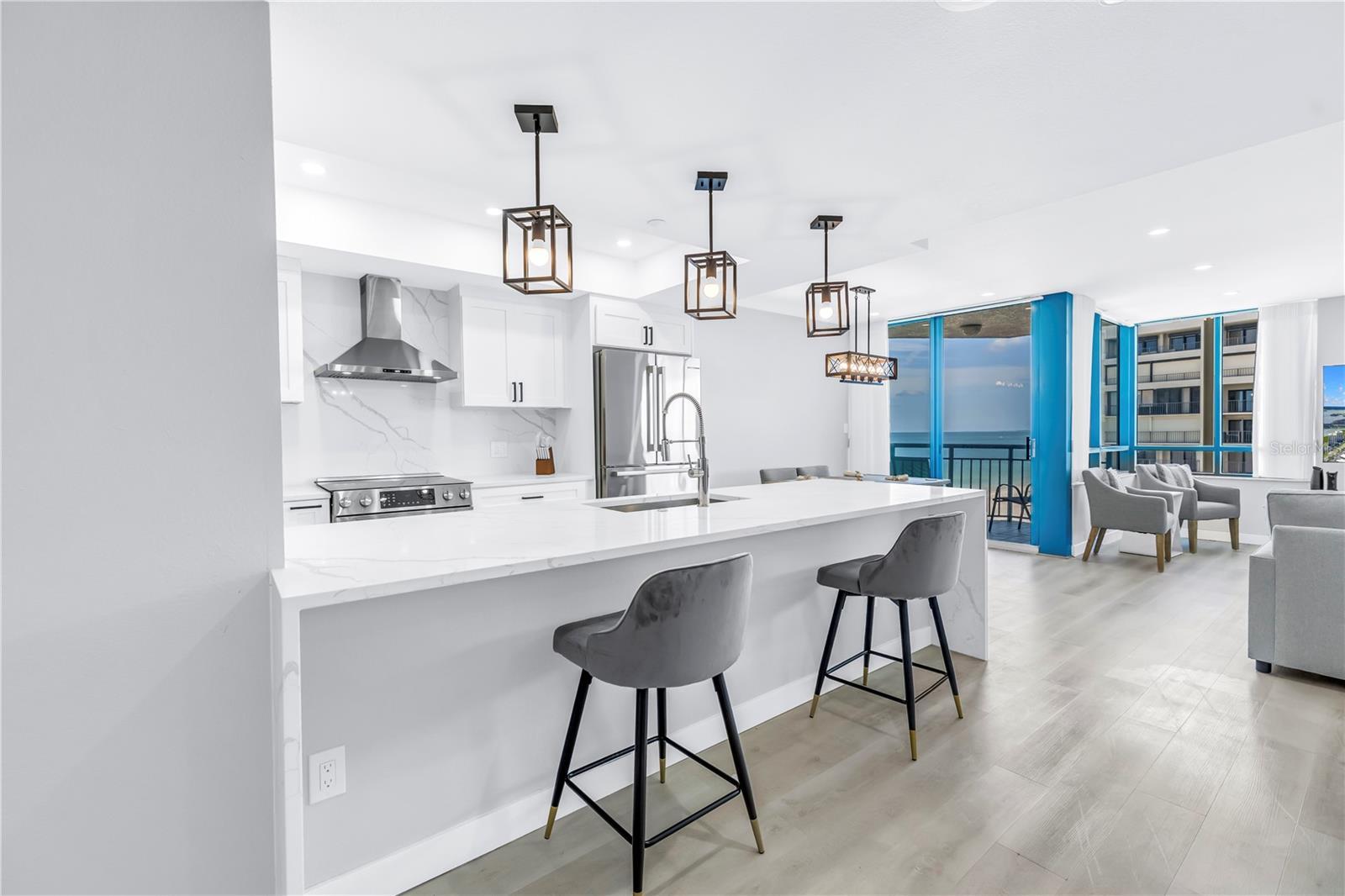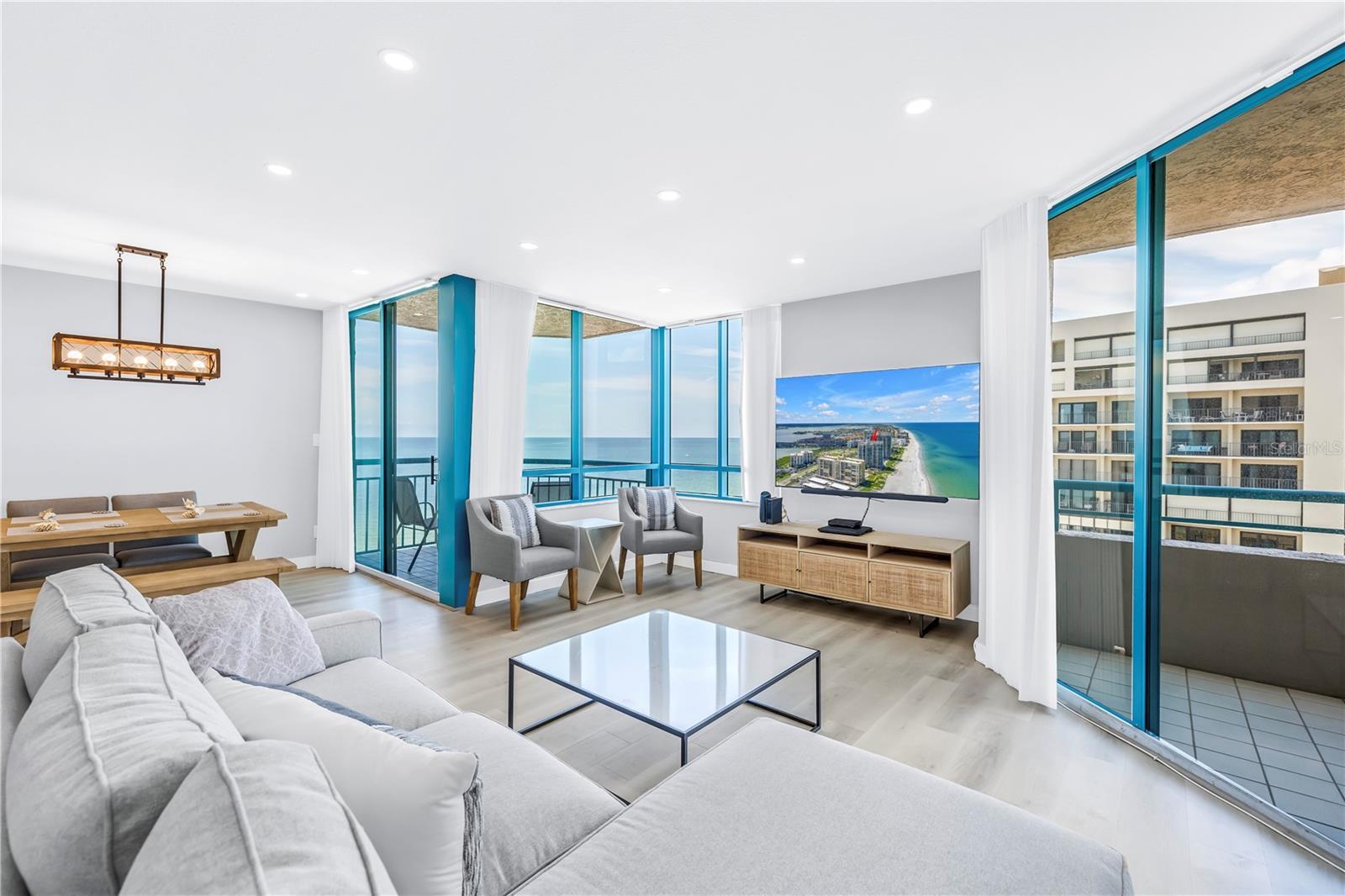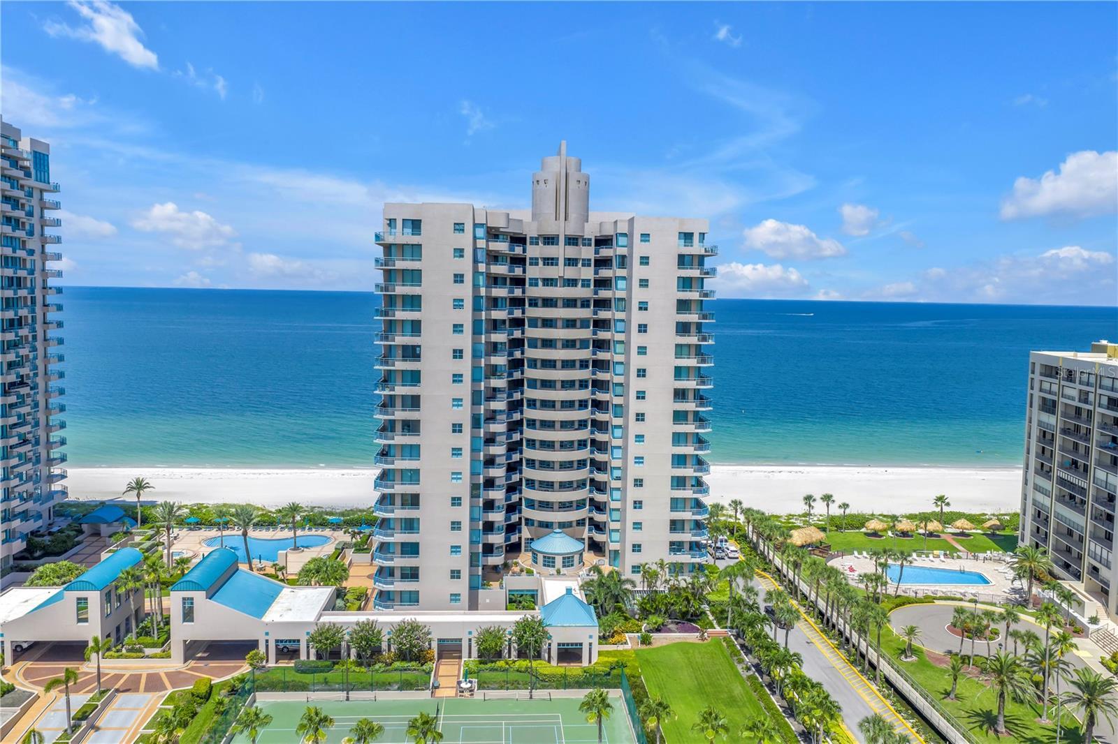 One or more photo(s) has been virtually staged. Welcome to Unit 906 at Ultimar One—a beautifully renovated 2-bedroom, 2-bath coastal sanctuary offering approximately 1,450 sq. ft. of refined living space within one of Sand Key’s premier resort-style communities. Perched elegantly above the shoreline, this residence offers a rare blend of privacy and breathtaking vistas. Nearly every room frames panoramic water views, creating a tranquil backdrop from sunrise to sunset. Originally constructed in 1991, the home has been thoughtfully and meticulously updated, showcasing premium Bosch appliances, a brand-new HVAC system, and a new water heater for modern comfort and peace of mind. Inside, bright, airy interiors flow effortlessly, offering a versatile layout suited to both relaxed coastal living and amazing entertaining. Whether you envision a serene seaside retreat or a stylish gathering space, this home adapts beautifully to your lifestyle. Ultimar’s world-class amenities elevate everyday living: three heated pools—including a lap pool—spas, six tennis courts, a half basketball court, putting green, croquet lawn, and meticulously landscaped grounds. Residents also enjoy a beautifully appointed clubroom with full kitchen, billiard and media rooms, a state-of-the-art fitness center with steam and sauna, on-site management, and 24-hour security. Perfectly positioned on pristine Sand Key, you’re just steps to the beach and moments from the dining, shopping, and coastal attractions of Clearwater Beach. Experience the very best of Gulf-coast living—schedule your private showing today.
