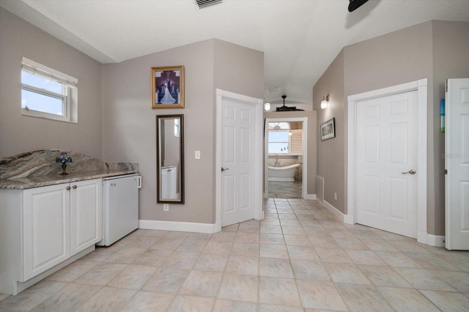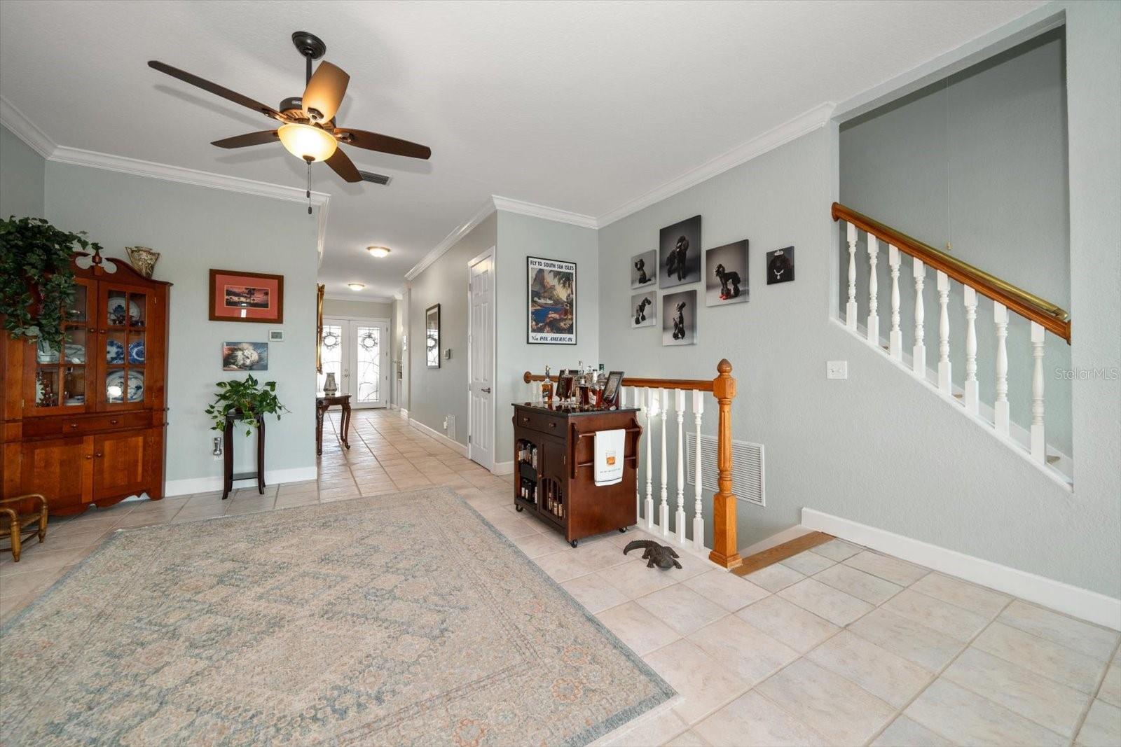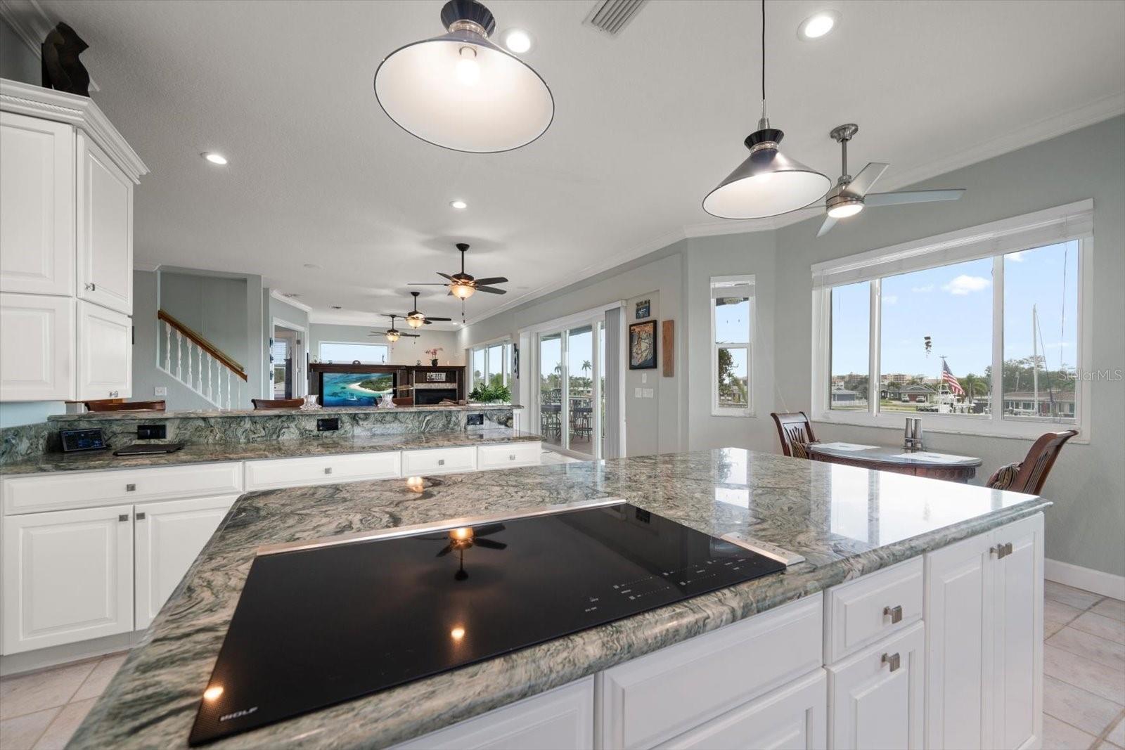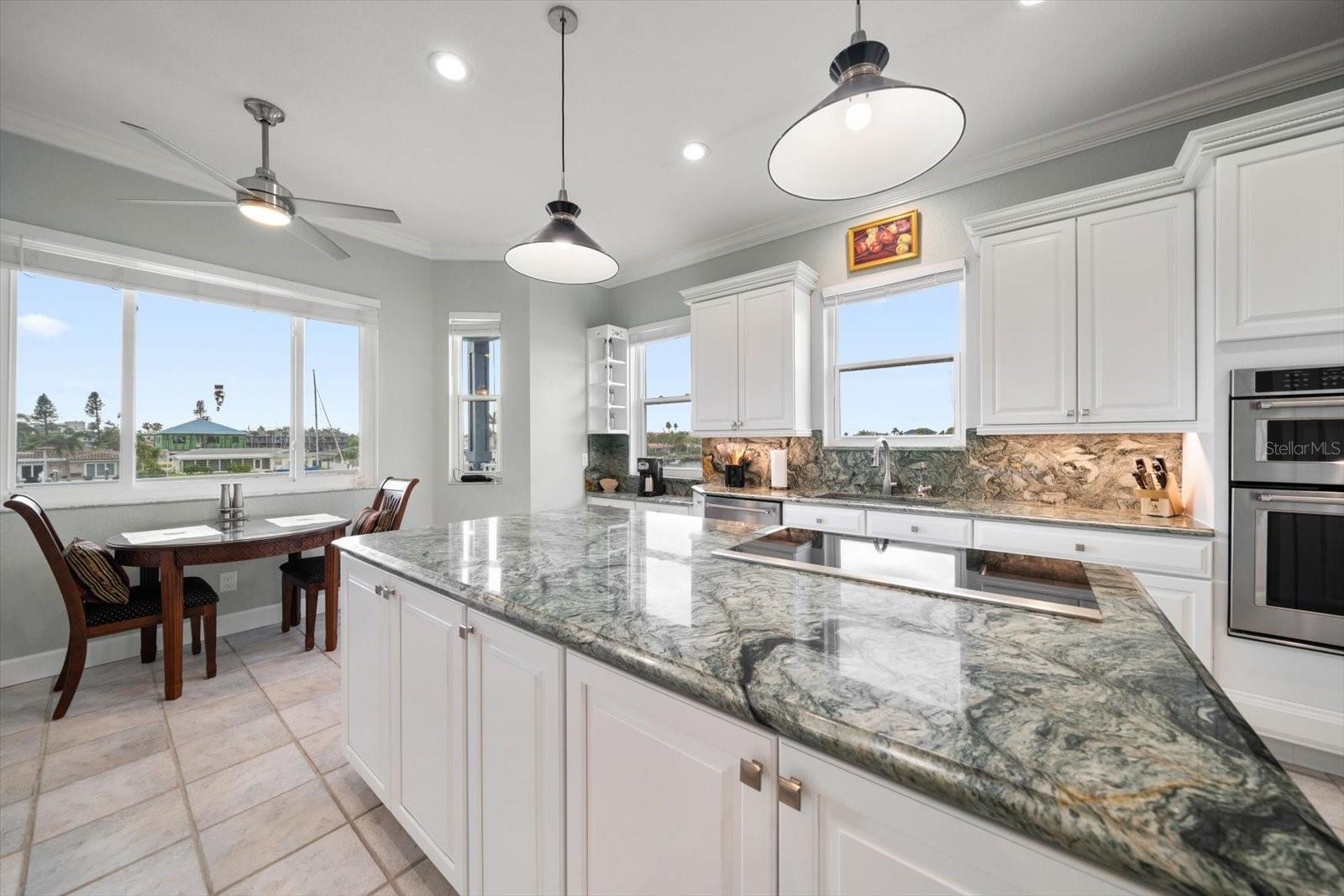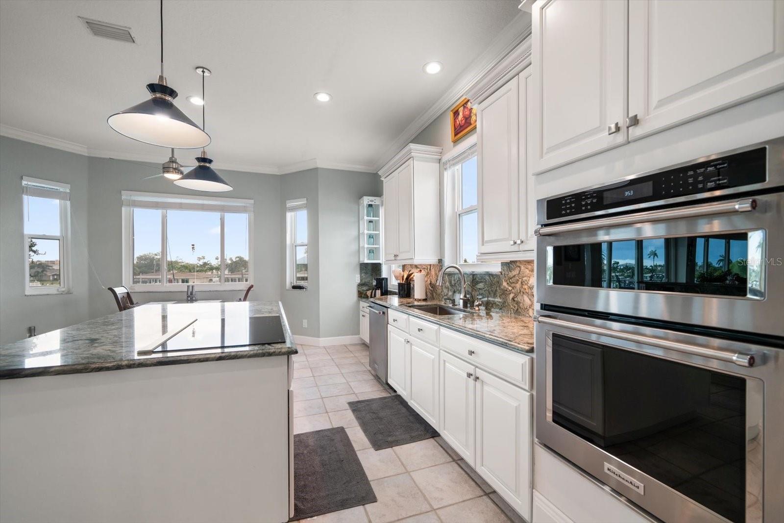 - Cathedral Ceiling(s), Ceiling Fans(s), Crown Molding, Eat-in Kitchen, High Ceilings, Kitchen/Family Room Combo, PrimaryBedroom Upstairs, Stone Counters, Walk-In Closet(s), Window Treatments