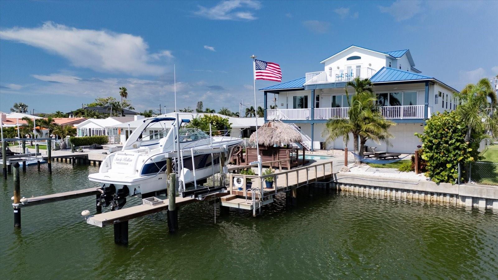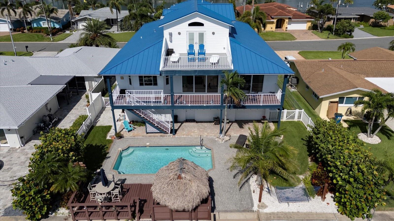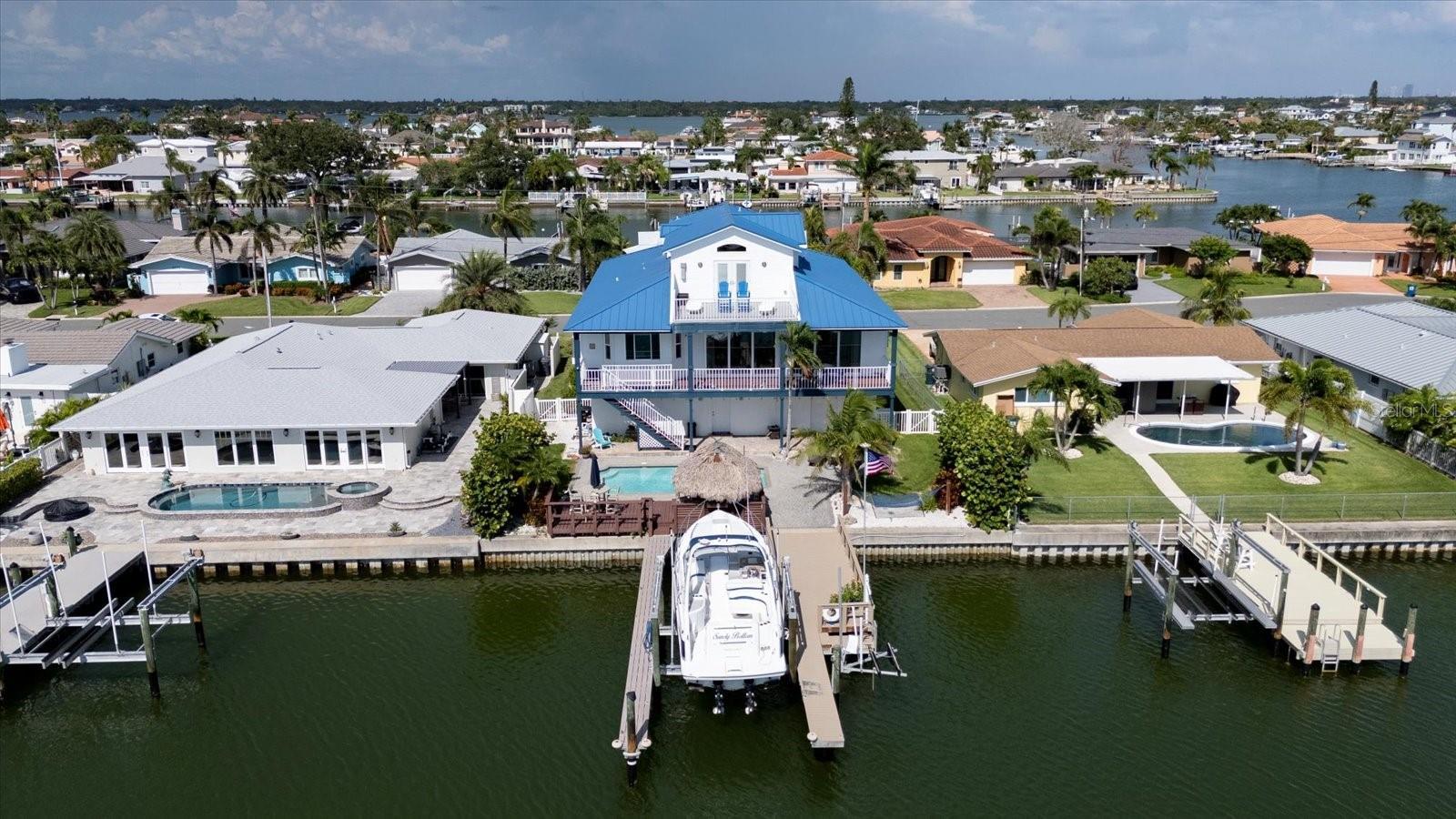 PRICE REDUCITON - GREAT PRICE! - WELCOME TO YOUR WATERFRONT COASTAL PARADISE! This remarkable 5-bedroom, 3.5-bath waterfront home offers over 4,000 square feet of luxury living, blending timeless design with modern features for the ultimate Florida lifestyle. From the moment you arrive, the coastal metal roof installed in 2019 and grand entryway set the tone for the elegance within. Inside, you’ll find expansive living spaces highlighted by two fireplaces—one in the inviting living room and another in the private primary suite. The chef’s kitchen opens seamlessly to spacious dining and gathering areas, making it ideal for entertaining family and friends. The primary suite completely remodeled in 2021 is a sanctuary, featuring its own fireplace, spa-inspired bath, and a private top-floor terrace where you can watch spectacular Gulf Coast sunsets. Additional bedrooms are generously sized, and the dedicated office provides the perfect work-from-home space. A game room ensures endless fun, while the thoughtful floor plan creates harmony between everyday living and entertainment. Two new air conditioner systems installed in 2019 and two new water heaters in 2022. Outdoors, your private paradise awaits. Enjoy a refreshing swim in the heated salt water pool with a new pump installed in 2025 and salt generator. You also can take advantage of the 20,000LB boat lift and updated double-sided dock for effortless adventures on the water. With a 4-car tandem garage, there’s room for all your vehicles, toys, and storage needs. Exterior completely painted in 2023. This home was designed for those who love to gather, celebrate, and live life to the fullest. Every detail of this home was crafted for connection and celebration—whether gathering around the fire on cool evenings, hosting sunset soirees on the terrace, or enjoying quiet mornings watching dolphins play in the bay. This is more than a home; it is a lifestyle, a statement, and a legacy. Call for your private showing today!