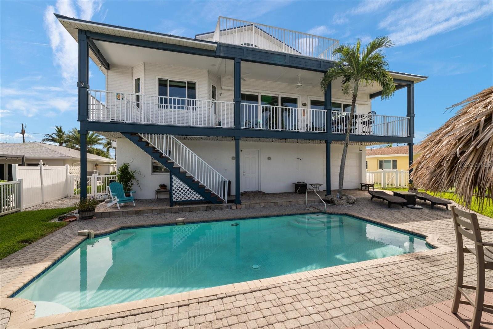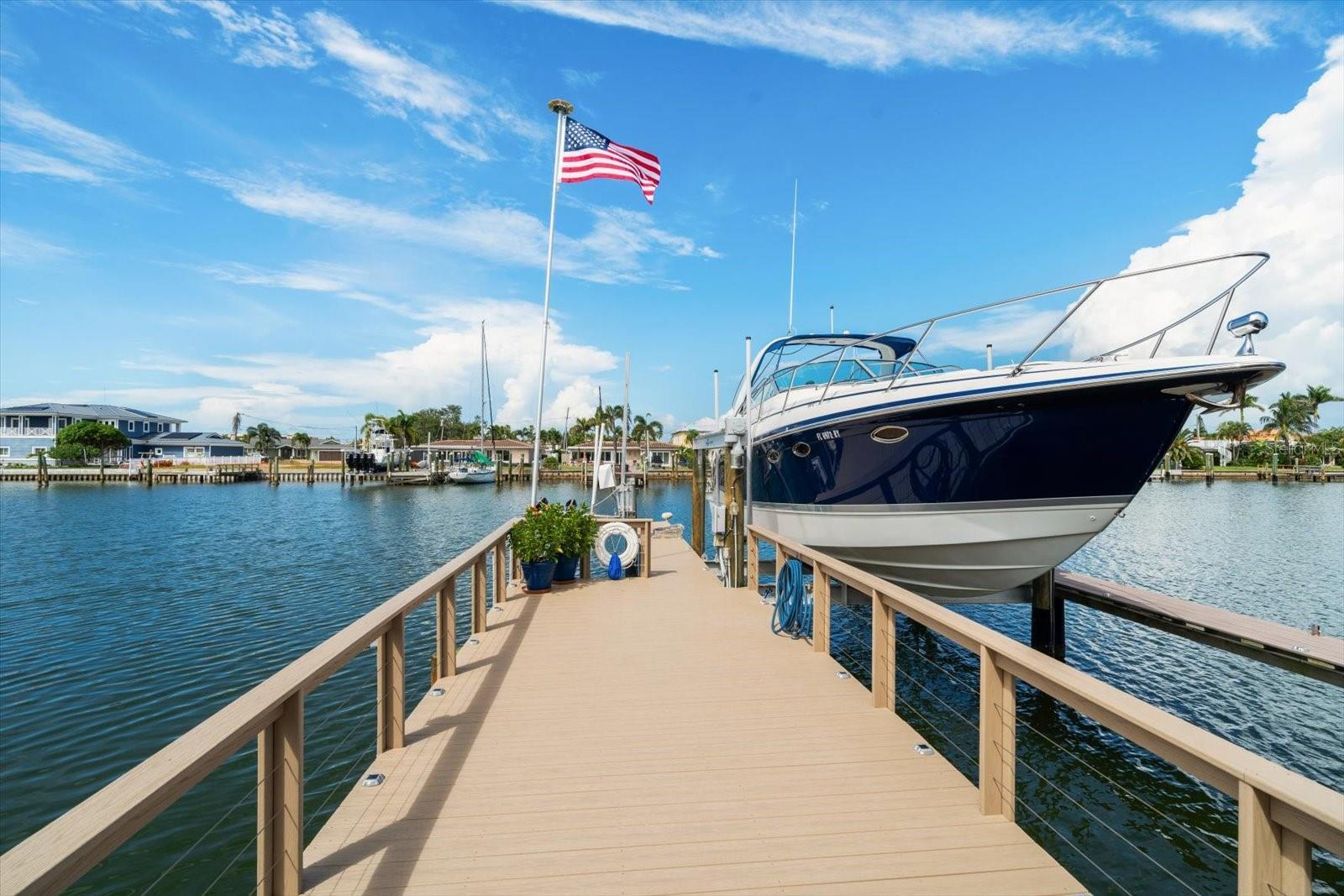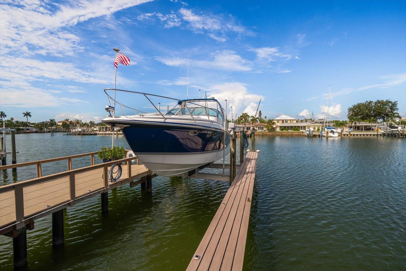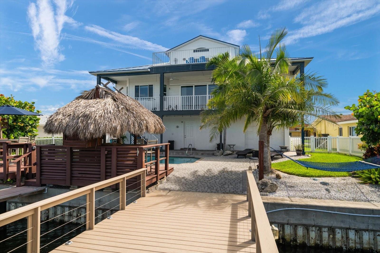 PRICE REDUCITON - GREAT PRICE! - WELCOME TO YOUR WATERFRONT COASTAL PARADISE! This remarkable 5-bedroom, 3.5-bath waterfront home offers over 4,000 square feet of luxury living, blending timeless design with modern features for the ultimate Florida lifestyle. From the moment you arrive, the coastal metal roof installed in 2019 and grand entryway set the tone for the elegance within. Inside, you’ll find expansive living spaces highlighted by two fireplaces—one in the inviting living room and another in the private primary suite. The chef’s kitchen opens seamlessly to spacious dining and gathering areas, making it ideal for entertaining family and friends. The primary suite completely remodeled in 2021 is a sanctuary, featuring its own fireplace, spa-inspired bath, and a private top-floor terrace where you can watch spectacular Gulf Coast sunsets. Additional bedrooms are generously sized, and the dedicated office provides the perfect work-from-home space. A game room ensures endless fun, while the thoughtful floor plan creates harmony between everyday living and entertainment. Two new air conditioner systems installed in 2019 and two new water heaters in 2022. Outdoors, your private paradise awaits. Enjoy a refreshing swim in the heated salt water pool with a new pump installed in 2025 and salt generator. You also can take advantage of the 20,000LB boat lift and updated double-sided dock for effortless adventures on the water. With a 4-car tandem garage, there’s room for all your vehicles, toys, and storage needs. Exterior completely painted in 2023. This home was designed for those who love to gather, celebrate, and live life to the fullest. Every detail of this home was crafted for connection and celebration—whether gathering around the fire on cool evenings, hosting sunset soirees on the terrace, or enjoying quiet mornings watching dolphins play in the bay. This is more than a home; it is a lifestyle, a statement, and a legacy. Call for your private showing today!