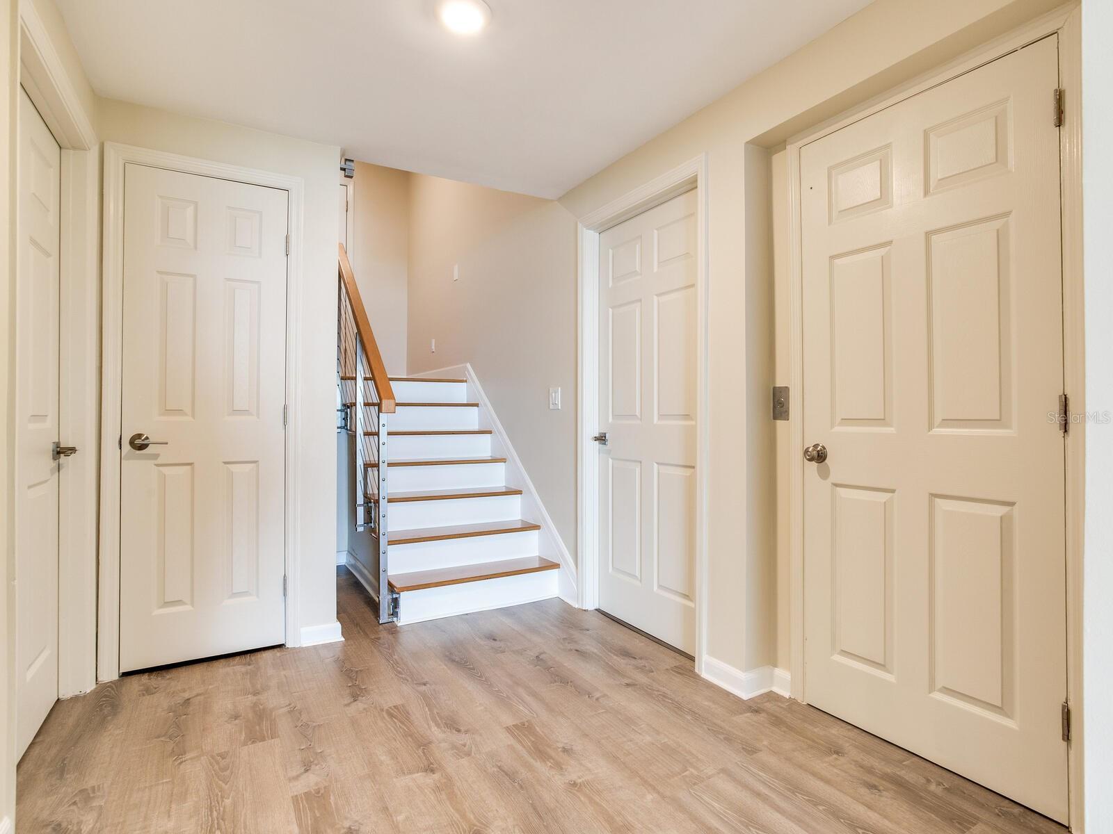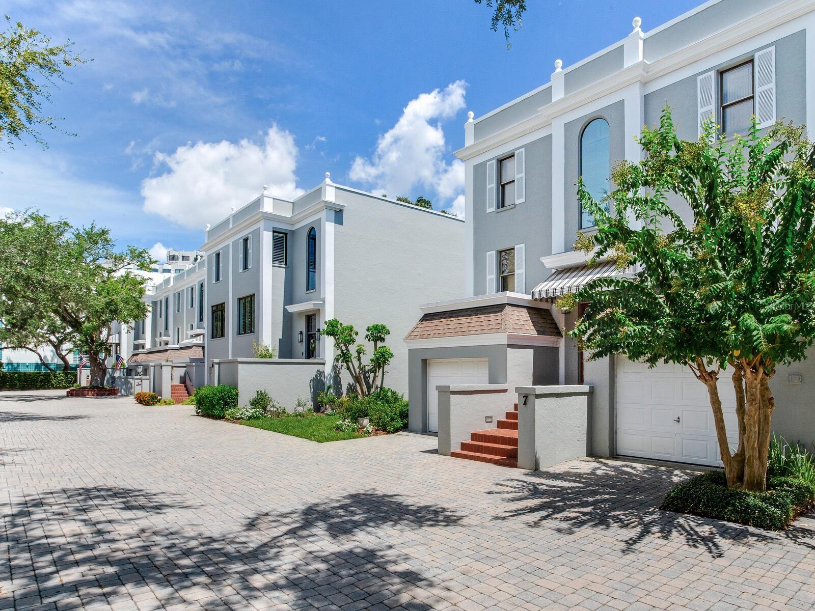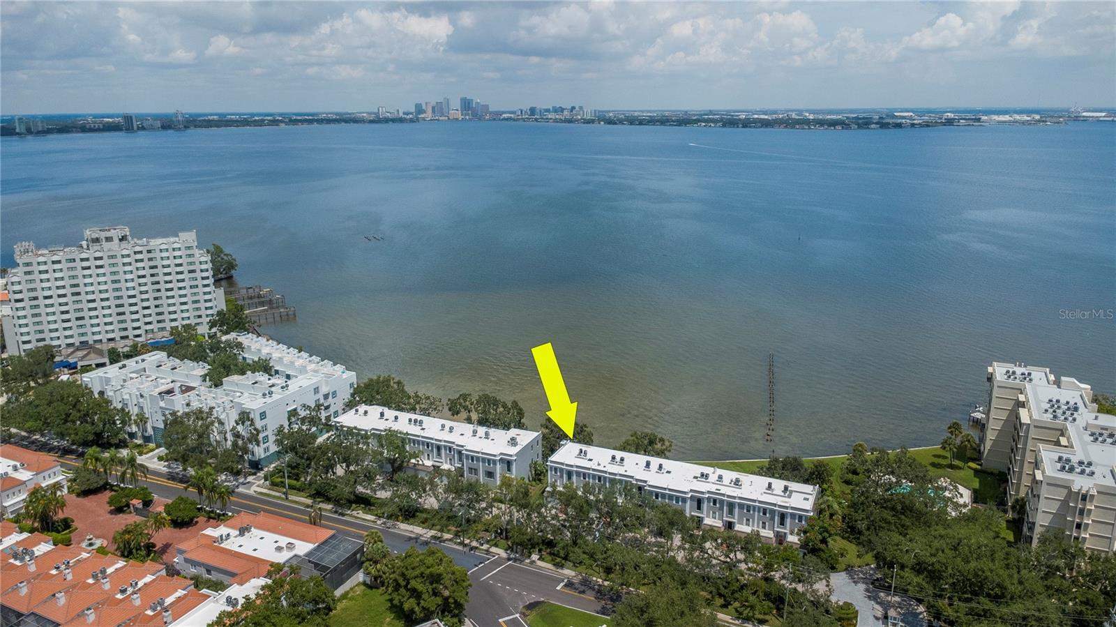 This corner, open-bay and downtown water view villa is truly a gem to see. It offers three or four bedrooms, depending on your desired use, and features a grand living and dining area with views of water, water, water in every direction. The entire unit is light and bright, with an abundance of floor-to-ceiling windows and electric window shades throughout for effortless light control and privacy. The spacious primary bedroom and bath include a generous walk-in closet, breathtaking water views, and a convenient laundry chute that leads directly to the laundry room below. One of the three bedrooms is currently used as a den, lined with custom cabinetry—part of the cabinet wall could easily be reconfigured to create a built-in closet. An elevator provides easy access between levels. The ground floor is designed for entertaining, featuring a full bath and flexible space that can serve as an executive-style suite, complete with another bedroom and living area. This level also showcases the same stunning water views and opens to a private patio with grass and a lawn that extends right to the water’s edge. The laundry room and two garages are also located on this level—both garage floors have been finished with a sleek and durable epoxy coating. The property includes a beautiful waterfront pool and plenty of auxiliary parking for guests.