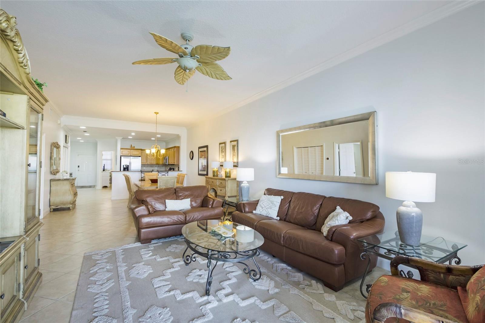 - Ceiling Fans(s), Crown Molding, Eat-in Kitchen, Elevator, High Ceilings, Kitchen/Family Room Combo, Living Room/Dining Room Combo, Open Floorplan, Primary Bedroom Main Floor, Solid Surface Counters, Solid Wood Cabinets, Split Bedroom, Thermostat, Walk-In Closet(s), Window Treatments