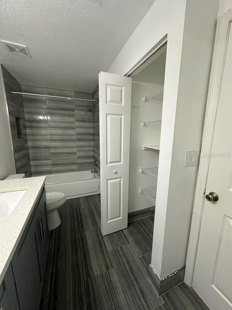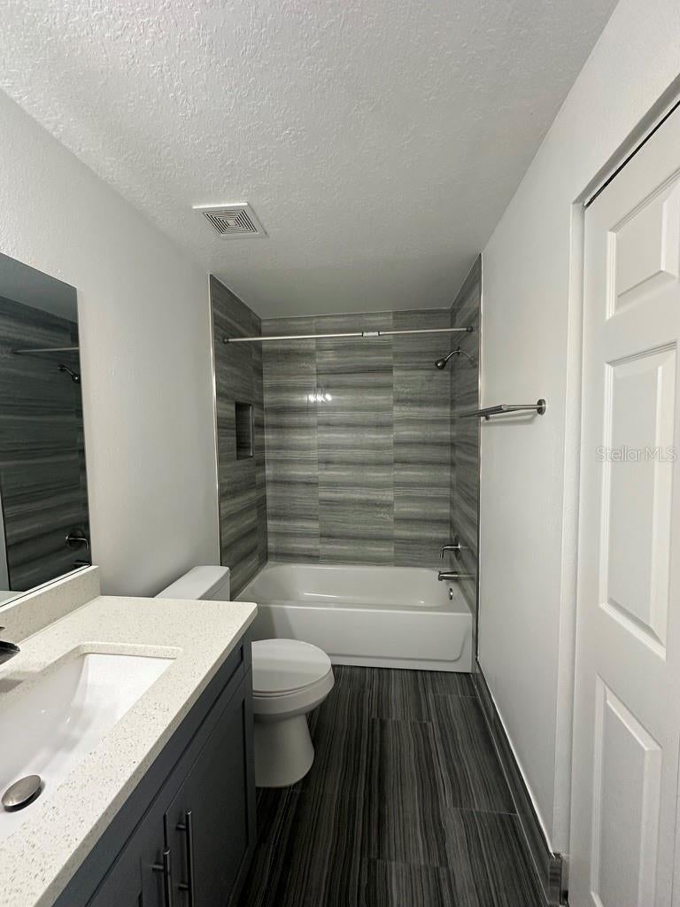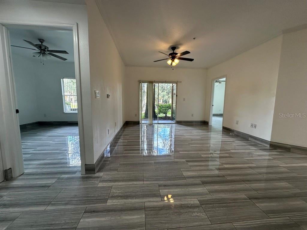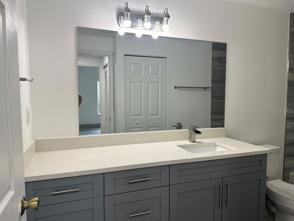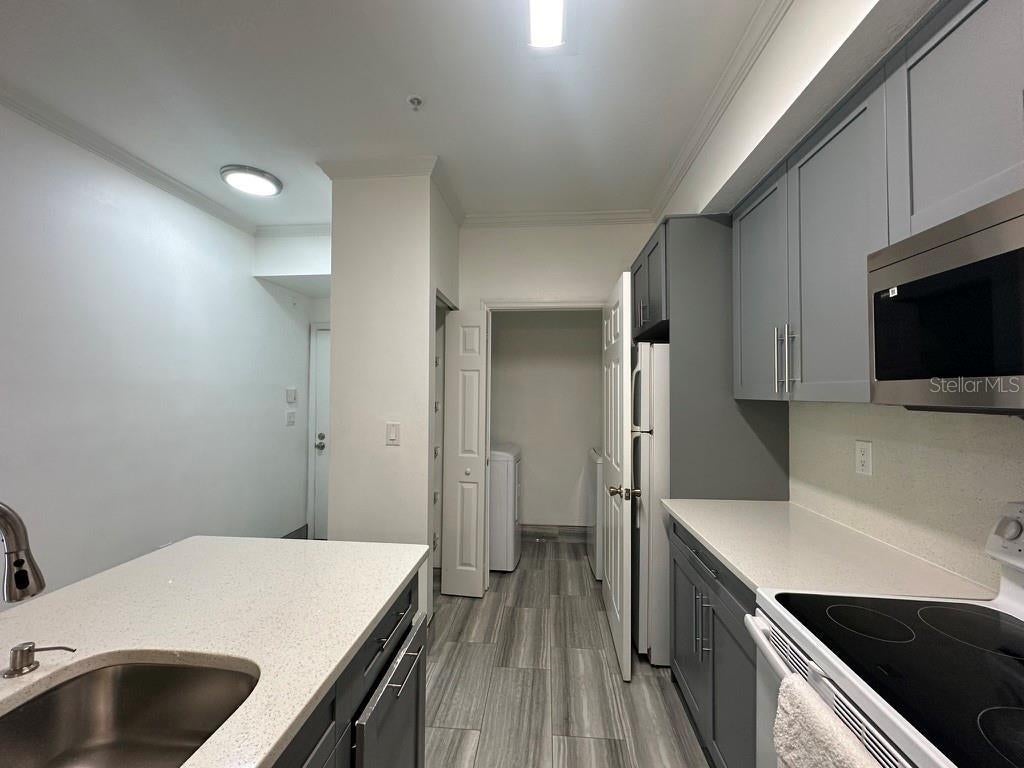 Recently renovated condo in the desirable Pinnacle at Carrollwood Condo Association. This spacious 2-bedroom, 2-bath unit boasts a bright, open layout with high-gloss porcelain tile floors throughout, a fully upgraded kitchen with modern gray cabinetry, quartz countertops, and stainless-steel appliances, plus a dining area perfect for everyday meals or entertaining. The living room opens to a private patio with lush greenery, and the primary suite features a walk-in closet, en-suite bath with frameless glass shower, and a serene pond view. Enjoy access to community amenities including a gated entry with callbox, pool, fitness center, and beautifully