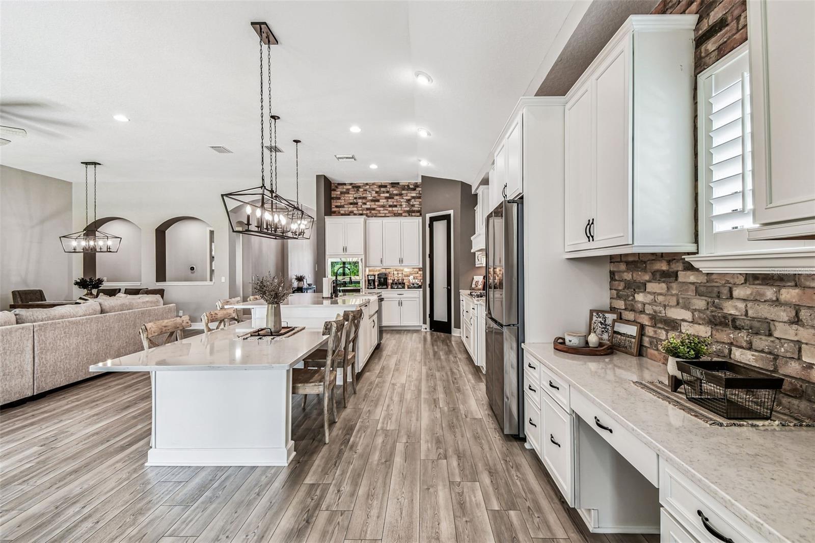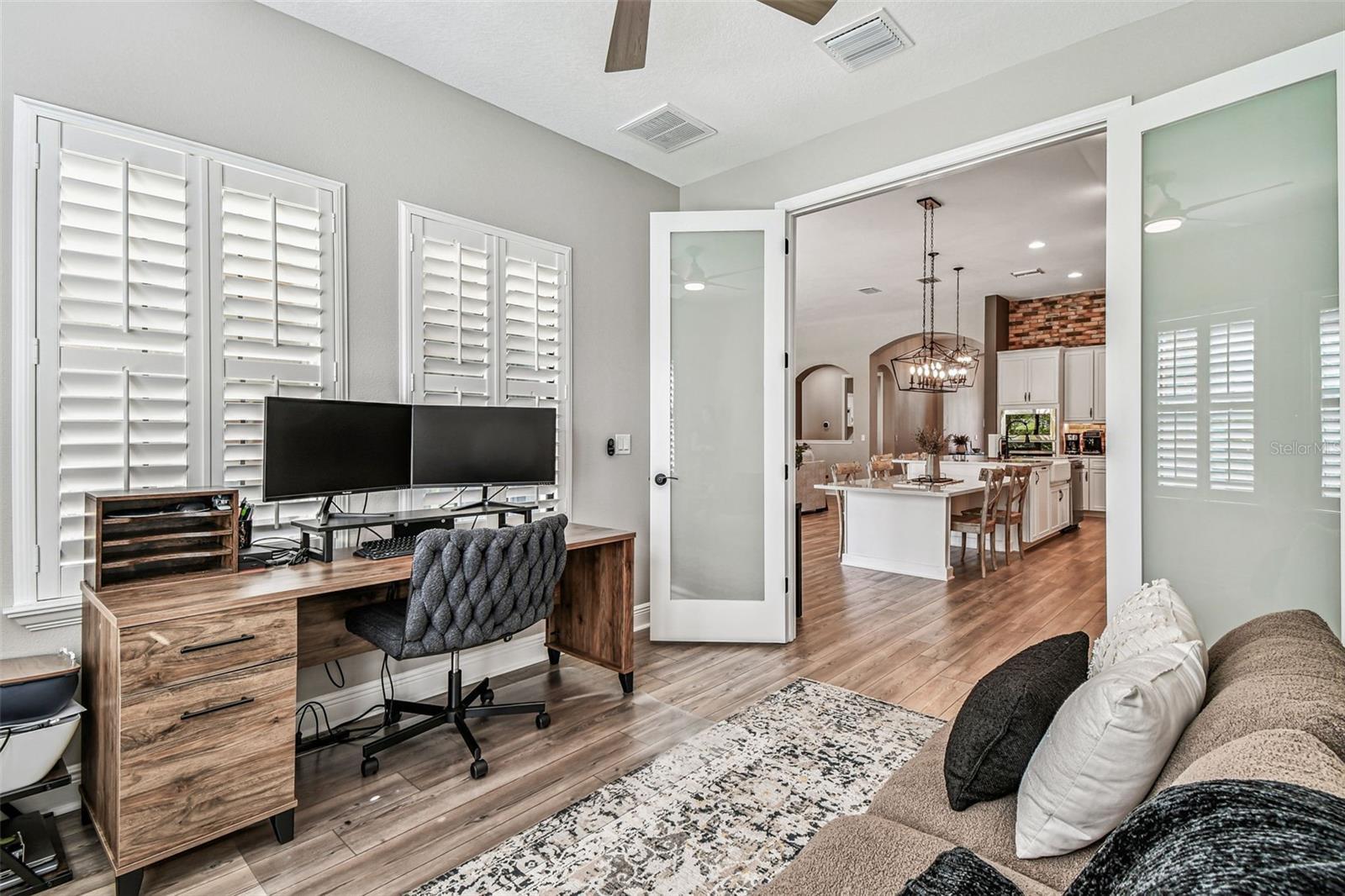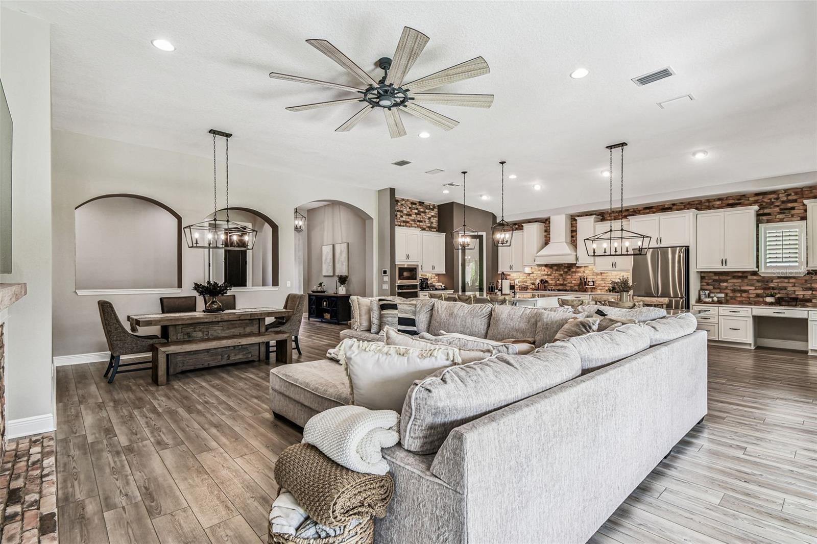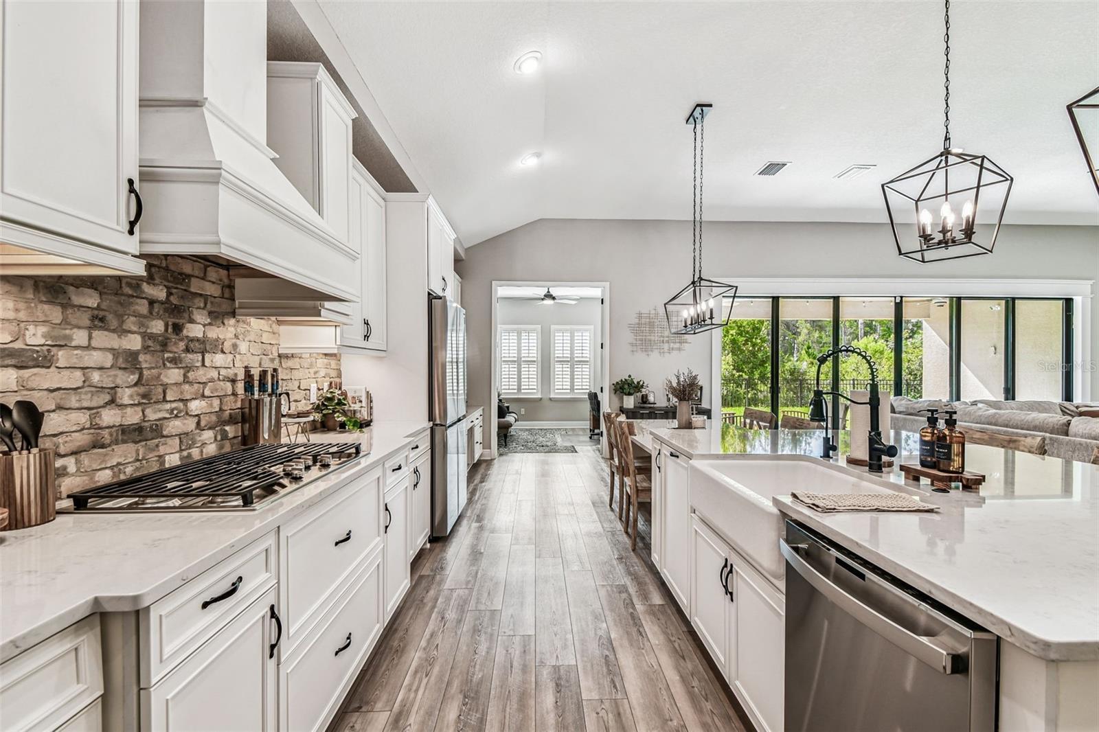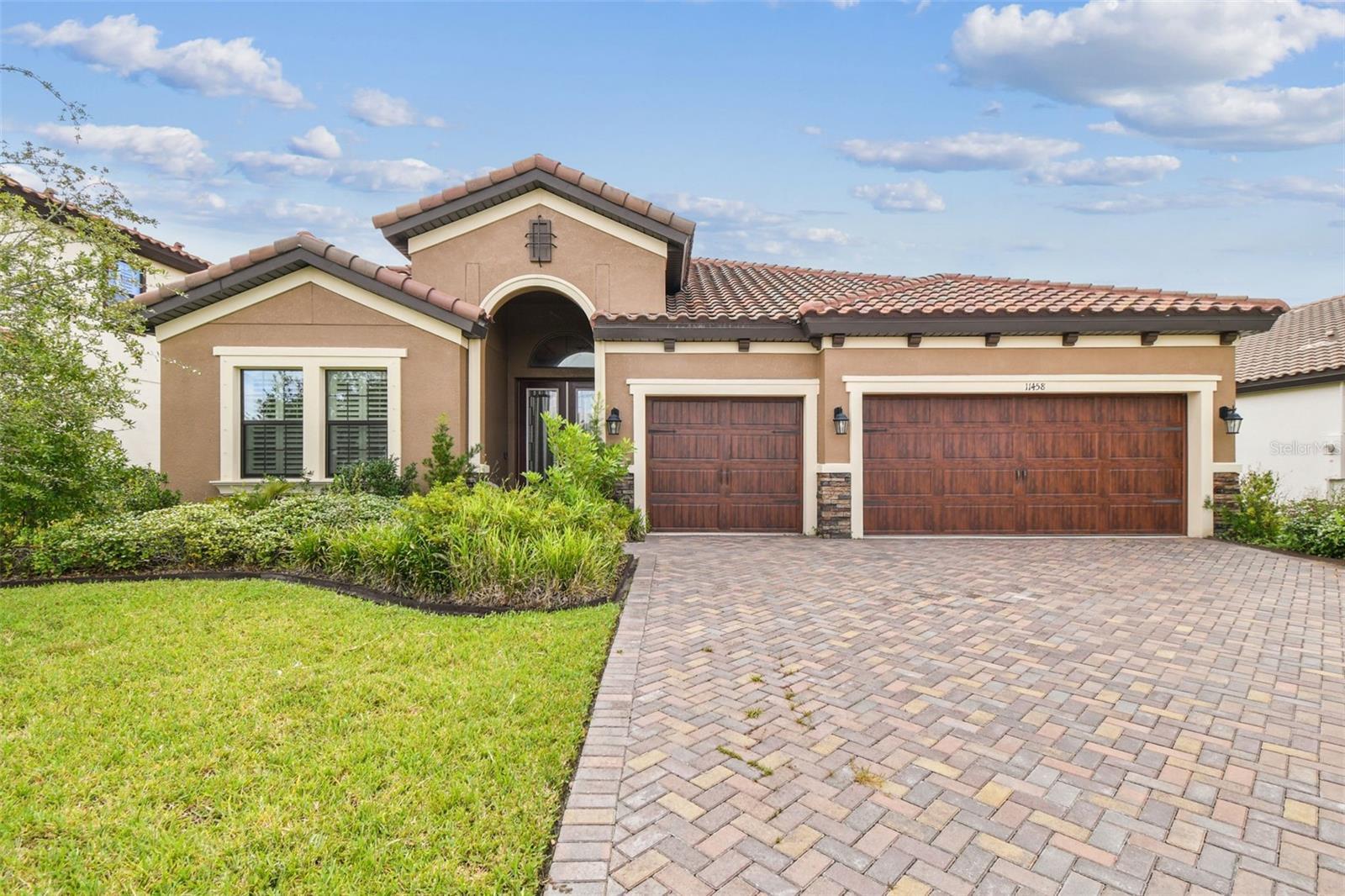 Under contract-accepting backup offers. Price improvement, ready to sell! Step into luxury with this stunning Bayshore 1 floor plan—one of Homes by West Bay’s most sought-after designs. Nestled on a serene conservation lot, this beautifully upgraded home offers four spacious bedrooms, three full bathrooms, and a dedicated office space. From the moment you enter through the grand double foyer, you’ll be impressed by the soaring ceilings, elegant shutters, and impeccable custom touches throughout. At the heart of the home is the gourmet kitchen—a chef’s dream—featuring a farmhouse sink, built-in appliances, a five-burner gas cooktop, and a striking custom wood vent hood. White cabinetry, quartz countertops, a charming brick backsplash, and a reverse osmosis water system further elevate the space. The extended island not only enhances the kitchen’s aesthetics but also offers additional seating for casual dining. The expansive grand room is the centerpiece of this home, showcasing a stunning brick fireplace with built-in custom cabinetry. Paired with the adjacent dining area, this open-concept space is perfect for entertaining. The private office is filled with natural light and features elegant double doors—ideal for remote work or as a cozy secondary living area. The thoughtful three-way split floor plan offers privacy and flexibility. The luxurious primary suite boasts oversized his-and-hers walk-in closets and a spa-like en-suite bathroom complete with a soaking tub, walk-in shower, and dual quartz vanities. Two additional bedrooms at the front of the home share a stylish full bathroom and feature custom built-in raised beds, while the fourth bedroom enjoys its own private bath—perfect for guests. Practicality meets charm in the extended laundry room and drop zone, which includes a sink, storage cabinets, and floating shelves. Additional upgrades include a tankless gas water heater, reverse osmosis system, water softener, and newly installed solar panels—ideal for energy-conscious living. The solar generates more than the home uses monthly so you tend to see a buy back!