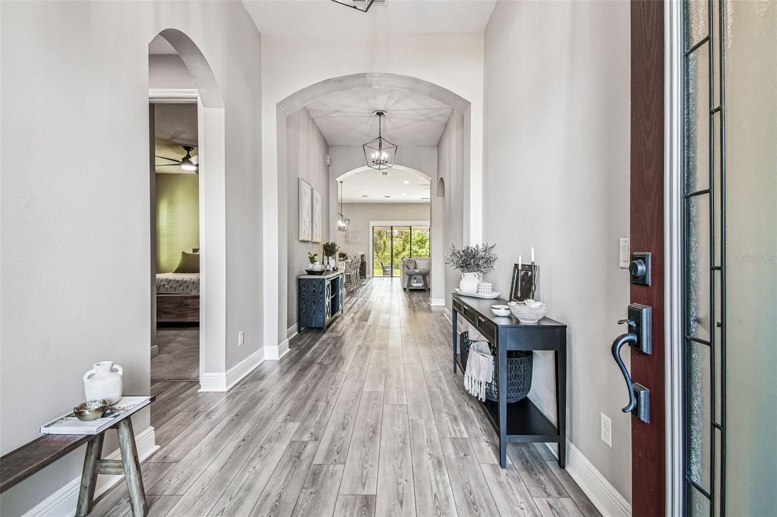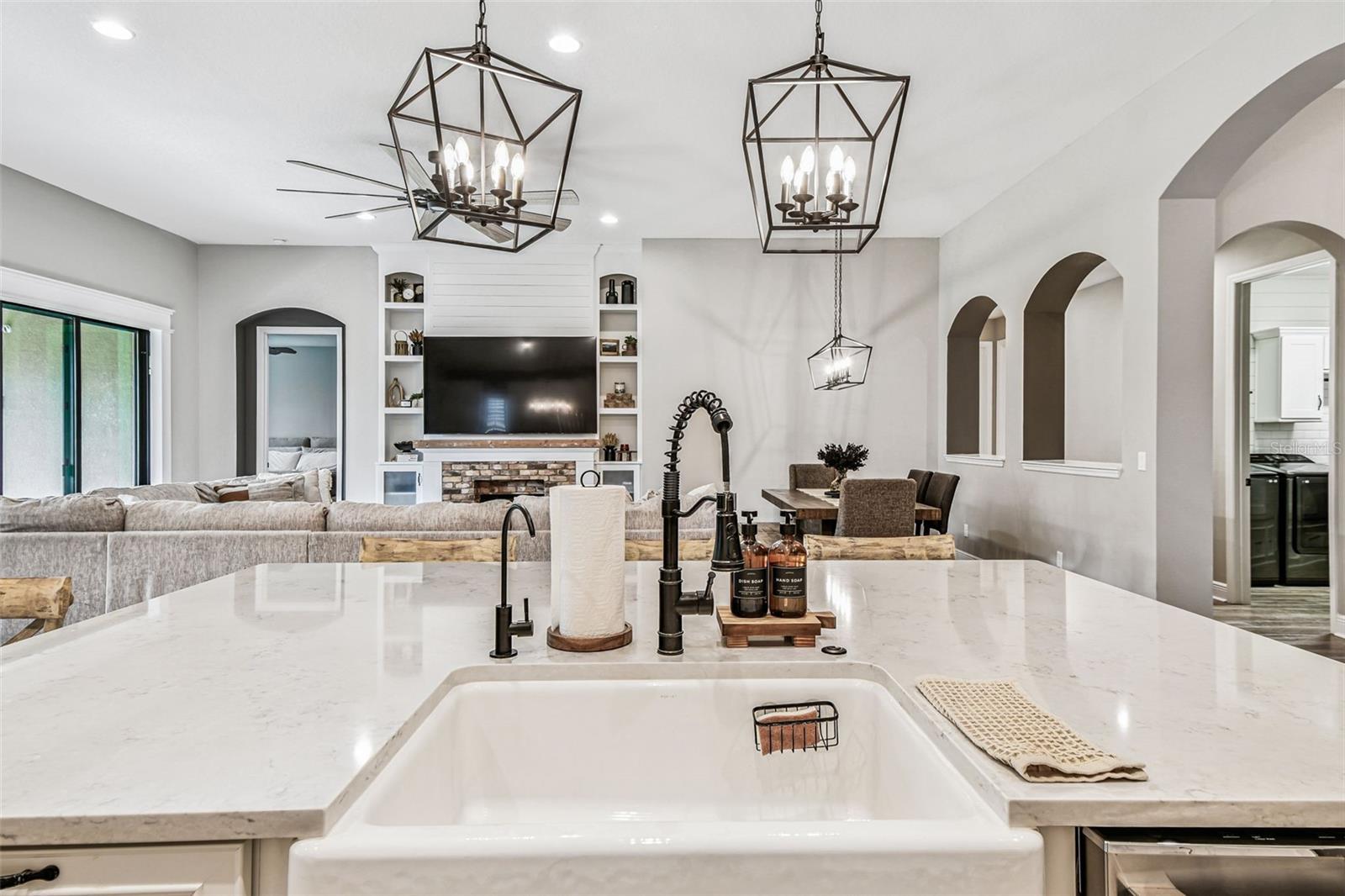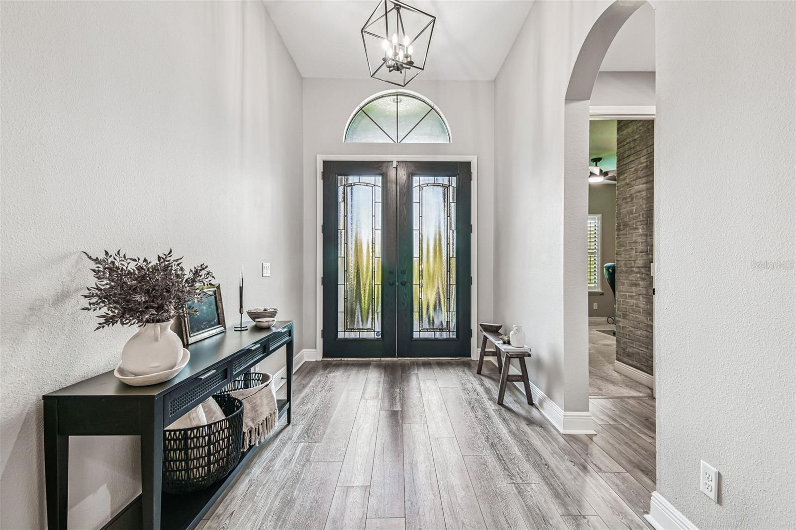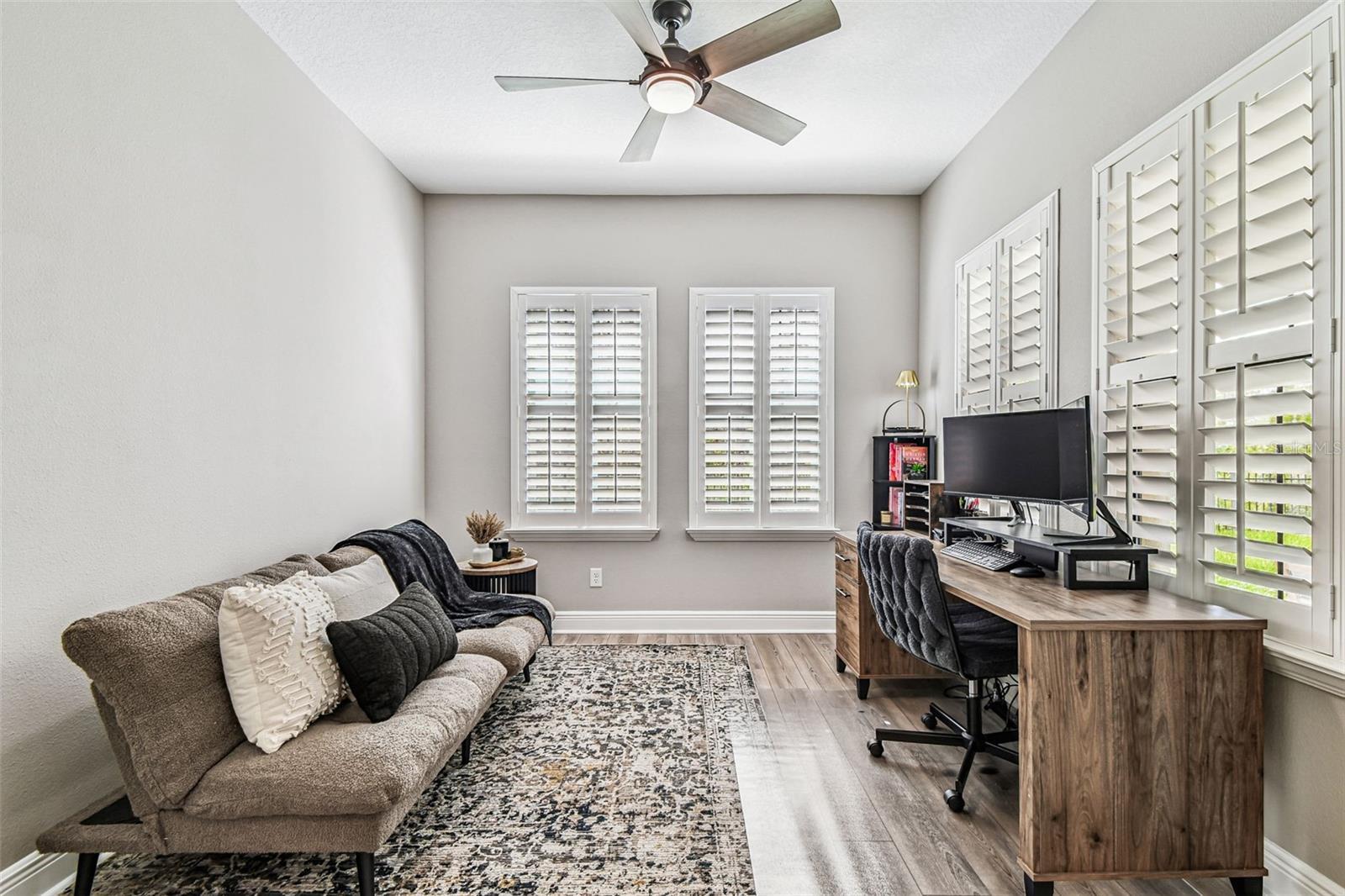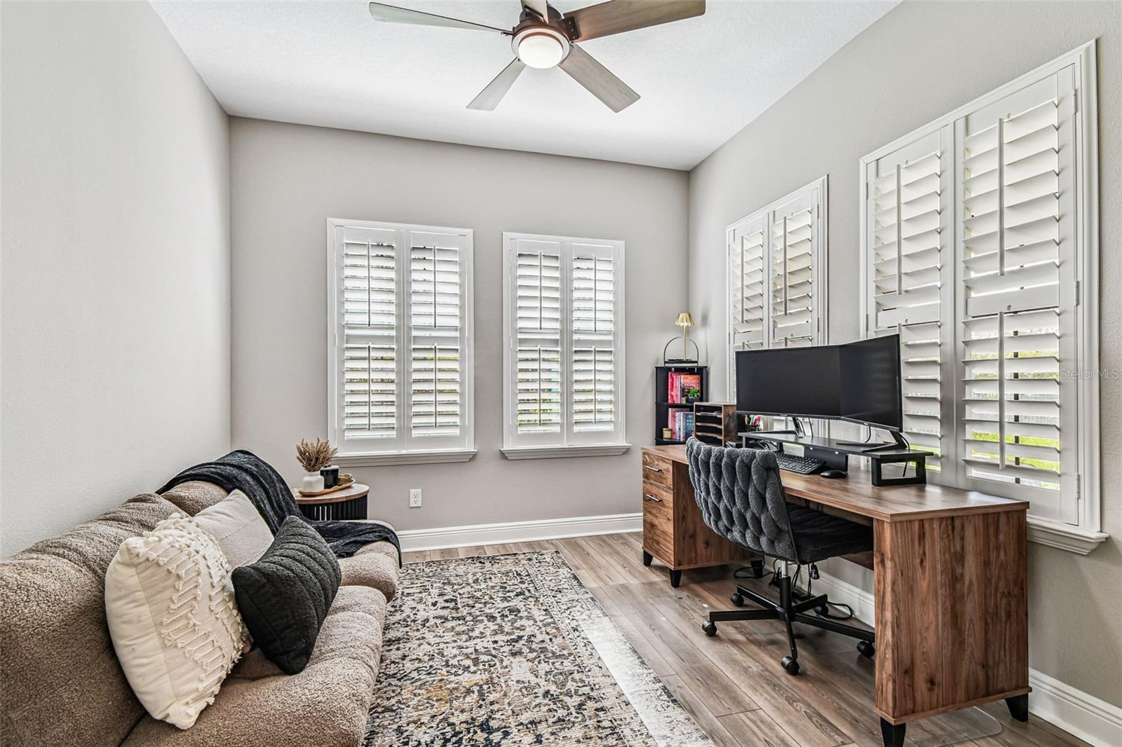Under contract-accepting backup offers. Price improvement, ready to sell! Step into luxury with this stunning Bayshore 1 floor plan—one of Homes by West Bay’s most sought-after designs. Nestled on a serene conservation lot, this beautifully upgraded home offers four spacious bedrooms, three full bathrooms, and a dedicated office space. From the moment you enter through the grand double foyer, you’ll be impressed by the soaring ceilings, elegant shutters, and impeccable custom touches throughout. At the heart of the home is the gourmet kitchen—a chef’s dream—featuring a farmhouse sink, built-in appliances, a five-burner gas cooktop, and a striking custom wood vent hood. White cabinetry, quartz countertops, a charming brick backsplash, and a reverse osmosis water system further elevate the space. The extended island not only enhances the kitchen’s aesthetics but also offers additional seating for casual dining. The expansive grand room is the centerpiece of this home, showcasing a stunning brick fireplace with built-in custom cabinetry. Paired with the adjacent dining area, this open-concept space is perfect for entertaining. The private office is filled with natural light and features elegant double doors—ideal for remote work or as a cozy secondary living area. The thoughtful three-way split floor plan offers privacy and flexibility. The luxurious primary suite boasts oversized his-and-hers walk-in closets and a spa-like en-suite bathroom complete with a soaking tub, walk-in shower, and dual quartz vanities. Two additional bedrooms at the front of the home share a stylish full bathroom and feature custom built-in raised beds, while the fourth bedroom enjoys its own private bath—perfect for guests. Practicality meets charm in the extended laundry room and drop zone, which includes a sink, storage cabinets, and floating shelves. Additional upgrades include a tankless gas water heater, reverse osmosis system, water softener, and newly installed solar panels—ideal for energy-conscious living. The solar generates more than the home uses monthly so you tend to see a buy back!