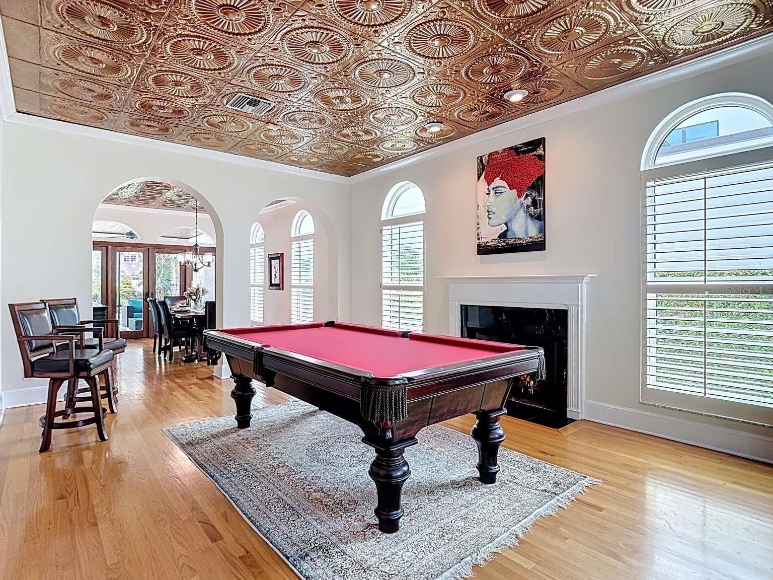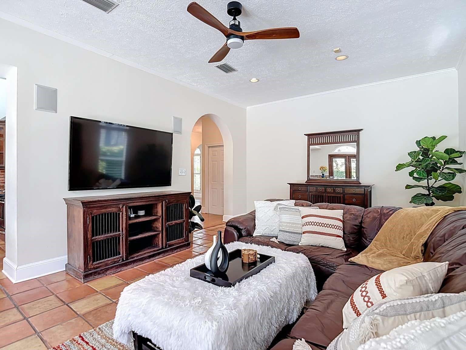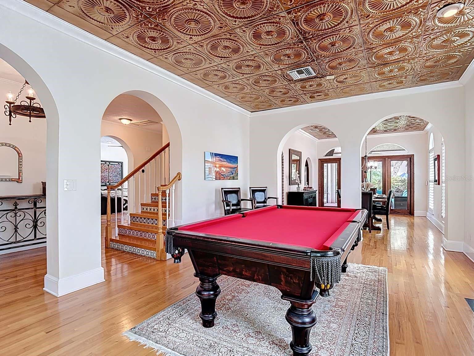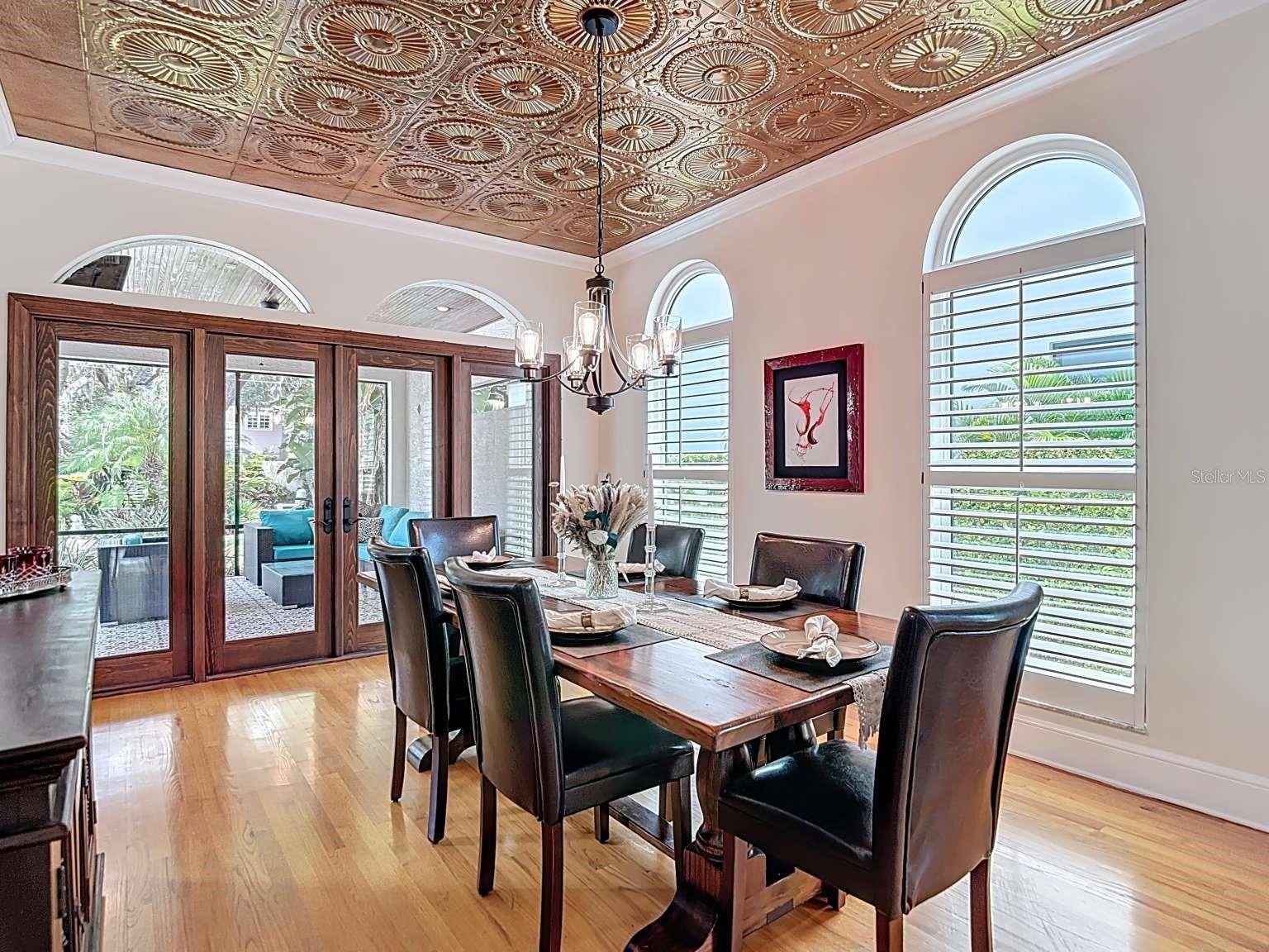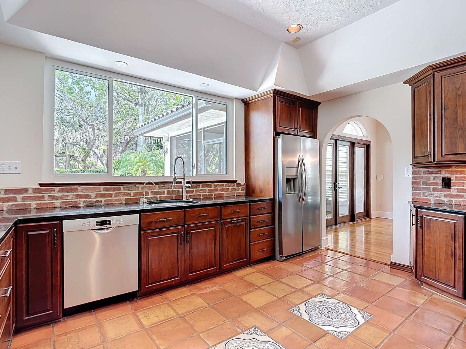 Nestled on one of the most beautiful streets in South Tampa in the highly sought after Beach Park neighborhood, this Mediterranean style architectural gem has 4 bedrooms, 3.5 baths, and a pool. This home sits on an uncharacteristically (for South Tampa) wide street, lined with double sidewalks, and is relatively quiet as it does not feed as a direct through street to the busy Westshore Blvd. The grand 46 inch wide entry door, imported and custom made from Honduran mahogany and decorated with forged iron accents creates a grand entrance that sets the tone for the elegance that awaits. The staircase leading to the second floor immediately catches the eye as it graces the foyer with exquisite imported Mexican Talavera tiles on the stair risers. The living room and dining room are adorned with beautiful tin ceilings, and the dining room also has a custom crafted brick arched and gated wine closet. The first floor is also lined with windows across the rear of the house offering an amazing view of a large deep backyard, concrete paver patio, a deep water pool (resurfaced in 2024), an exquisite lion head fountain, lush tropical landscaping, featuring a majestic grove of oak trees visible from the neighboring property and a rare, showstopping red silk-cotton tree (Bombax ceiba), typically found in botanical gardens, that transforms the space with its stunning pink blossoms during late summer and early fall. The screened lanai was added in 2013, allowing for an additional semi-outdoor area for relaxation, free from bugs, shaded, with a bead board wood ceiling, stunning ceramic tile flooring, with additional backyard views adding a truly distinctive space for relaxation and entertaining. Upstairs, the large master suite has a wonderful view of the backyard, plantation shutters (which also adorn most of the first-floor windows), two walk-in closets, and the bathroom has a whirlpool tub, and a frameless shower door. The master bedroom, as well as the other three bedrooms, all have custom closet systems. The flooring on the second floor boasts imported mahogany wide plank flooring in one of the bedrooms and a custom Brazilian cherry wood inlay embedded in the oak hardwood landing. This house is a unique find for a buyer who appreciates Mexican, Moorish, and Mediterranean architectural details. Situated in a desirable FEMA Zone X area, this home is outside the Special Flood Hazard Area, offering minimal flood risk and no lender-required flood insurance while keeping you close to all that South Tampa has to offer, including South Tampa’s premier school district—Mabry, Coleman, and Plant, and with easy access to Downtown Tampa, St Petersburg, Clearwater and the beaches. Tampa International airport is just minutes away.