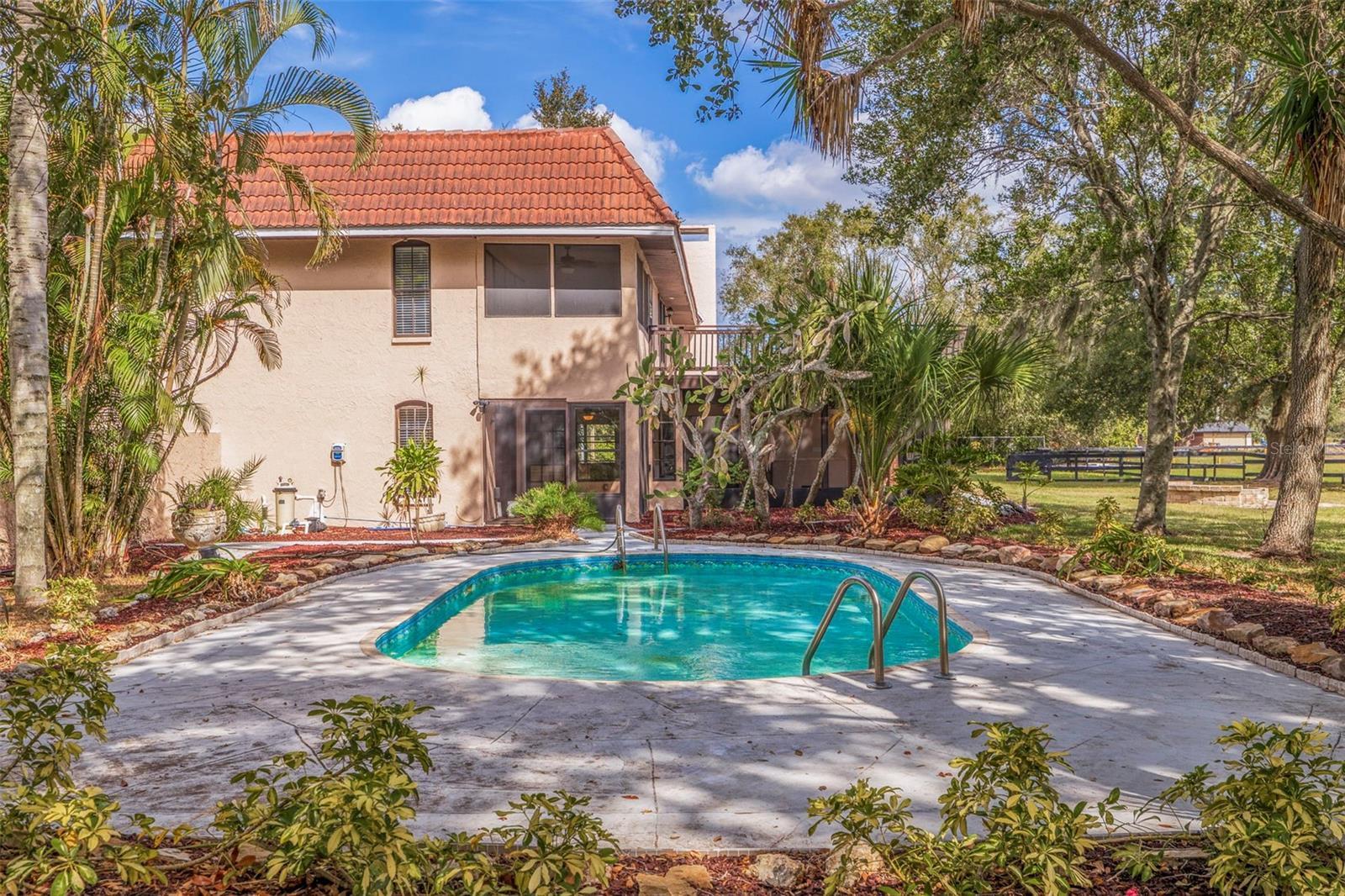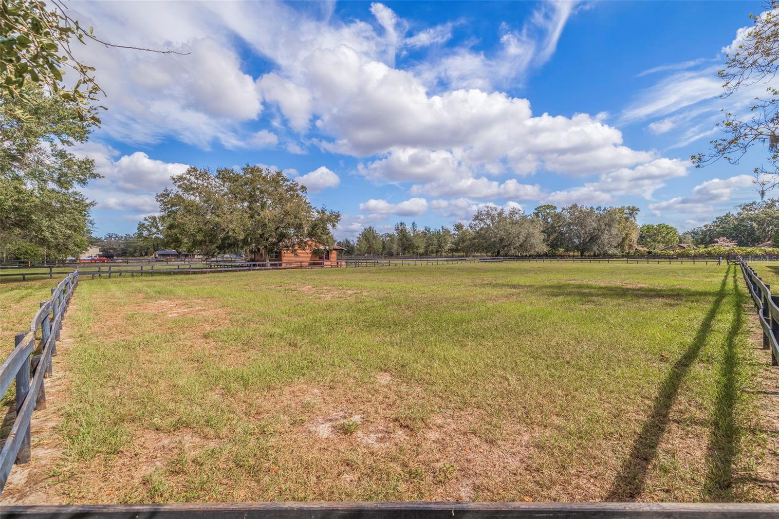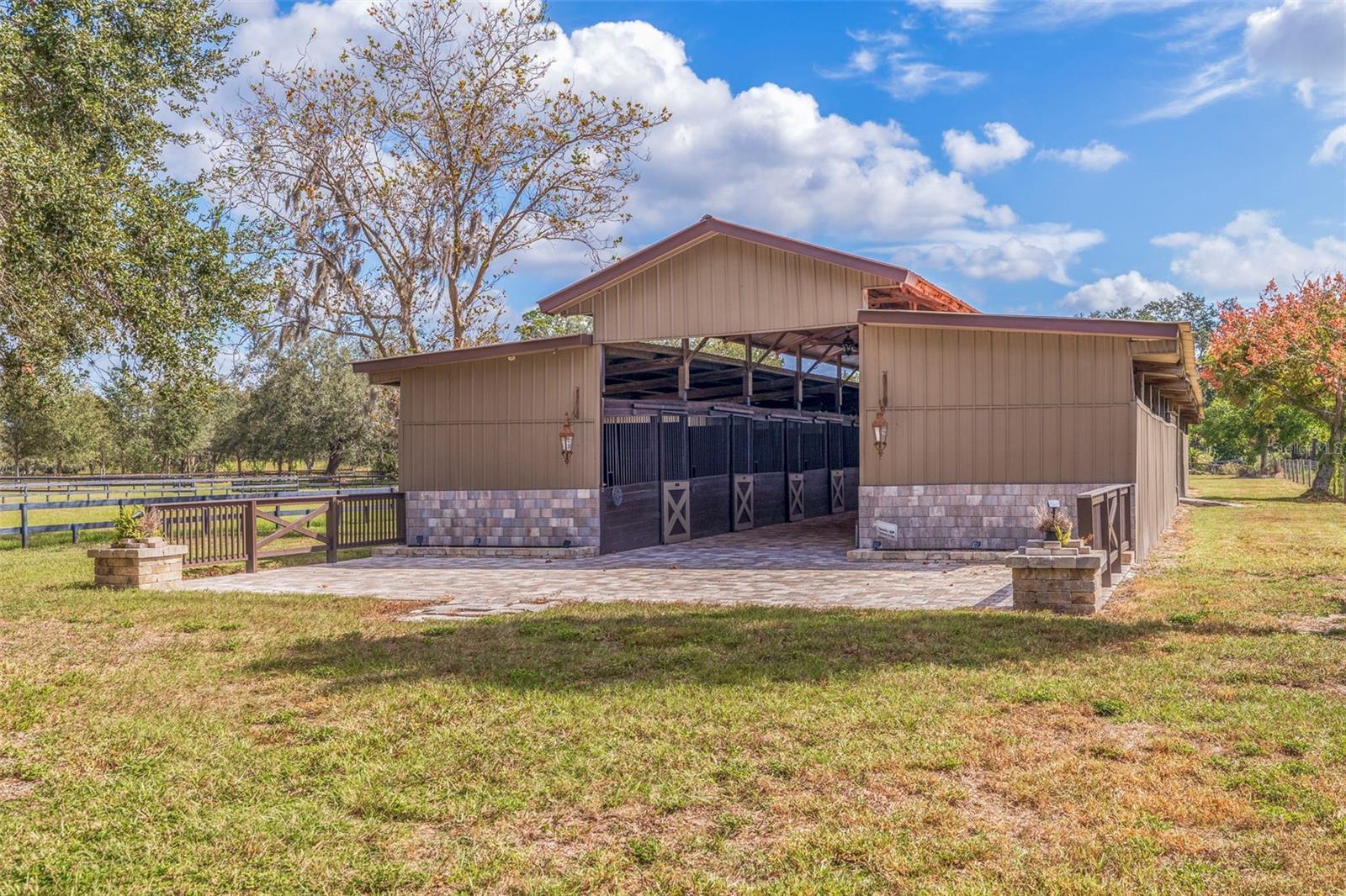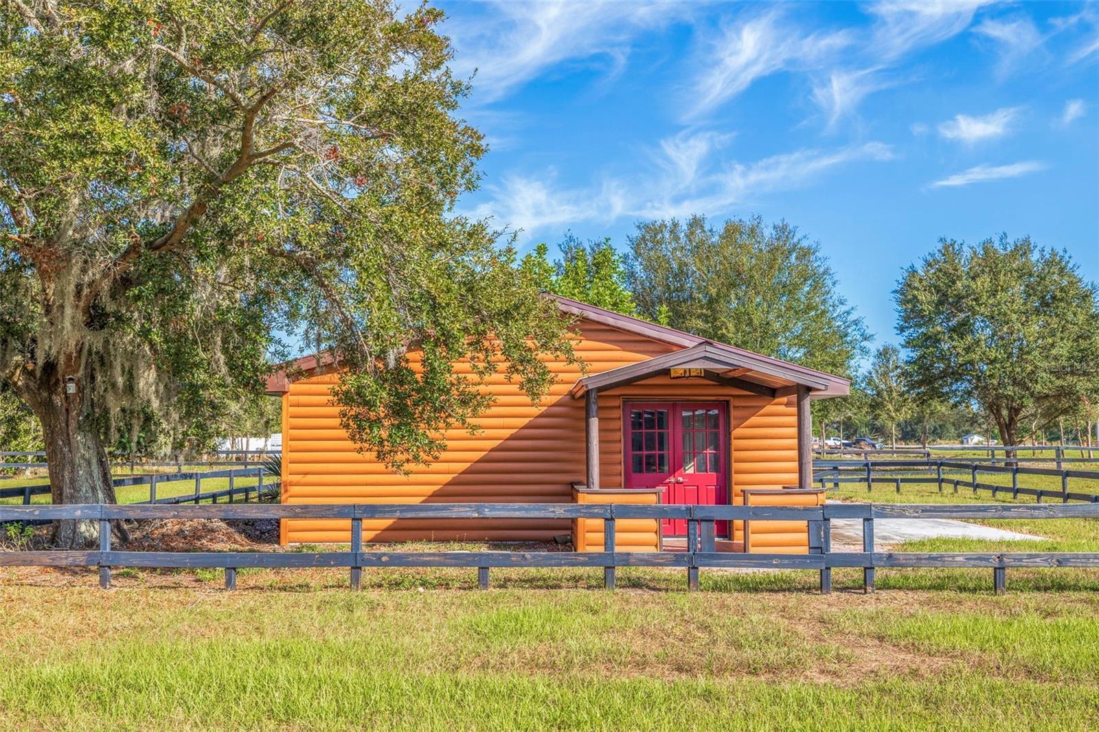 The Skyway Equestrian Center is on the market! This nearly 5 acre horse ranch is located in Palmetto, Florida, and is just waiting for your equestrian needs. The property is 4.9 Acres and is board fenced and cross fenced. The meandering paved driveway leads you around a pond with a footbridge to a 3,967 Sq. Ft. 2 story 5 bedroom, 3 bath, Mediterranean style home with barrel tile roof trin and flat roof and a 3 car attached garage. Home has a large eat-in kitchen and great room with a wood burning fireplace and an impressive entrance foyer. The kitchen has modern appliances, tile and island. Floor coverings are carpet and tile. upstairs are spacious bedrooms and an elevated deck spanning the width of the house. Out back has a big screened in porch overlooking the firepit, paddock, Vinyl clad log cabin guest house and barn. The cabin is 1 Bedroom, 1 bath and great room with modern kitchen. This cabin can be a guest quarters or residence for a farm manager. The crowning touch to this unique property is the 20 stall Horse Barn with tack room, 1/2 bath and water to the stalls. The barn has pavers for the common area floor and the stalls are full sized. The back of the barn leads to a fenced training circle. The location is a short drive to Interstate 275 and is equidistant to Tampa, St. Petersburg and Sarasota-Bradenton. Research indicates that a full service horse stall can rent in this area for $800-$1,000 per month. This is a real winner-You do the math. All sizes are approximate.