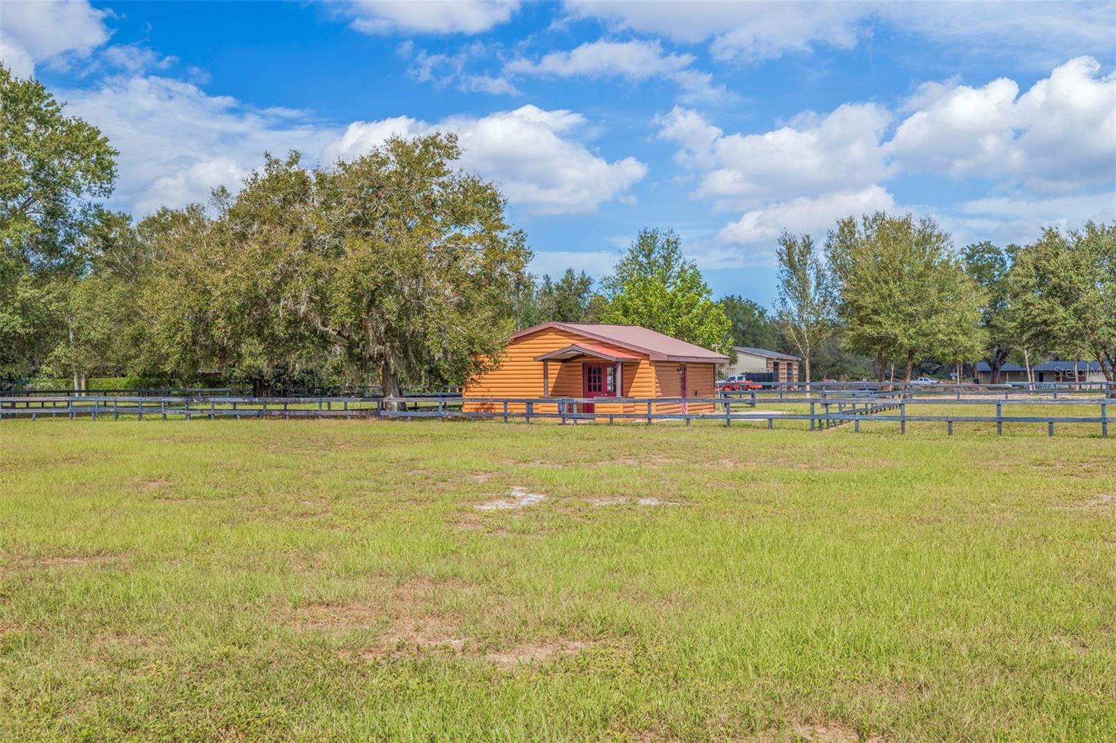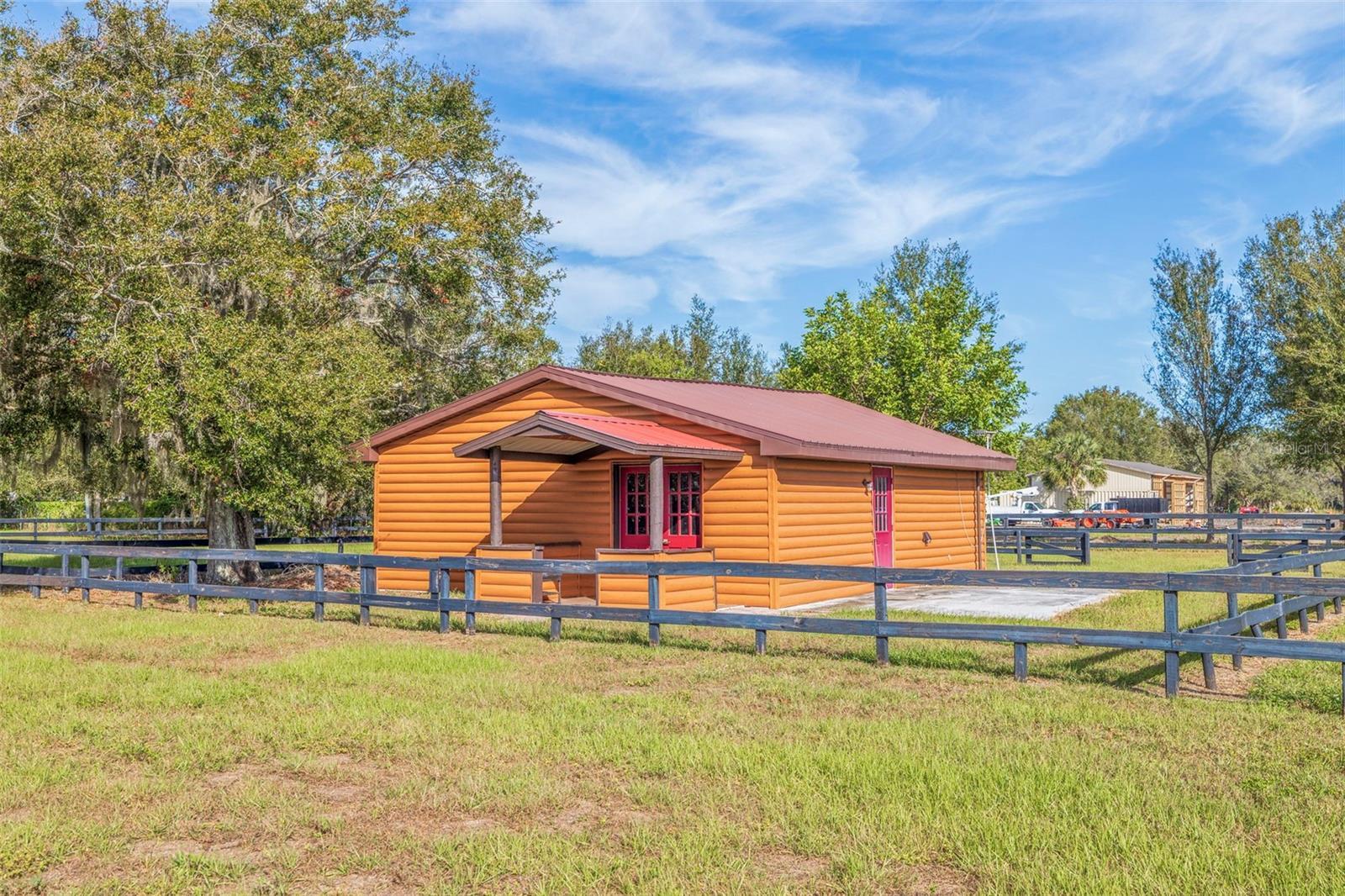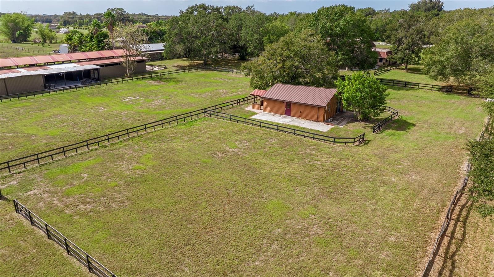 The Skyway Equestrian Center is on the market! This nearly 5 acre horse ranch is located in Palmetto, Florida, and is just waiting for your equestrian needs. The property is 4.9 Acres and is board fenced and cross fenced. The meandering paved driveway leads you around a pond with a footbridge to a 3,967 Sq. Ft. 2 story 5 bedroom, 3 bath, Mediterranean style home with barrel tile roof trin and flat roof and a 3 car attached garage. Home has a large eat-in kitchen and great room with a wood burning fireplace and an impressive entrance foyer. The kitchen has modern appliances, tile and island. Floor coverings are carpet and tile. upstairs are spacious bedrooms and an elevated deck spanning the width of the house. Out back has a big screened in porch overlooking the firepit, paddock, Vinyl clad log cabin guest house and barn. The cabin is 1 Bedroom, 1 bath and great room with modern kitchen. This cabin can be a guest quarters or residence for a farm manager. The crowning touch to this unique property is the 20 stall Horse Barn with tack room, 1/2 bath and water to the stalls. The barn has pavers for the common area floor and the stalls are full sized. The back of the barn leads to a fenced training circle. The location is a short drive to Interstate 275 and is equidistant to Tampa, St. Petersburg and Sarasota-Bradenton. Research indicates that a full service horse stall can rent in this area for $800-$1,000 per month. This is a real winner-You do the math. All sizes are approximate.