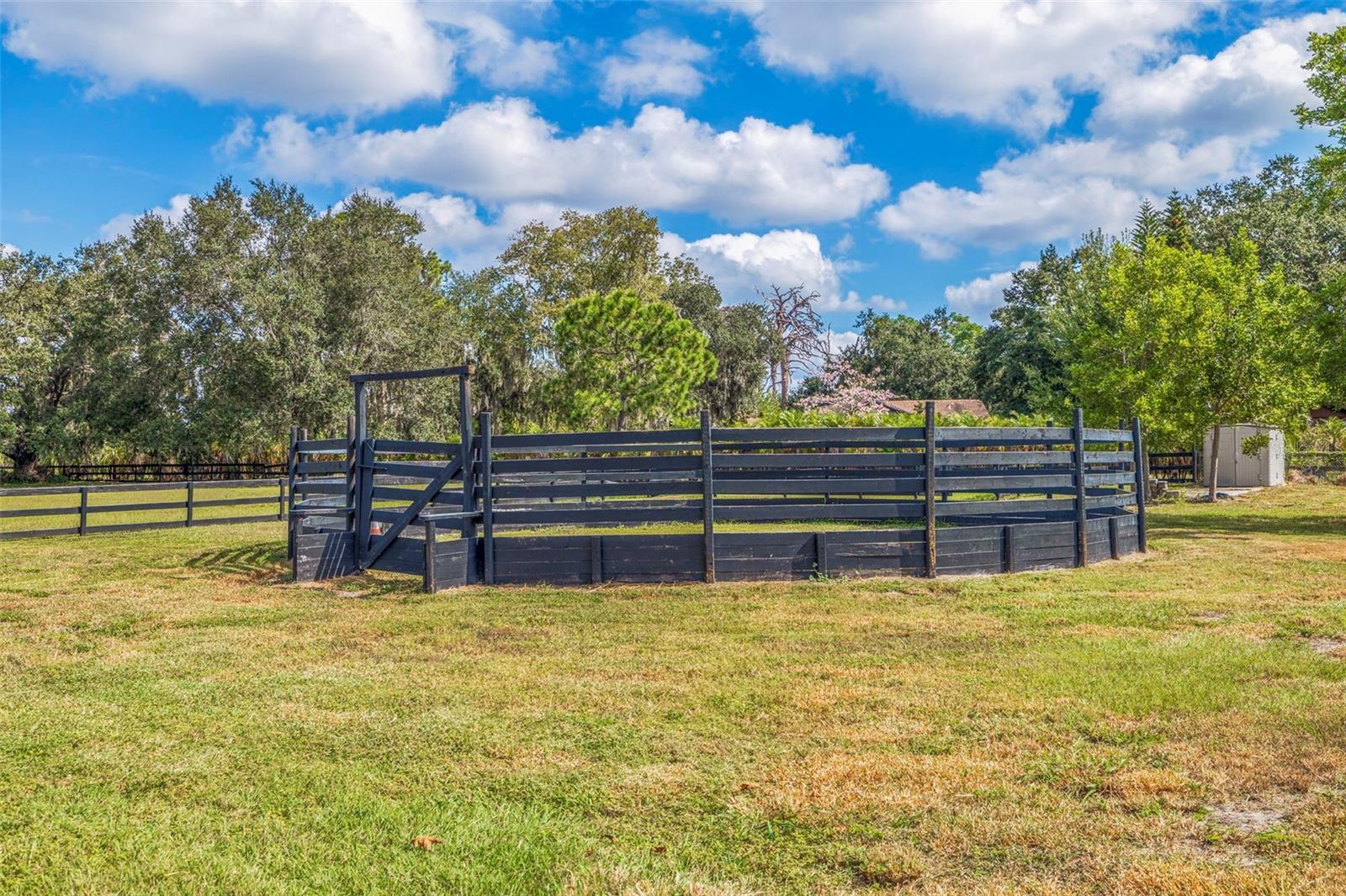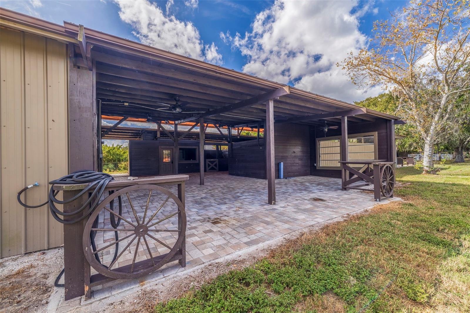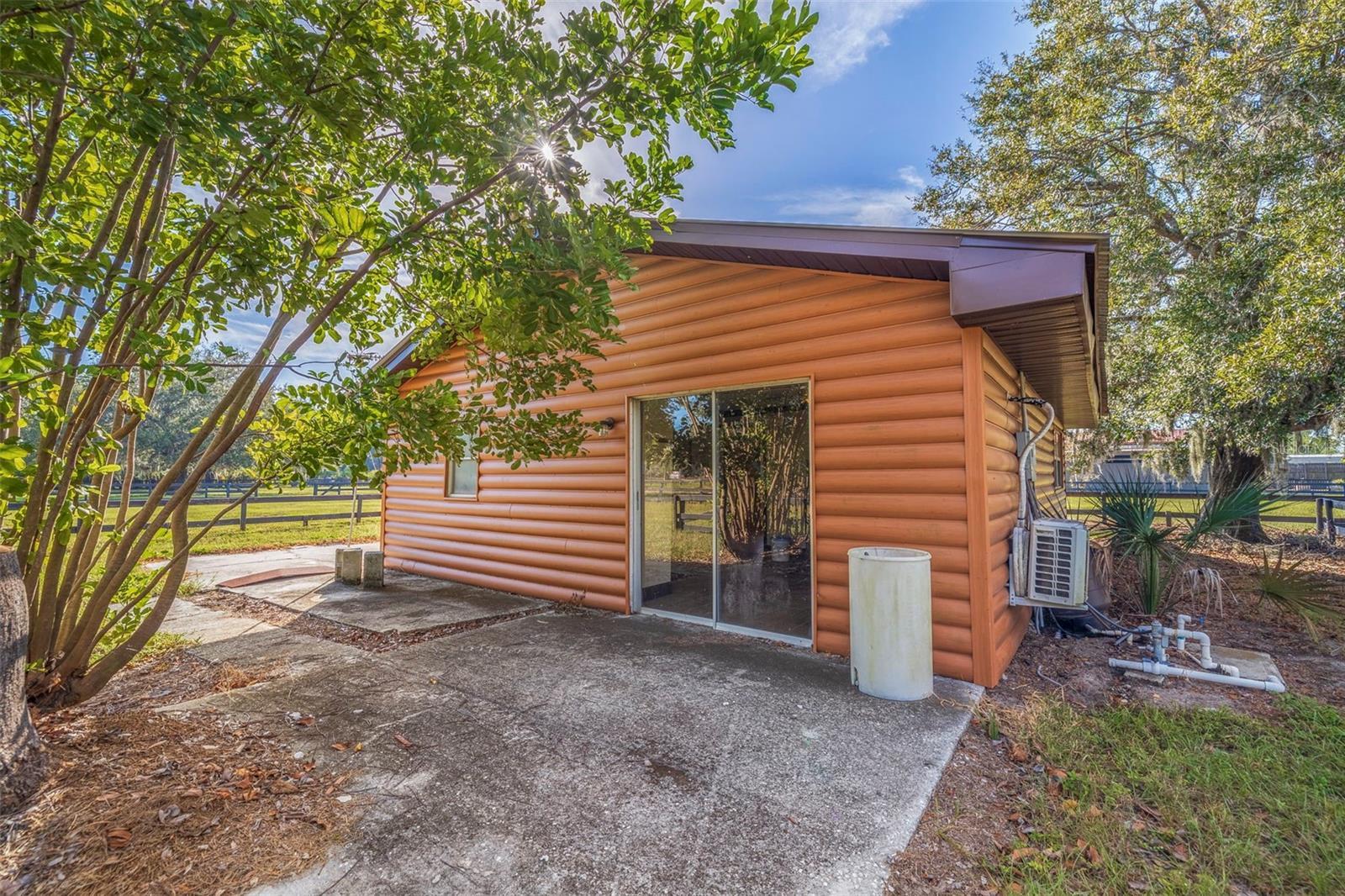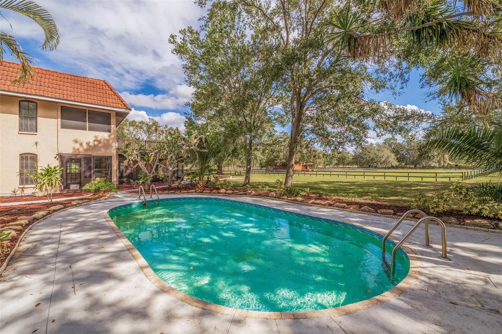 The Skyway Equestrian Center is on the market! This nearly 5 acre horse ranch is located in Palmetto, Florida, and is just waiting for your equestrian needs. The property is 4.9 Acres and is board fenced and cross fenced. The meandering paved driveway leads you around a pond with a footbridge to a 3,967 Sq. Ft. 2 story 5 bedroom, 3 bath, Mediterranean style home with barrel tile roof trin and flat roof and a 3 car attached garage. Home has a large eat-in kitchen and great room with a wood burning fireplace and an impressive entrance foyer. The kitchen has modern appliances, tile and island. Floor coverings are carpet and tile. upstairs are spacious bedrooms and an elevated deck spanning the width of the house. Out back has a big screened in porch overlooking the firepit, paddock, Vinyl clad log cabin guest house and barn. The cabin is 1 Bedroom, 1 bath and great room with modern kitchen. This cabin can be a guest quarters or residence for a farm manager. The crowning touch to this unique property is the 20 stall Horse Barn with tack room, 1/2 bath and water to the stalls. The barn has pavers for the common area floor and the stalls are full sized. The back of the barn leads to a fenced training circle. The location is a short drive to Interstate 275 and is equidistant to Tampa, St. Petersburg and Sarasota-Bradenton. Research indicates that a full service horse stall can rent in this area for $800-$1,000 per month. This is a real winner-You do the math. All sizes are approximate.