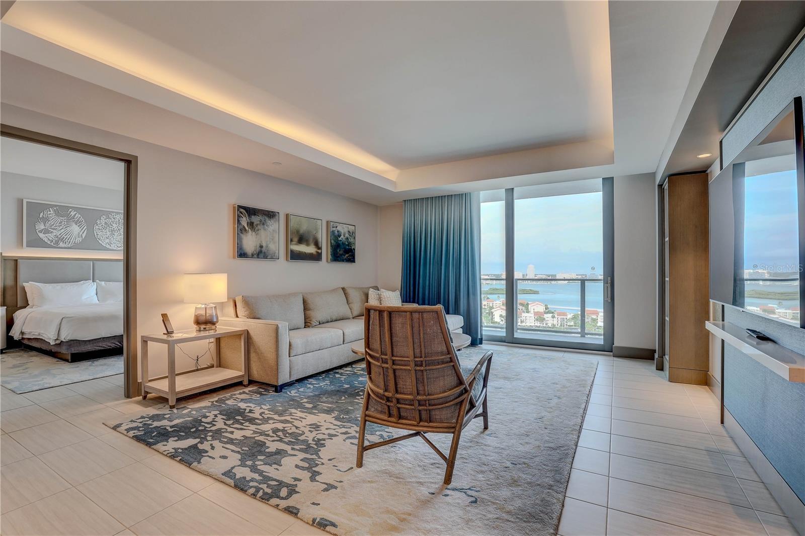 Top-Floor Luxury at JW Marriott Clearwater Beach with Investment Income! Welcome to your private retreat high above Clearwater Beach in the JW Marriott Residences. This fully furnished 1-bedroom, 1-bath luxury condo sits on the top floor of the resort, offering breathtaking views paired with world-class amenities at your doorstep. Step inside to a thoughtfully designed residence that blends modern sophistication with relaxed coastal charm. The open living area is bright and inviting, featuring elegant furnishings and a seamless connection to your private balcony, where endless skies and waterfront panoramas steal the show. The bedroom suite is a sanctuary with refined finishes, while the spa-inspired bathroom is designed for total relaxation. The residence features a gourmet compact kitchen with premium appliances, plus a full-size washer and dryer. Elevated touches such as recessed lighting, stylish hardware, and curated décor create a space that feels both luxurious and comfortable. Ownership at JW Marriott means much more than a beautiful condo, it’s a complete lifestyle. Residents enjoy valet parking, a spectacular rooftop pool with sweeping ocean views, a state-of-the-art fitness center with sauna and steam room, multiple dining options including a waterfront restaurant, and private beach access with towel and food service. Professional concierge, housekeeping, and 24-hour staff ensure that every detail is handled with Marriott’s signature service. Currently part of the Marriott Rental Program, this residence operates seamlessly as a luxury suite and true turn-key investment. Offering effortless ownership, strong rental income, and exclusive owner usage rights, it combines the prestige of JW Marriott with the rare opportunity to own on one of Florida’s most celebrated coastlines. Don’t miss your chance to claim a top-floor residence in Clearwater Beach’s premier luxury destination. Schedule your private showing today and experience JW Marriott living at its finest.