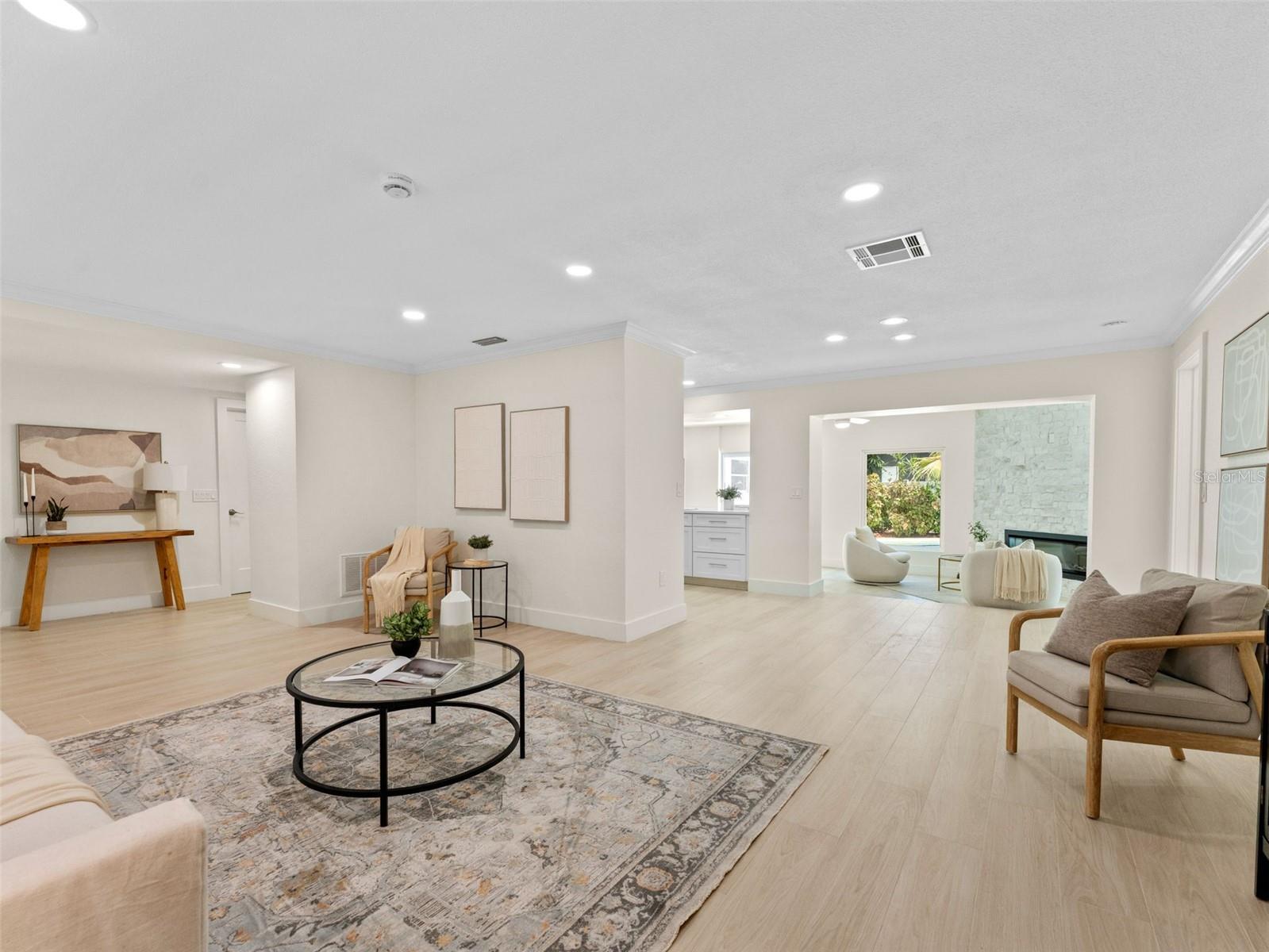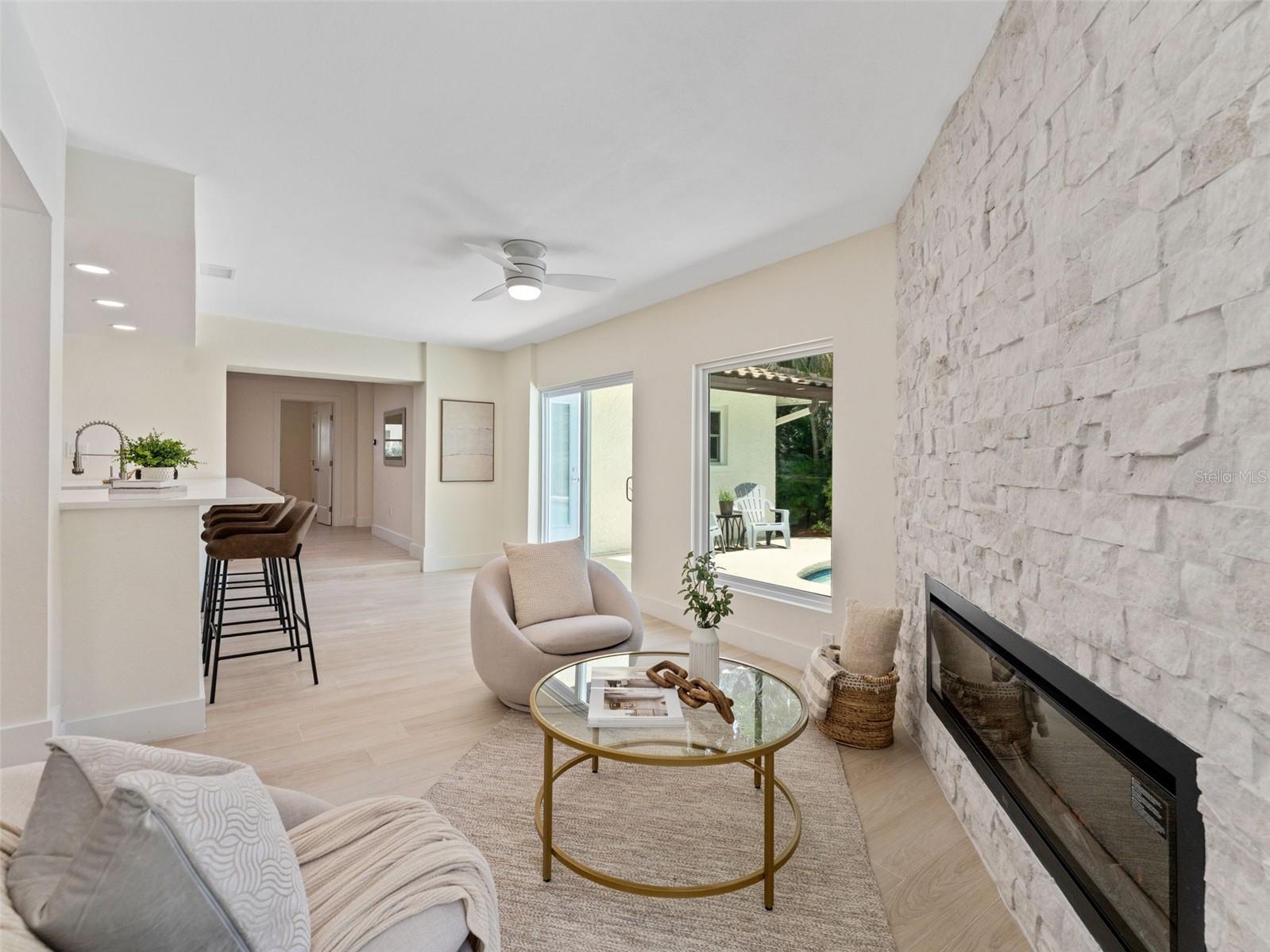 Welcome to your slice of paradise in one of St. Pete’s most iconic neighborhoods – the Historic Pink Streets. This beautifully reimagined Arthur Rutenberg-designed block home offers 4 bedrooms, 3 bathrooms, and 2,234 sq ft of stylish, functional living space on an oversized lot and a half. With a highly desirable split floor plan and a backyard designed for entertaining, this home seamlessly blends comfort, elegance, and Florida charm. Step inside and be amazed by the completely updated interior (finished July 2025) . Be the first to cook in the stunning, designer kitchen, featuring brand-new cabinetry, premium stone countertops, and stainless steel appliances. The spa-inspired bathrooms are outfitted with beautiful tile, new vanities, updated lighting, and luxurious finishes throughout. You'll love the new light tile flooring, fresh interior paint, and the cozy ambiance of the newly installed fireplace. Impact-rated doors (2025) and windows provide added peace of mind, while the brand-new HVAC system (installed July 2025) ensures comfort year-round. The primary suite offers stunning views and private access to the oversized pool through new impact-rated sliders (2025), a walk-in closet, and a luxurious en-suite bathroom, creating a true retreat within your home. Outside, enjoy a massive Trex deck, a sparkling pool (new pool pump Oct 2025), and ample yard space--perfect for BBQs, sunset swims, or relaxing evenings under the stars. The fenced side yard offers additional space for pets, play, or future possibilities. Don't forget to visit the 15-acre waterfront park unique to the Pink Streets neighborhood. This home is ideally located just minutes from downtown St. Pete, the Gulf beaches, and the area's best dining and entertainment options. Don’t miss your chance to own a completely updated, move-in-ready home in one of St. Petersburg’s most cherished communities.