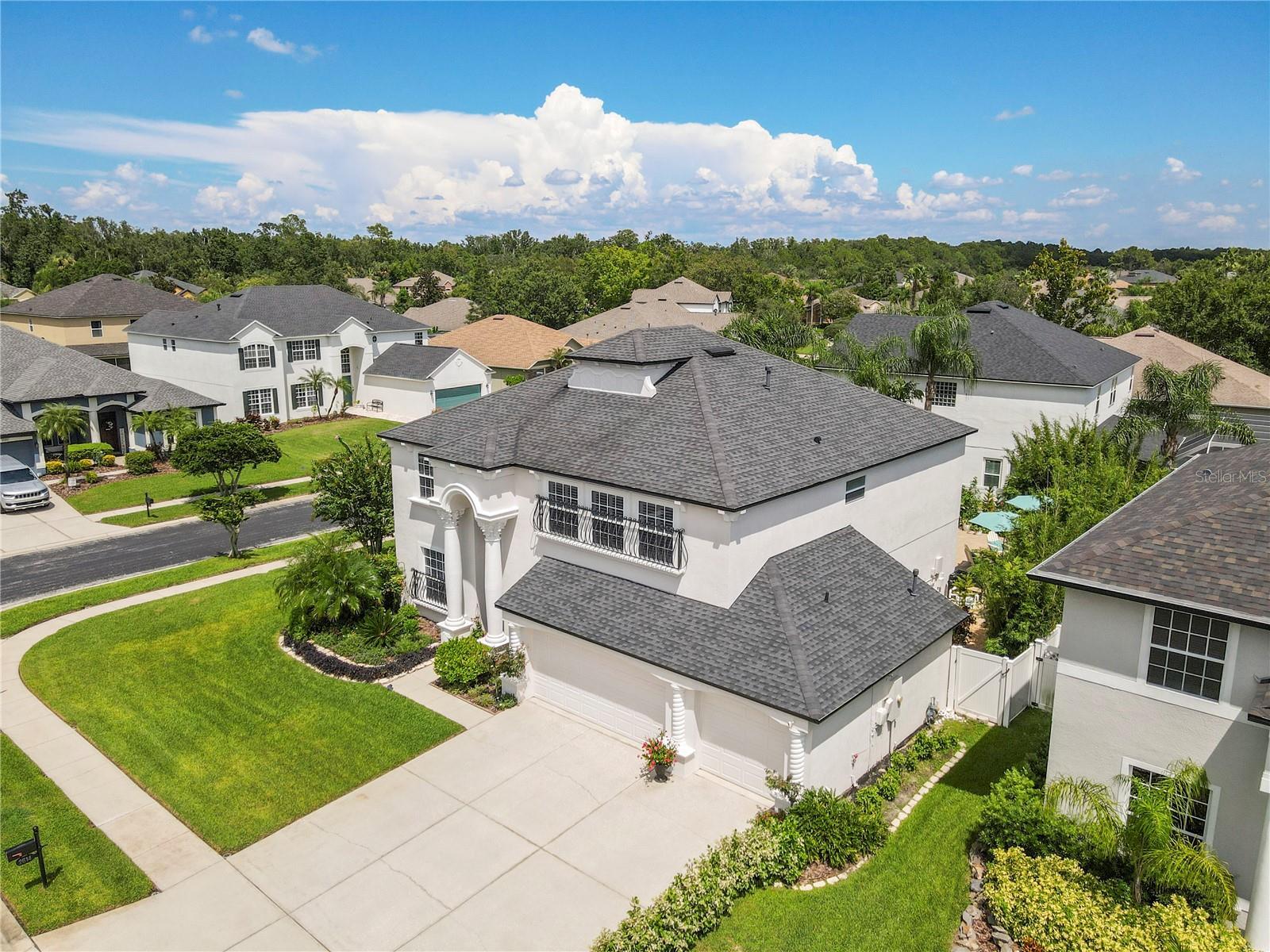 Under contract-accepting backup offers. Welcome to 2416 Sylvan Ramble Court in the gated Brookforest neighborhood of Seven Oaks, one of Wesley Chapel’s most desirable communities. This Mediterranean-style residence offers 3,372 square feet with 5 bedrooms, 3.5 bathrooms, and a flexible bonus room designed for work, play, or guests. The first floor features a formal living and dining room with bamboo flooring, easy care tile in the main areas, and a beautifully updated kitchen with quartz countertops, a farmhouse sink, and a breakfast nook that opens to the family room. The first floor primary suite provides comfort and privacy, while upstairs you will find four additional bedrooms and two full bathrooms, including one bedroom with a private en suite bath. Step outside to a fenced backyard oasis with lush landscaping, a shimmering pool, and a peaceful waterfall that creates a private retreat for everyday relaxation and effortless entertaining. Seven Oaks delivers resort-style amenities with a clubhouse that includes a theater, fitness center, and cafe, along with multiple pools with a water slide, tennis courts, playgrounds, and year-round community events. The location is ideal, placing you just minutes from The Shoppes at Wiregrass, Tampa Premium Outlets, Krates at the Grove, BayCare Hospital, AdventHealth Hospital, Sam’s Club, and a wide selection of shopping, dining, doctors, and everyday conveniences. Families will also appreciate proximity to Seven Oaks Elementary School, a highly rated local school. Notable updates include a new pool pump in 2023, roof in 2020, HVAC system in 2018, exterior paint in 2022, and interior paint in 2018.