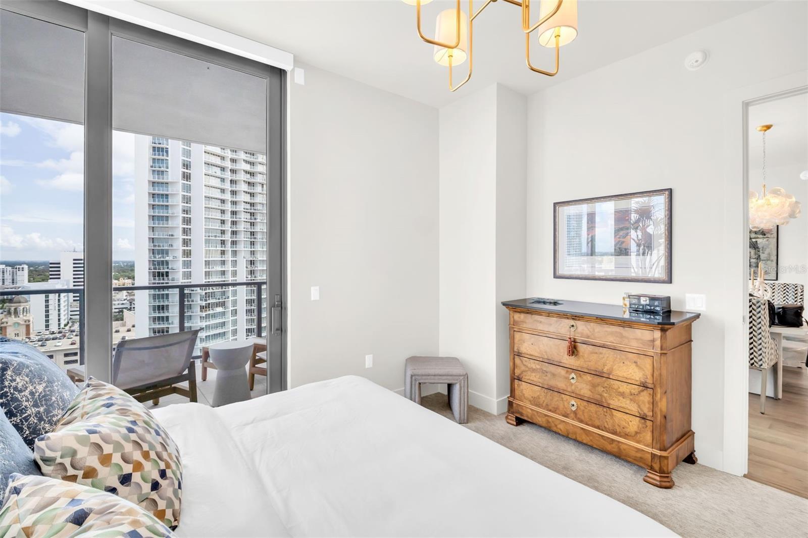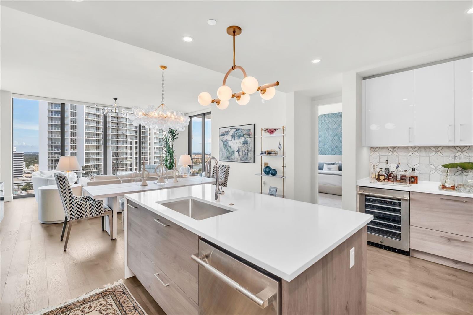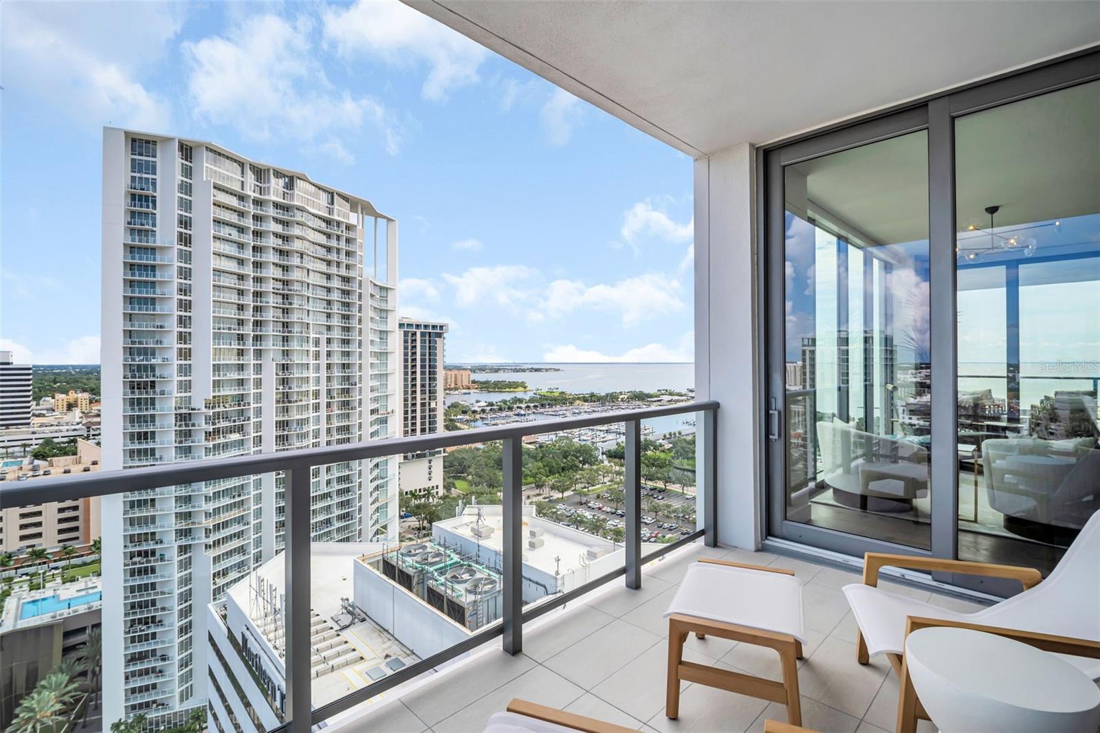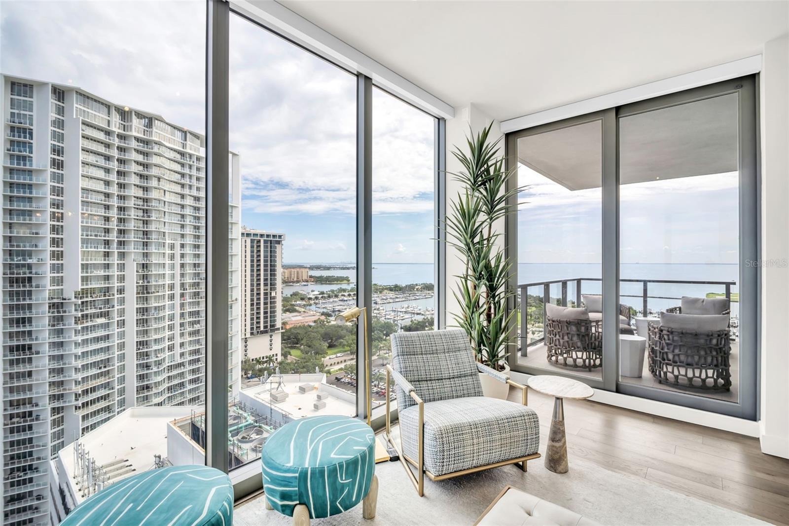 Experience the epitome of elevated city living in this stunning 2-bedroom plus den, 3-bath residence at Saltaire, offering 2,036 square feet of thoughtfully designed interior space. Every detail has been curated with designer touches and high-end upgrades, from hardwood floors throughout the main living areas to marble flooring in the hall bath and laundry. The bedrooms feature plush upgraded carpet, custom built-in closets, and power window treatments with hardwired blinds on every window. The gourmet kitchen is a chef’s dream with an induction cooktop, wine fridge, marble backsplash, pull-out pantry drawers, and designer lighting that enhances every space. Bathrooms showcase custom mirrors, drawers, and wall coverings for an added touch of sophistication. A rare convenience, the unit’s private storage closet is located just outside the front door, right beside the A/C closet. Adding to its allure, this residence boasts not one but TWO private balconies—ideal for enjoying morning coffee, evening cocktails, or simply taking in the energy of downtown St. Pete. Saltaire itself is a modern architectural masterpiece with sleek lines and expansive glass that floods each home with natural light. Residents enjoy world-class amenities, including a resort-style pool, state-of-the-art fitness center, stylish club rooms, a pet-friendly dog park, and an expansive 7th-floor terrace with panoramic views of the bay and downtown skyline. Perfectly situated in the heart of downtown, you’re just steps from award-winning dining, cultural attractions, waterfront parks, and vibrant city life. This impeccable Saltaire home offers not only luxurious finishes but also the unmatched lifestyle of one of St. Petersburg’s most prestigious addresses.