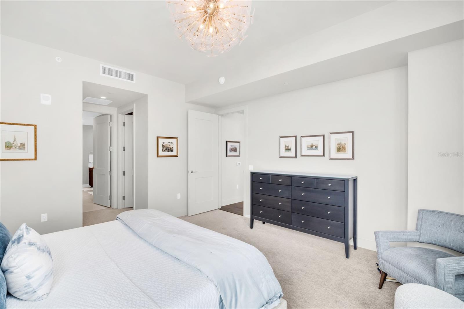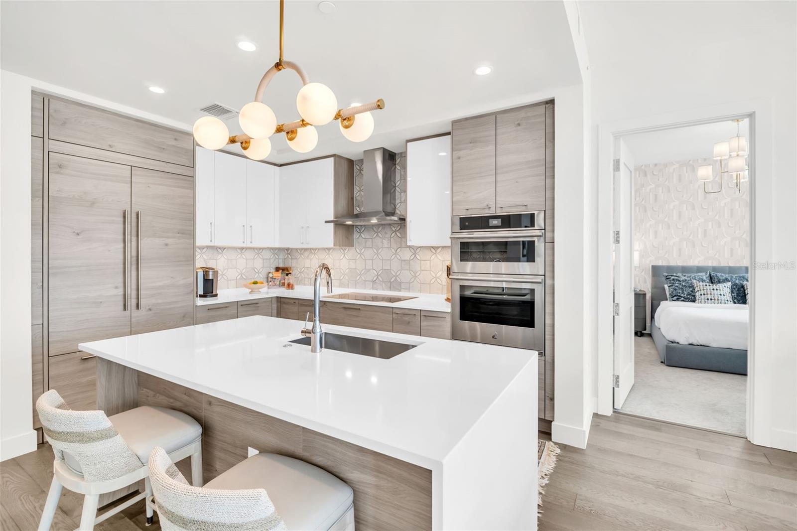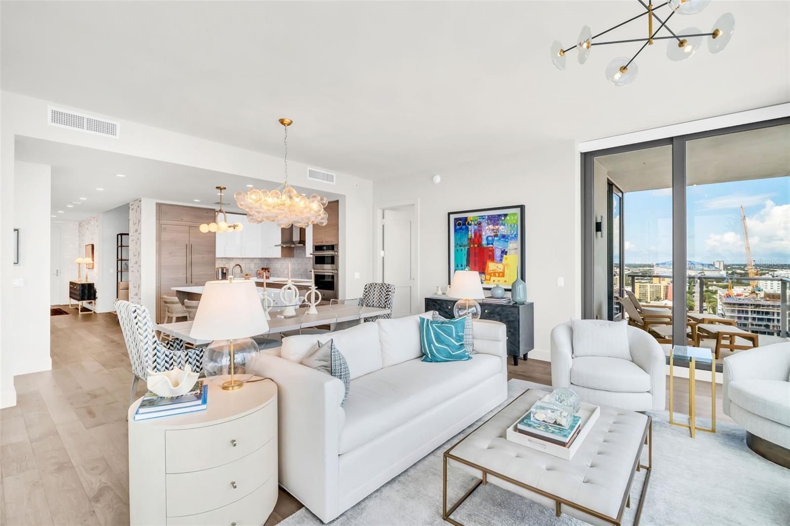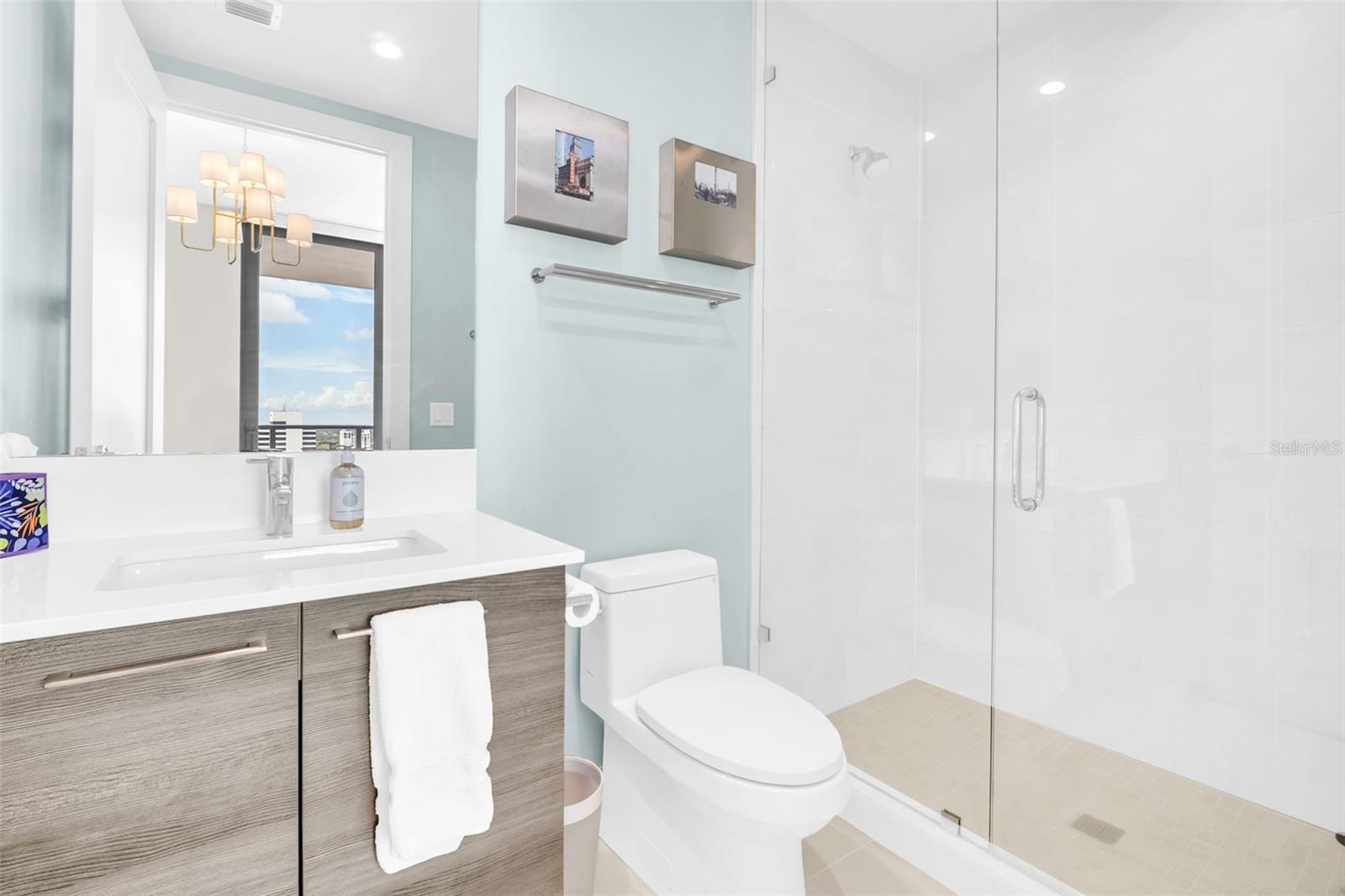 Experience the epitome of elevated city living in this stunning 2-bedroom plus den, 3-bath residence at Saltaire, offering 2,036 square feet of thoughtfully designed interior space. Every detail has been curated with designer touches and high-end upgrades, from hardwood floors throughout the main living areas to marble flooring in the hall bath and laundry. The bedrooms feature plush upgraded carpet, custom built-in closets, and power window treatments with hardwired blinds on every window. The gourmet kitchen is a chef’s dream with an induction cooktop, wine fridge, marble backsplash, pull-out pantry drawers, and designer lighting that enhances every space. Bathrooms showcase custom mirrors, drawers, and wall coverings for an added touch of sophistication. A rare convenience, the unit’s private storage closet is located just outside the front door, right beside the A/C closet. Adding to its allure, this residence boasts not one but TWO private balconies—ideal for enjoying morning coffee, evening cocktails, or simply taking in the energy of downtown St. Pete. Saltaire itself is a modern architectural masterpiece with sleek lines and expansive glass that floods each home with natural light. Residents enjoy world-class amenities, including a resort-style pool, state-of-the-art fitness center, stylish club rooms, a pet-friendly dog park, and an expansive 7th-floor terrace with panoramic views of the bay and downtown skyline. Perfectly situated in the heart of downtown, you’re just steps from award-winning dining, cultural attractions, waterfront parks, and vibrant city life. This impeccable Saltaire home offers not only luxurious finishes but also the unmatched lifestyle of one of St. Petersburg’s most prestigious addresses.