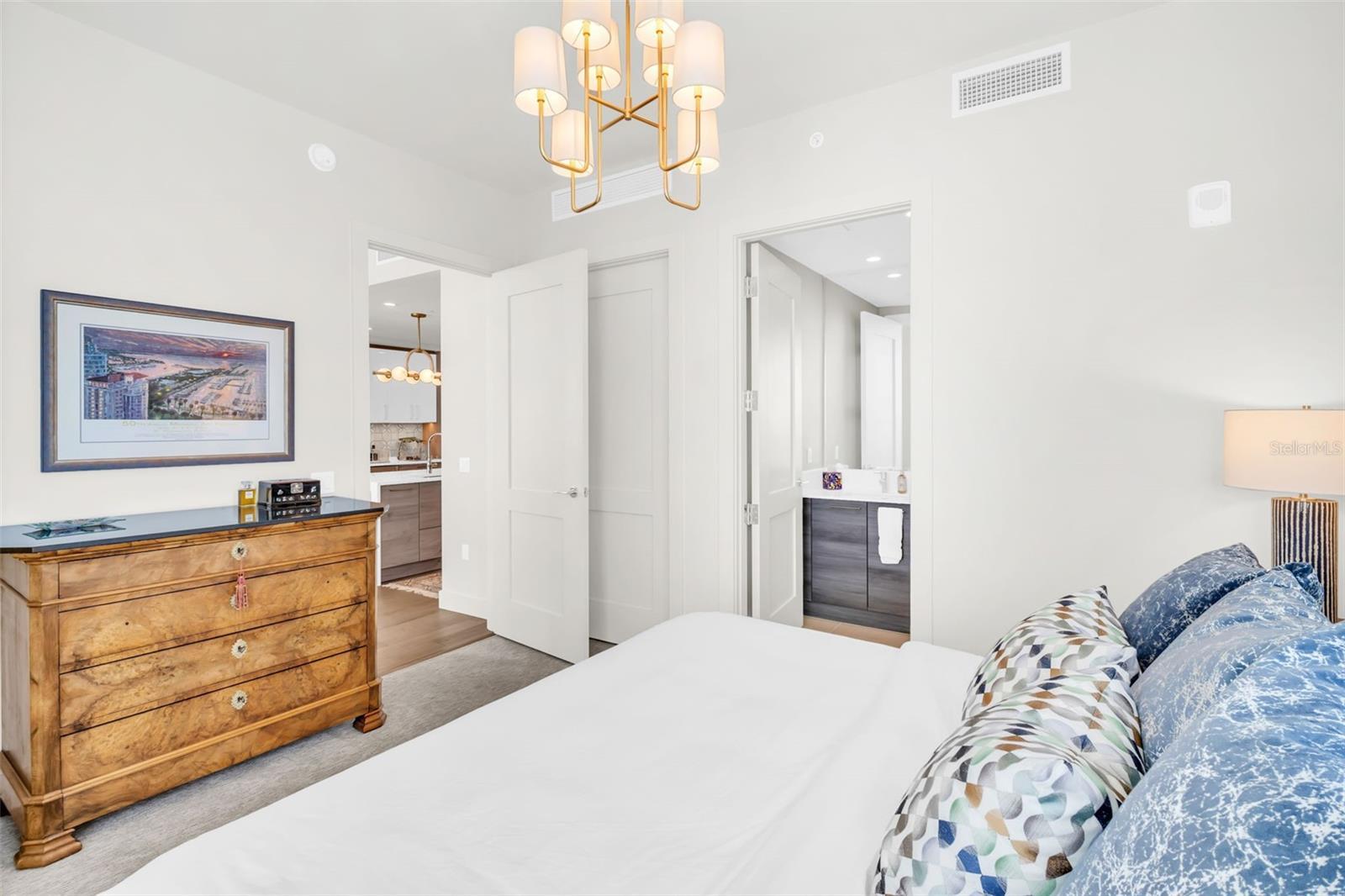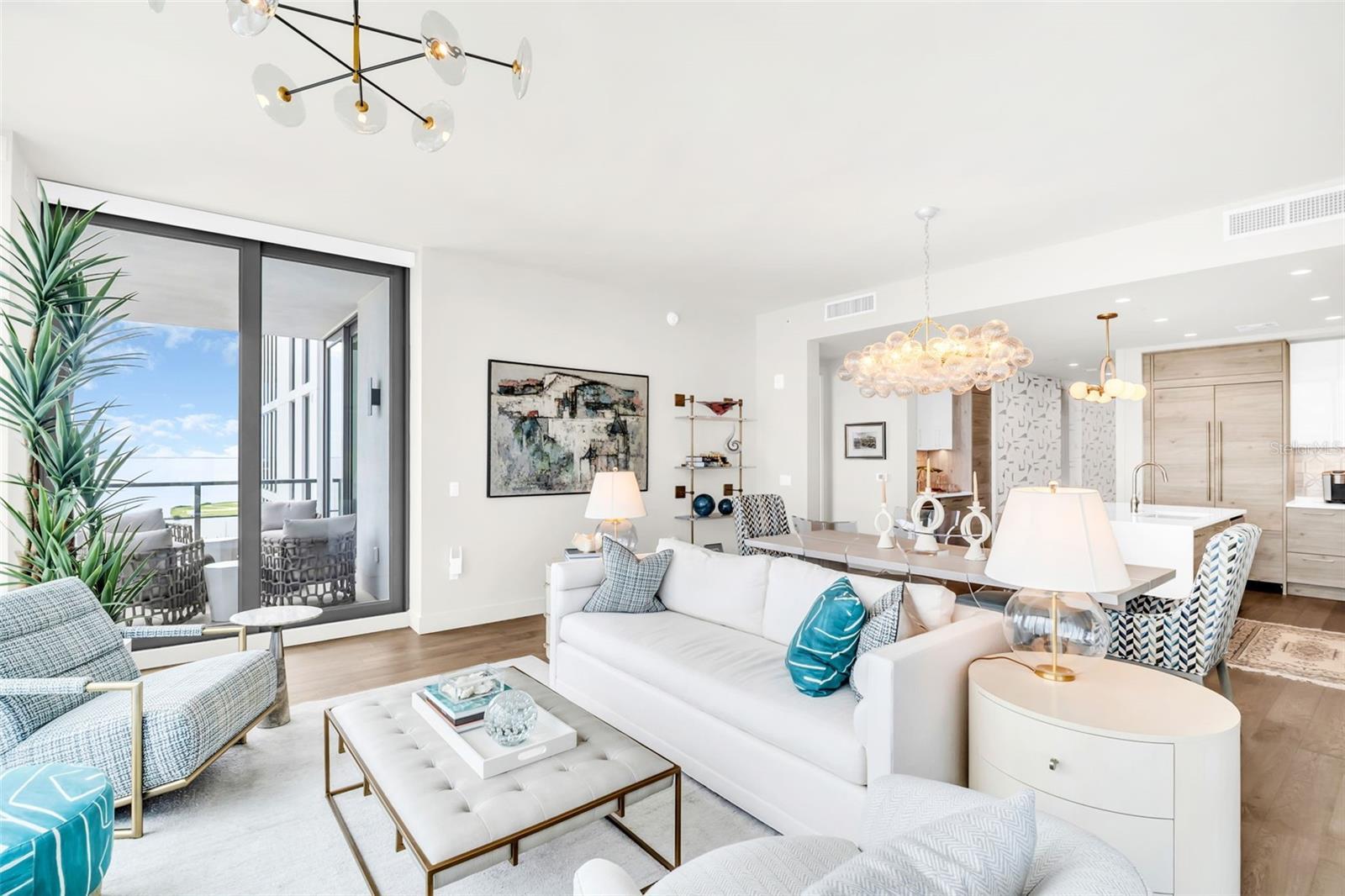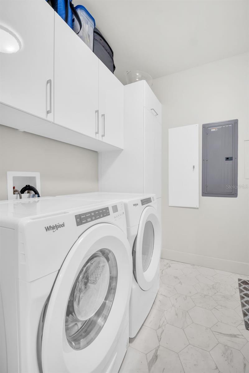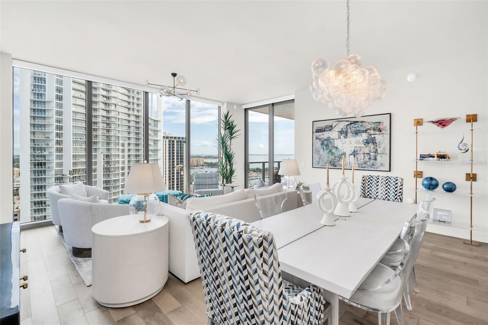 Experience the epitome of elevated city living in this stunning 2-bedroom plus den, 3-bath residence at Saltaire, offering 2,036 square feet of thoughtfully designed interior space. Every detail has been curated with designer touches and high-end upgrades, from hardwood floors throughout the main living areas to marble flooring in the hall bath and laundry. The bedrooms feature plush upgraded carpet, custom built-in closets, and power window treatments with hardwired blinds on every window. The gourmet kitchen is a chef’s dream with an induction cooktop, wine fridge, marble backsplash, pull-out pantry drawers, and designer lighting that enhances every space. Bathrooms showcase custom mirrors, drawers, and wall coverings for an added touch of sophistication. A rare convenience, the unit’s private storage closet is located just outside the front door, right beside the A/C closet. Adding to its allure, this residence boasts not one but TWO private balconies—ideal for enjoying morning coffee, evening cocktails, or simply taking in the energy of downtown St. Pete. Saltaire itself is a modern architectural masterpiece with sleek lines and expansive glass that floods each home with natural light. Residents enjoy world-class amenities, including a resort-style pool, state-of-the-art fitness center, stylish club rooms, a pet-friendly dog park, and an expansive 7th-floor terrace with panoramic views of the bay and downtown skyline. Perfectly situated in the heart of downtown, you’re just steps from award-winning dining, cultural attractions, waterfront parks, and vibrant city life. This impeccable Saltaire home offers not only luxurious finishes but also the unmatched lifestyle of one of St. Petersburg’s most prestigious addresses.