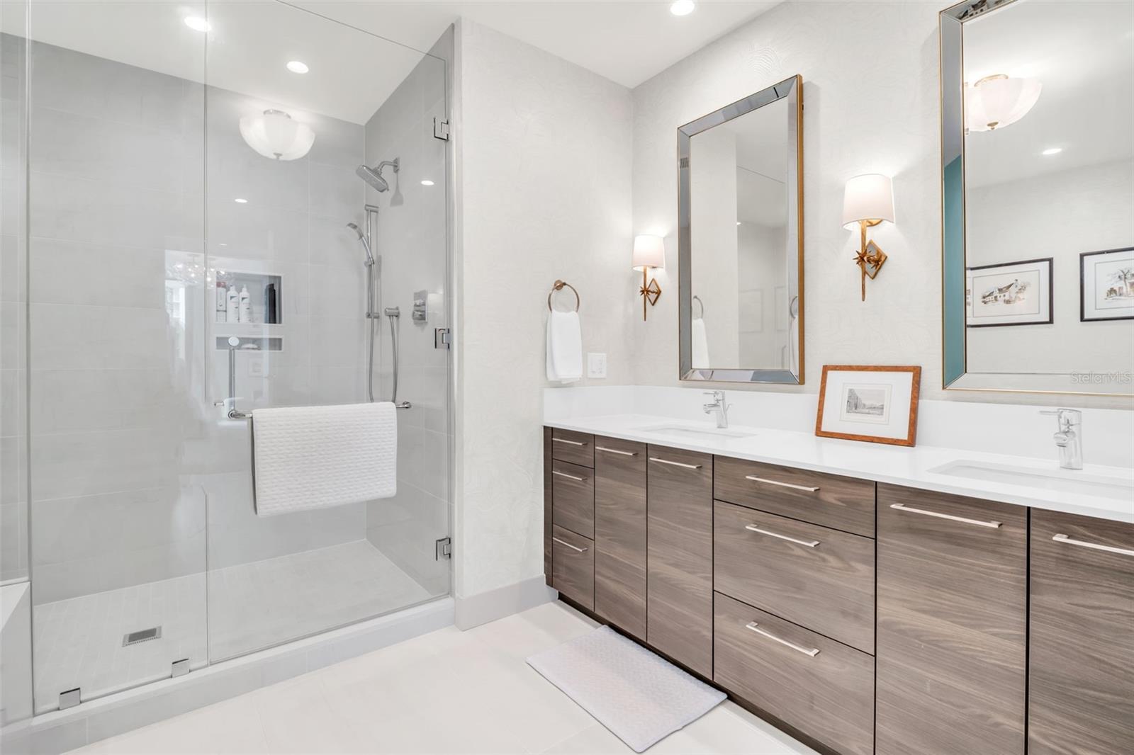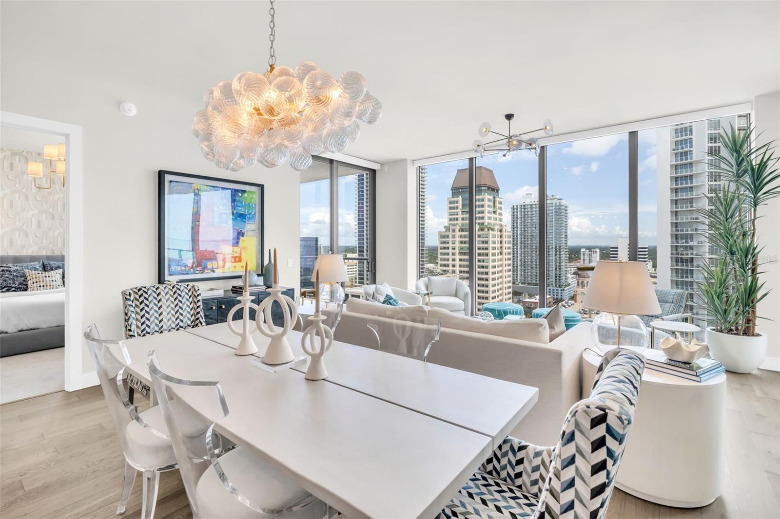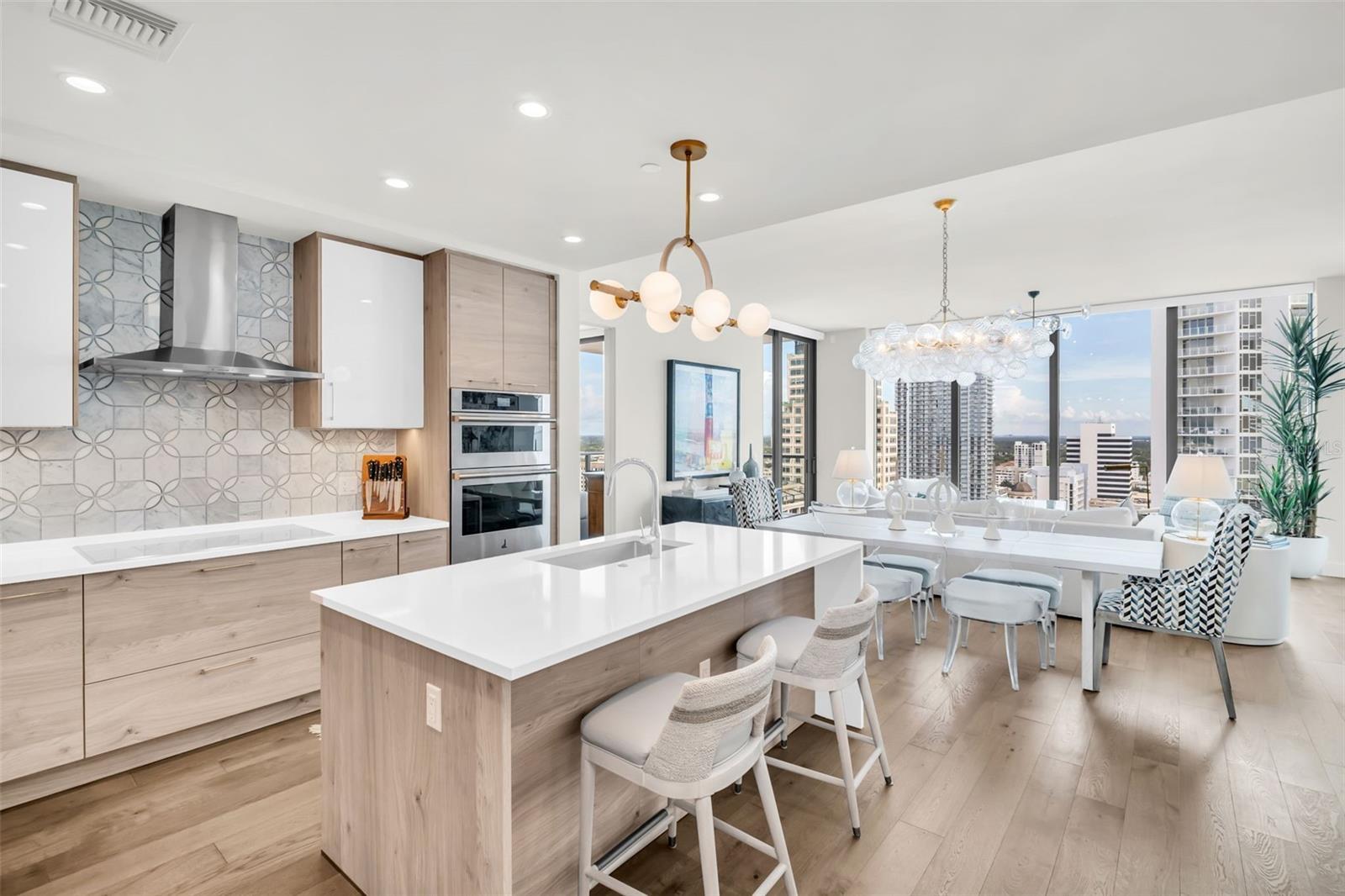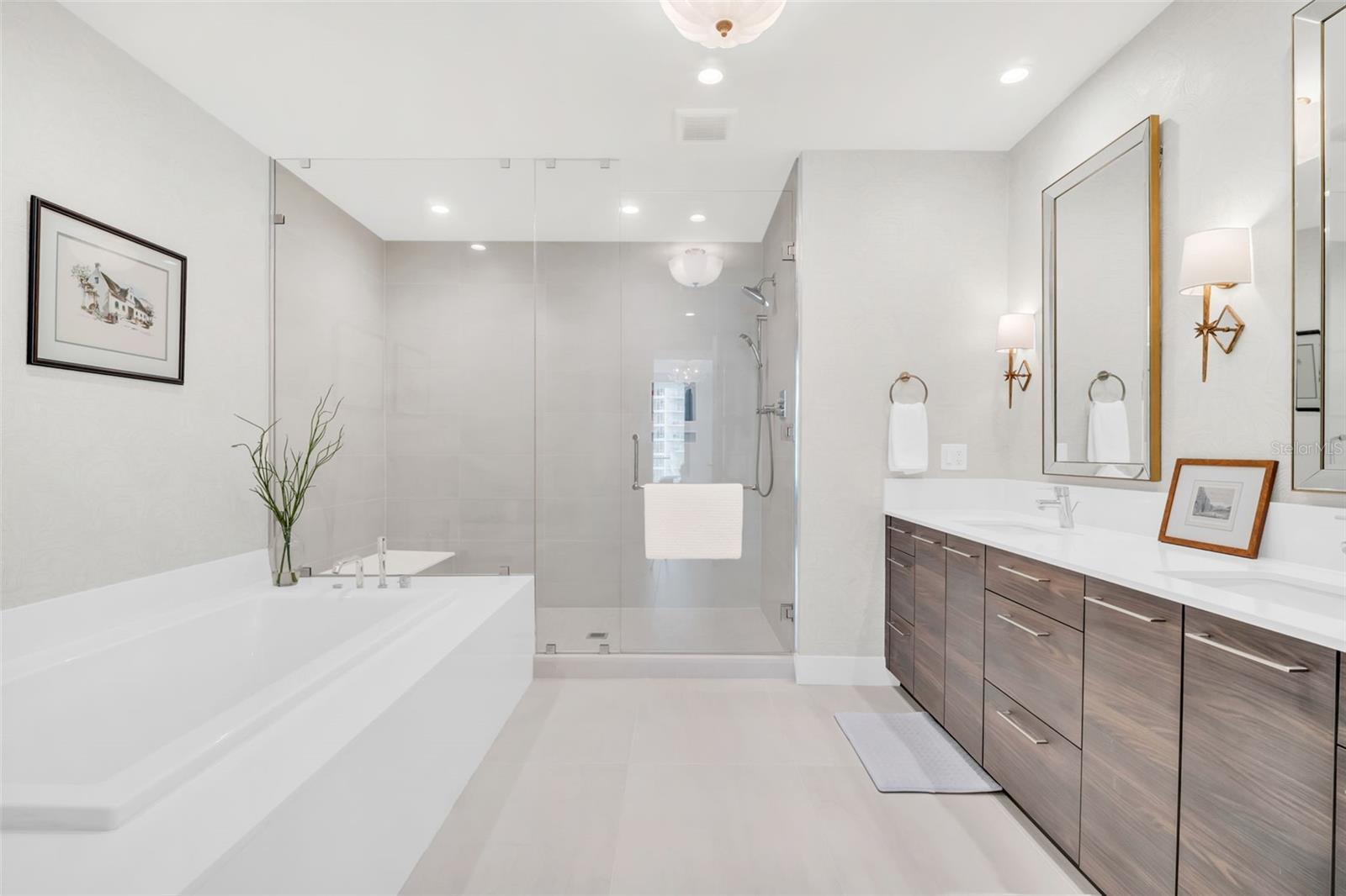 Experience the epitome of elevated city living in this stunning 2-bedroom plus den, 3-bath residence at Saltaire, offering 2,036 square feet of thoughtfully designed interior space. Every detail has been curated with designer touches and high-end upgrades, from hardwood floors throughout the main living areas to marble flooring in the hall bath and laundry. The bedrooms feature plush upgraded carpet, custom built-in closets, and power window treatments with hardwired blinds on every window. The gourmet kitchen is a chef’s dream with an induction cooktop, wine fridge, marble backsplash, pull-out pantry drawers, and designer lighting that enhances every space. Bathrooms showcase custom mirrors, drawers, and wall coverings for an added touch of sophistication. A rare convenience, the unit’s private storage closet is located just outside the front door, right beside the A/C closet. Adding to its allure, this residence boasts not one but TWO private balconies—ideal for enjoying morning coffee, evening cocktails, or simply taking in the energy of downtown St. Pete. Saltaire itself is a modern architectural masterpiece with sleek lines and expansive glass that floods each home with natural light. Residents enjoy world-class amenities, including a resort-style pool, state-of-the-art fitness center, stylish club rooms, a pet-friendly dog park, and an expansive 7th-floor terrace with panoramic views of the bay and downtown skyline. Perfectly situated in the heart of downtown, you’re just steps from award-winning dining, cultural attractions, waterfront parks, and vibrant city life. This impeccable Saltaire home offers not only luxurious finishes but also the unmatched lifestyle of one of St. Petersburg’s most prestigious addresses.