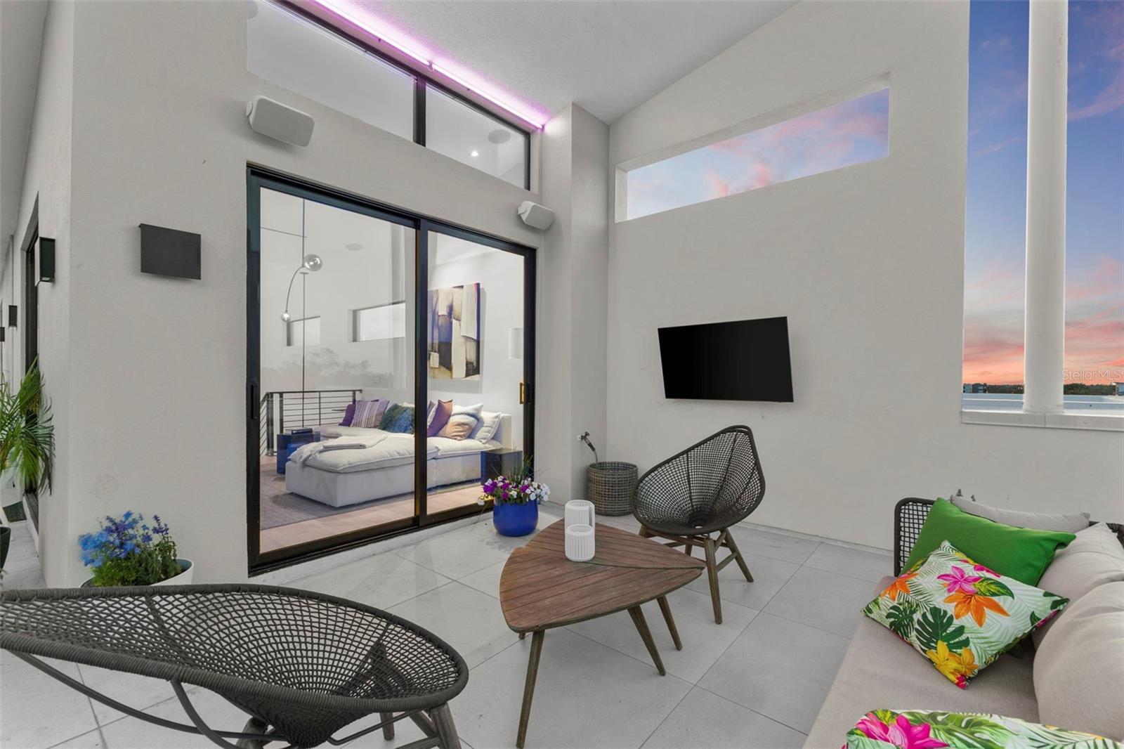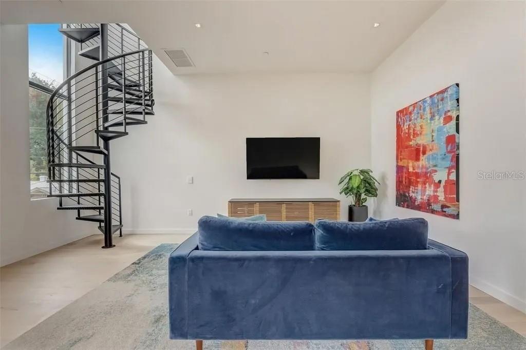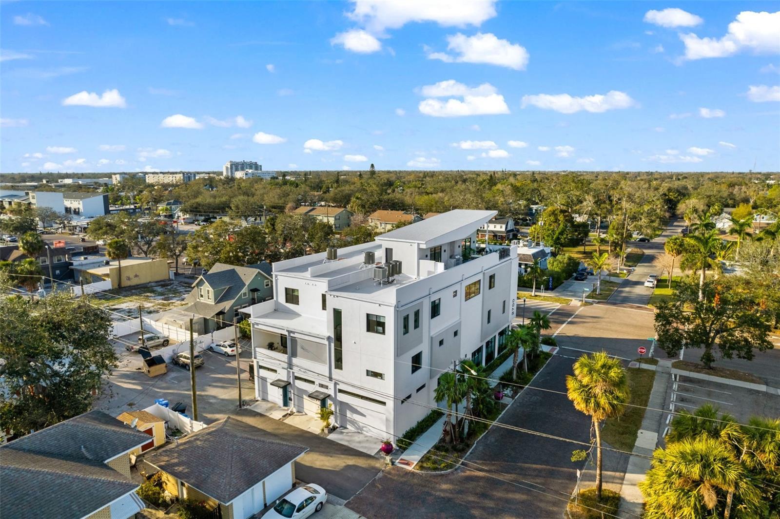 Welcome to an unparalleled urban oasis in St. Petersburg, FL. This 4,800 sq. ft. this Tribeca-style loft condominium offers three bedrooms, three full bathrooms, and two half bathrooms, including a separate ADU ideal for guests or a home office. This new construction home was built in 2024 by MTBH Studios, St Pete's premier modern luxury design team and builder. The entire home comes optionally immaculately furnished with curated furniture and walls decorated with works from local artists. Immerse yourself in a world of luxury and sophistication, where soaring 30 ft ceilings flood the space with abundant light, creating art gallery-quality environments. High-end finishes grace every corner, from Porcelanosa countertops to elegant bathrooms, all centered around a cozy fireplace that exudes modern charm. The gourmet kitchen features a Gaggenau appliance suite with a induction range with downdraft vent, double steam oven, speed oven, microwave/convection combo oven, dishwasher, and paneled fridge and freezer. Private 2nd floor balcony off the living room overlooks Central Avenues live oak trees, fabulous restaurants like Baba, Wildchild, Slim Charmer, and Bandit coffeeshop. The separate third-floor loft media room, complete with a wet bar, wine fridge, surround sound, and half bathroom, is perfect for entertaining and stunning views of downtown St Pete highrises and nearby Tropicana Feild. All 4 floors are accessible by a home elevator that takes you from the garage level up to the roof top. Smart home features include WAC 4" lighting and sound speakers throughout, all easily controlled from your smartphone. Floating stairs lead to a spectacular rooftop retreat , expansive private roof deck, replete with an outdoor kitchen and a platform ready for a soaking tub, all offering panoramic views of St. Pete. With a two-car garage with epoxy floors and a street entrance, this townhome provides both convenience and privacy. Located in the vibrant Grand Central District, you're in the heart of St. Petersburg's best dining, art, music, and entertainment scene, with the Gulf beaches just minutes away. Experience single-family home luxury with the low-maintenance benefits of a condominium and a low HOA. Your sophisticated urban retreat awaits!