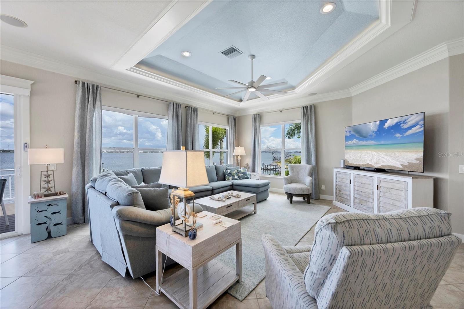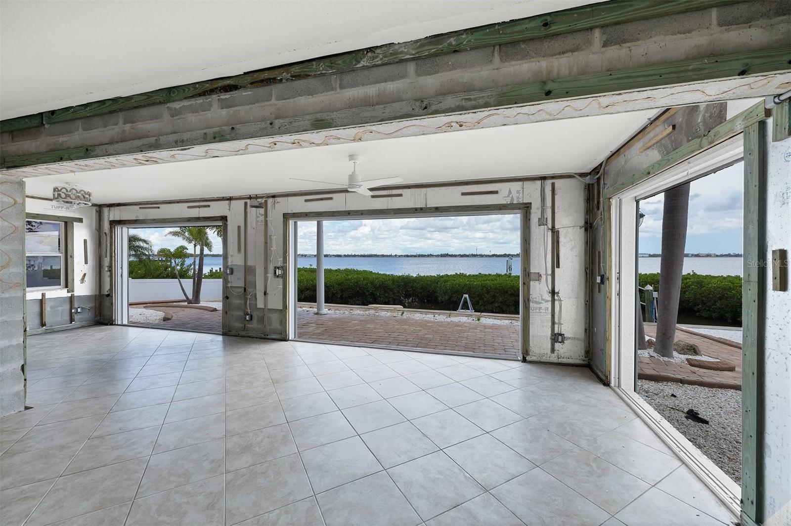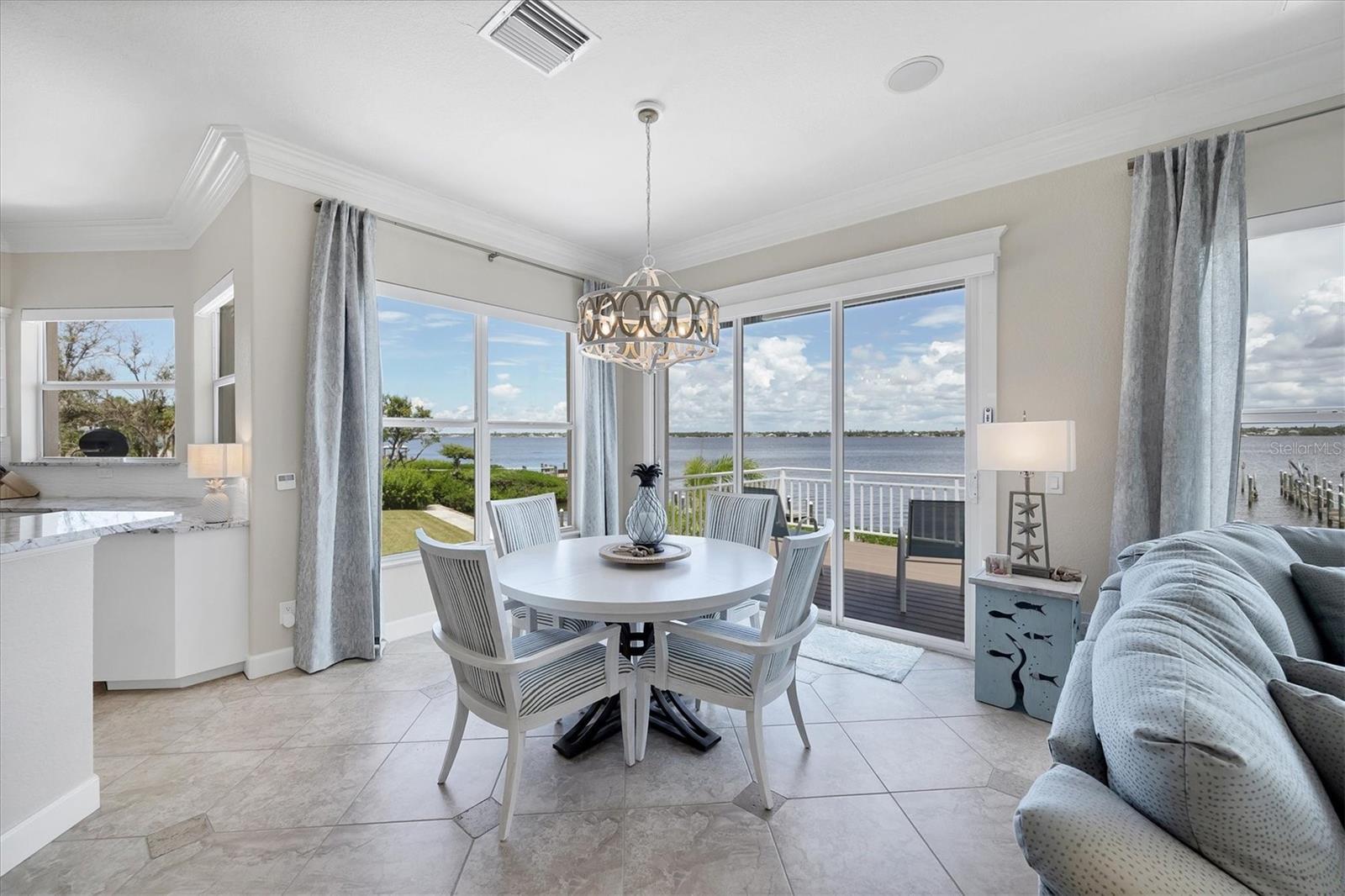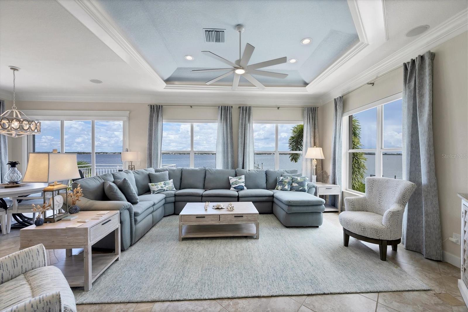 PARADISE FOUND!!! With breathtaking panoramic unobstructed views of Lemon Bay this elevated home offers the luxury and elegant coastal lifestyle you have been dreaming of. Located at the end of very quiet street you will enjoy peace and tranquility while watching dolphins, manatees, and other native Floridian wild life along with boating, fishing, kayaking and other water activities. Property being sold completely furnished, turn key and move in ready. Upon entering through the beveled glass doorway you will be greeted by the beautiful spacious open living area. Abundance of large windows and sliding door allows for plenty of natural light. Gourmet kitchen is a cooks dream with plenty of cabinetry, closet pantry, granite countertops, stainless steel appliances and expansive breakfast bar. Adjoining dining and family rooms make it perfect for entertaining. Family room features soaring trey ceilings, ceiling fan, custom crown molding, recessed lighting, and ceramic tile floor. Relax and enjoy the sunrise with your morning coffee or unwind at the end of the day with a evening beverage on the newly redone east facing balcony/deck with retractable awning. Primary bedroom is large with walk in closet, tray ceiling, and en-suite bath with dual vanities, separate glass enclosed shower, and soaking tub. Sliding doors off bedroom opens to screened private balcony with water views. Hallway leads to two additional large bedrooms each with walk in closets and an additional bathroom. Amble size laundry room with full size washer and dryer. Norman plantation shutters enhance windows. Lower level was damaged by hurricane Milton but is a blank slate with numerous possibilities such as open covered patio, storage area, game room, etc. Electronic hurricane shades have recently been installed for added protection and peace of mind. Garage boasts space for 3 cars and also additional space for workshop or storage. Attached carport can accommodate 2 cars for additional parking or boat storage. Brick paved driveway and maintenance free shell yard along with landscaping enhance the exterior of property. The 200 foot private dock sustained damage from hurricane Milton and is currrently in process of being repaired. Lower level is also being renovated from water trusion. There is a community deeded beach access steps away to enjoy the Gulf beach and beautiful sunsets. Home is meticulously maintained, better than new!! Experience the epitome of Florida waterfront living, Make this your new home and make memories to share and last a lifetime.
