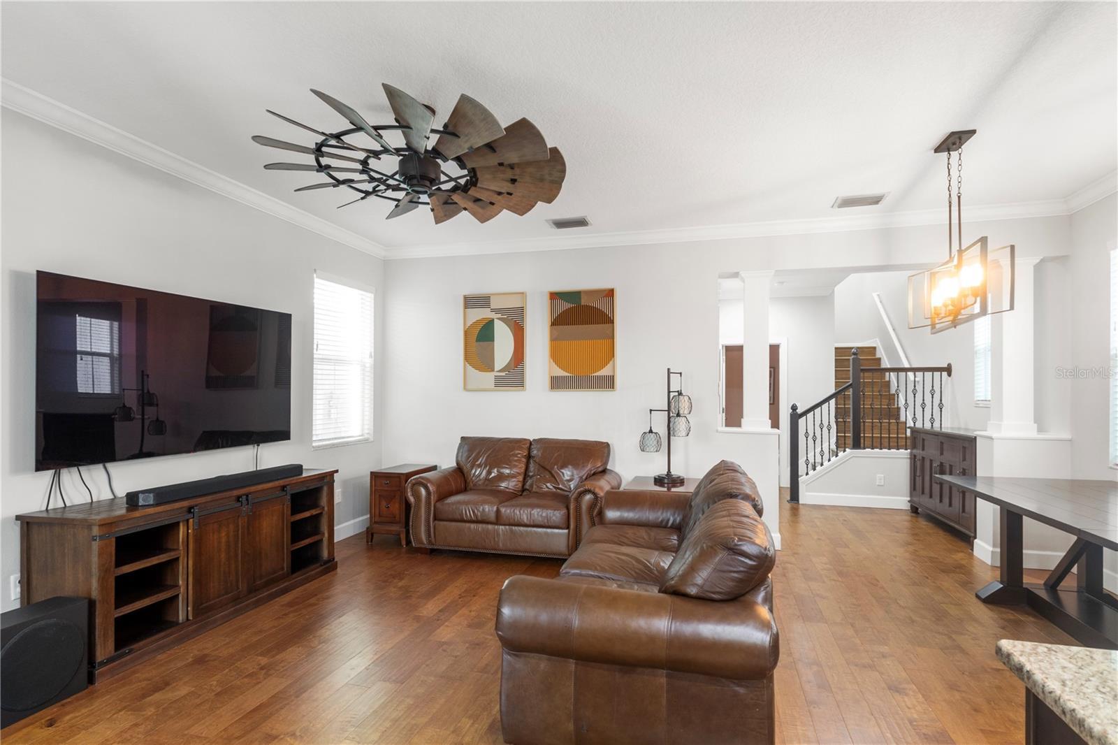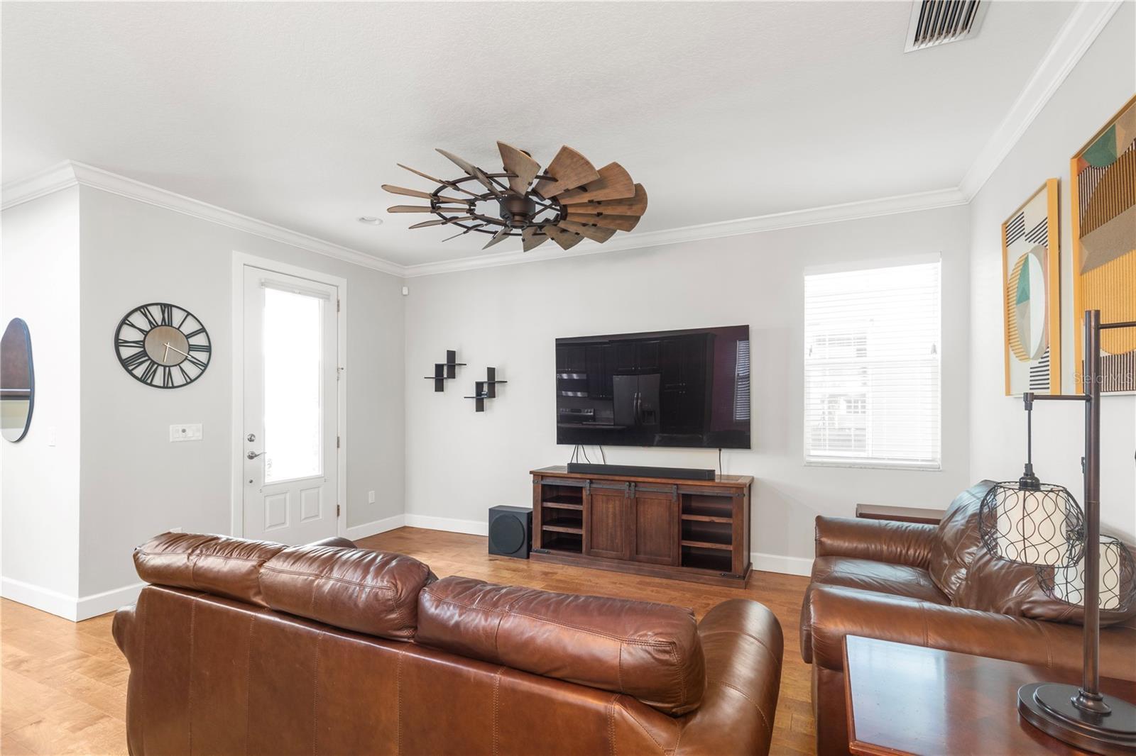 - Ceiling Fans(s), Crown Molding, High Ceilings, Open Floorplan, Solid Surface Counters, Solid Wood Cabinets, Thermostat, Tray Ceiling(s), Walk-In Closet(s)