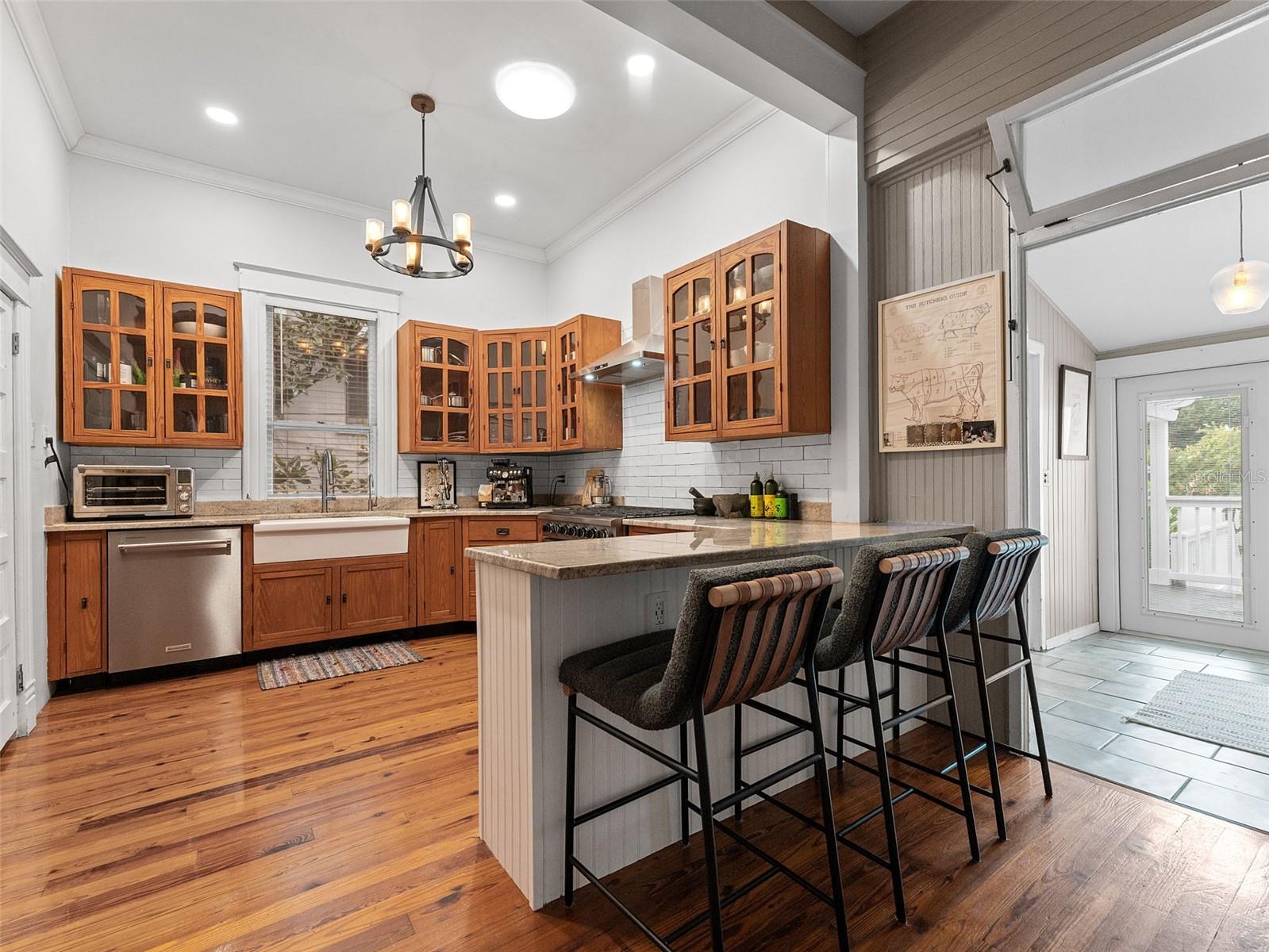 - Built-in Features, Crown Molding, High Ceilings, Primary Bedroom Main Floor, Walk-In Closet(s)