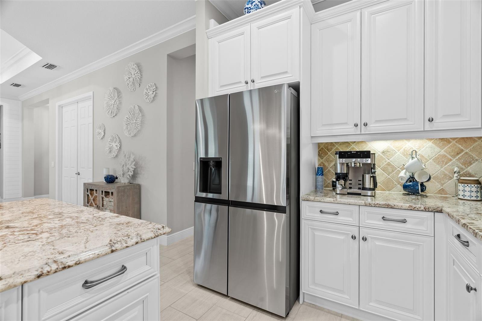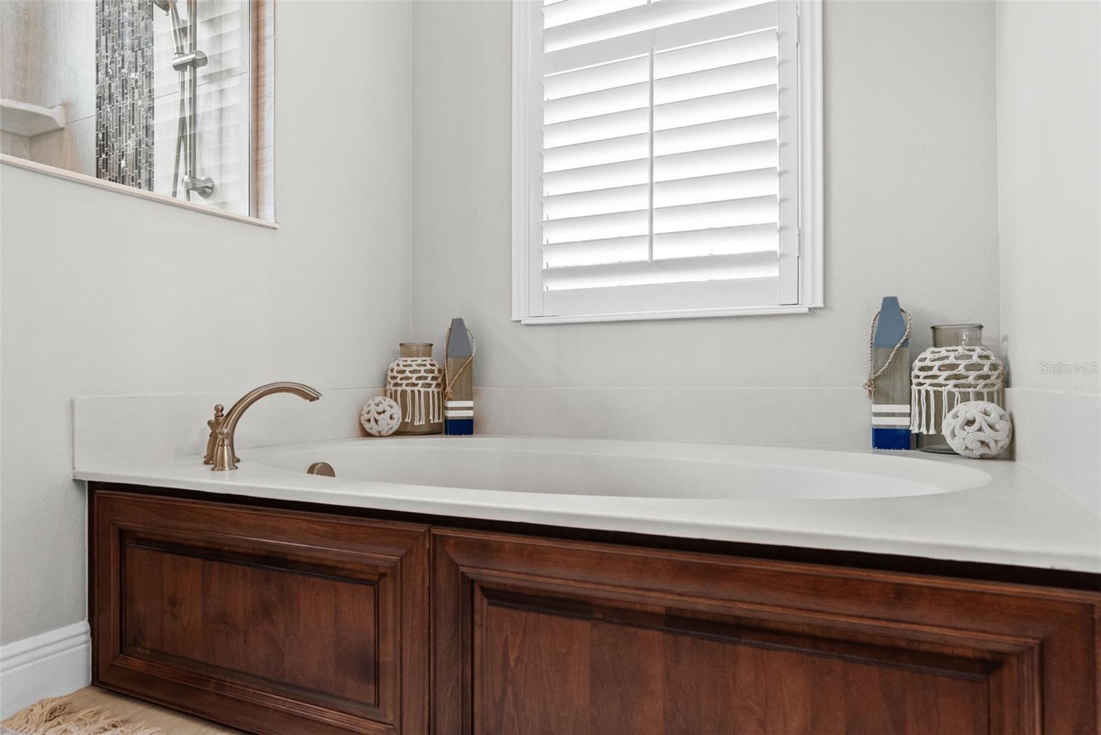- Ceiling Fans(s), Crown Molding, Eat-in Kitchen, High Ceilings, Kitchen/Family Room Combo, Open Floorplan, Primary Bedroom Main Floor, Solid Surface Counters, Solid Wood Cabinets, Split Bedroom, Stone Counters, Tray Ceiling(s), Walk-In Closet(s), Window Treatments