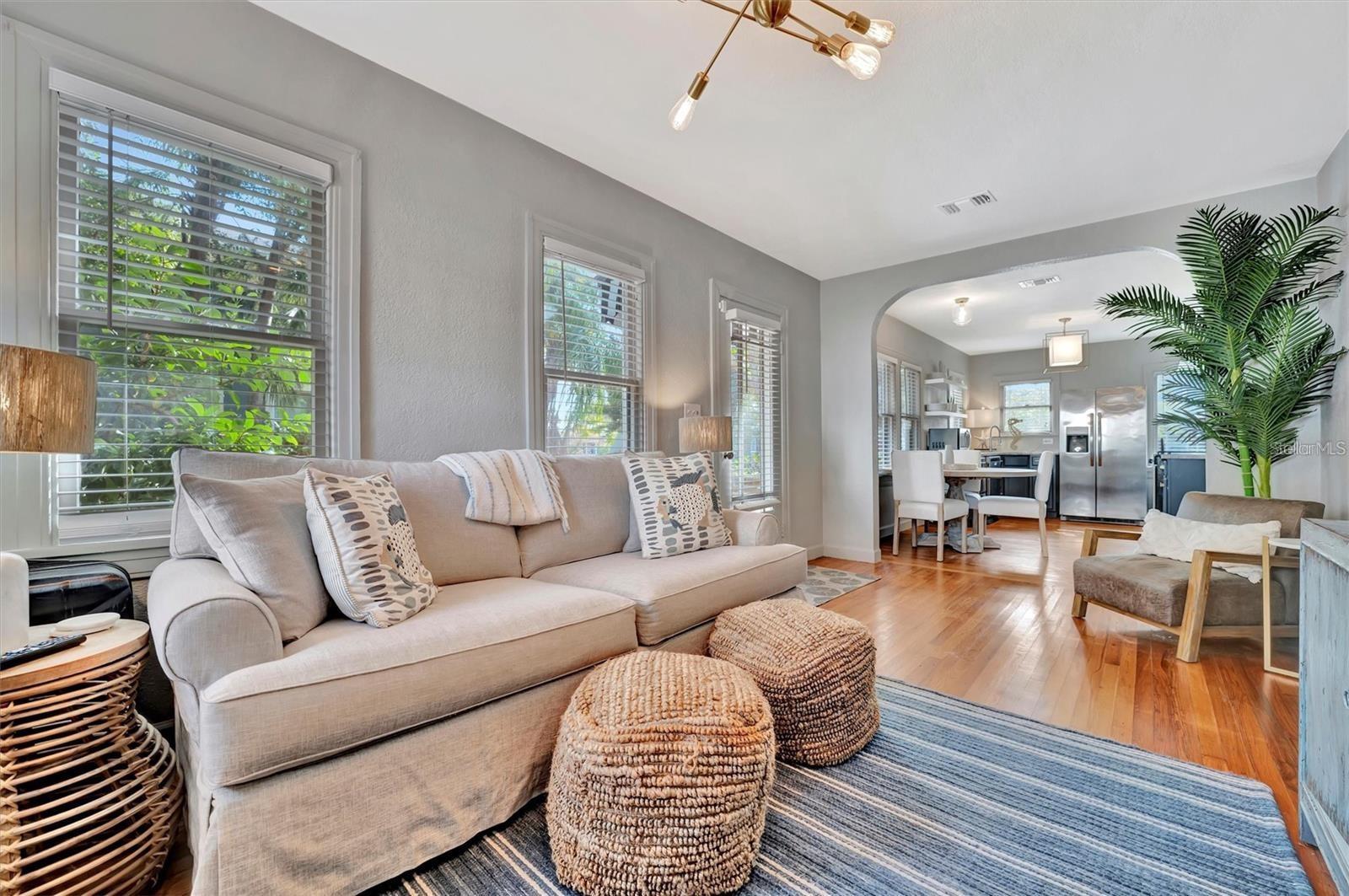 Prime Location - Old Northeast in St Petersburg, walking distance to downtown! Rare Opportunity to own Completely Renovated Single Family House with a Separate INCOME Producing Property in the Backyard. Each unit was thoughtfully designed to maximize comfort, style and efficiency. Plenty of natural light, creating a bright and airy atmosphere. Sold FULLY FURNISHED and upgraded to modern living lifestyles. Non-Flood Zone. Non-Evacuation Zone. Safe and Dry after the hurricanes. High end finishes have been used throughout the entire property. Additionally, each unit features its own off-street parking place and a shared laundry. Both buildings are also sharing the serene, fully fenced yard, perfect for entertaining or for a POOL. NEW FLAT ROOF over the lower unit was just installed. The Main Residence, an updated single-family home, features two spacious bedrooms and two baths. The two-story building is located at the back of the property yard and consists of three additional apartments: two are located on the first floor and one is upstairs with its own outside staircase and separate entrance for privacy. This unit boast a spacious enclosed balcony. Entirely surrounded by windows, this space features plenty of natural light which creates a cozy and welcoming atmosphere. This unique property is nestled in one of most sought-after neighborhoods in St. Petersburg with brick streets, towering oak trees and it is just 3 blocks off the North Shore waterfront and parks. It is easily walkable to downtown St. Pete restaurants, marinas, world class museums, markets, shopping, the Pier and weekend festivals. Experience the perfect blend of urban convenience and Old Florida charm in St. Petersburg's Most Desired Neighborhood, Old Northeast. The main house and apartments operate at virtually 100% occupancy as a lucrative and efficient investment property. Tenants typically remain for multiple years due to the great location and quality of life here. The entire property can be rented or the owner could live in the front single family home and rent the remaining units. The Quadplex consists of a Single family home - 2 bedrooms, 2 full baths (788 sf); Downstairs apartment - 1 bedroom, 1.5 baths (763 sf); Downstairs studio (283 sf); Upstairs apartment - 1 bedroom, 1 bath (839sf);