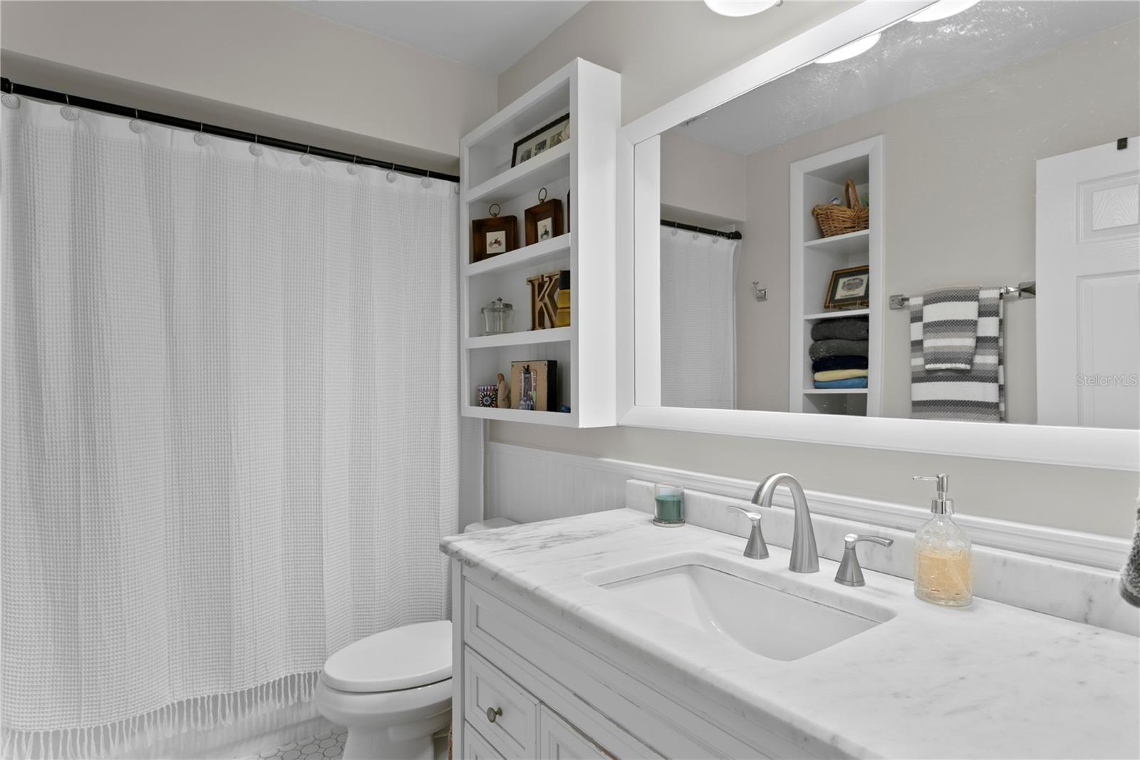 Buyer's Relocation Changed - this home is ready for You! This 5 bedroom, 3 bathroom home is situated on a large, picturesque lot in sought-after Culbreath Bayou. The home blends the classic Cape Cod charm with beautiful, modern renovations throughout. The entry leads into the large formal living room with views of the patio and backyard. The dining room has a bay window and is open to the newly renovated kitchen with quartz counters, an island, all new appliances including a wine fridge, and two sinks. The family room has a cozy fireplace and French doors that lead to a covered, screened lanai with tongue and groove ceiling – perfect for indoor/outdoor living and entertaining! The first-floor primary bedroom suite has a double closet with built-in shelving and newly remodeled bathroom with double vanity and tiled shower. Two additional bedrooms on the first floor share a full bathroom with a claw foot tub. Upstairs, two spacious bedrooms have ample closet space and share another full bathroom. Attic eave access offers additional storage space. A breezeway from the main home serves as a mudroom/laundry room and butler’s pantry, with ample cabinet space for storage. The fully fenced, and large backyard is serene and private. Other features of this home include engineered wood flooring, plantation shutters, crown molding, newer windows and roof.