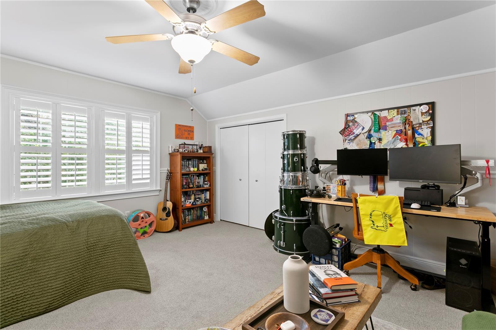 - Ceiling Fans(s), Open Floorplan, Primary Bedroom Main Floor, Stone Counters, Thermostat, Window Treatments