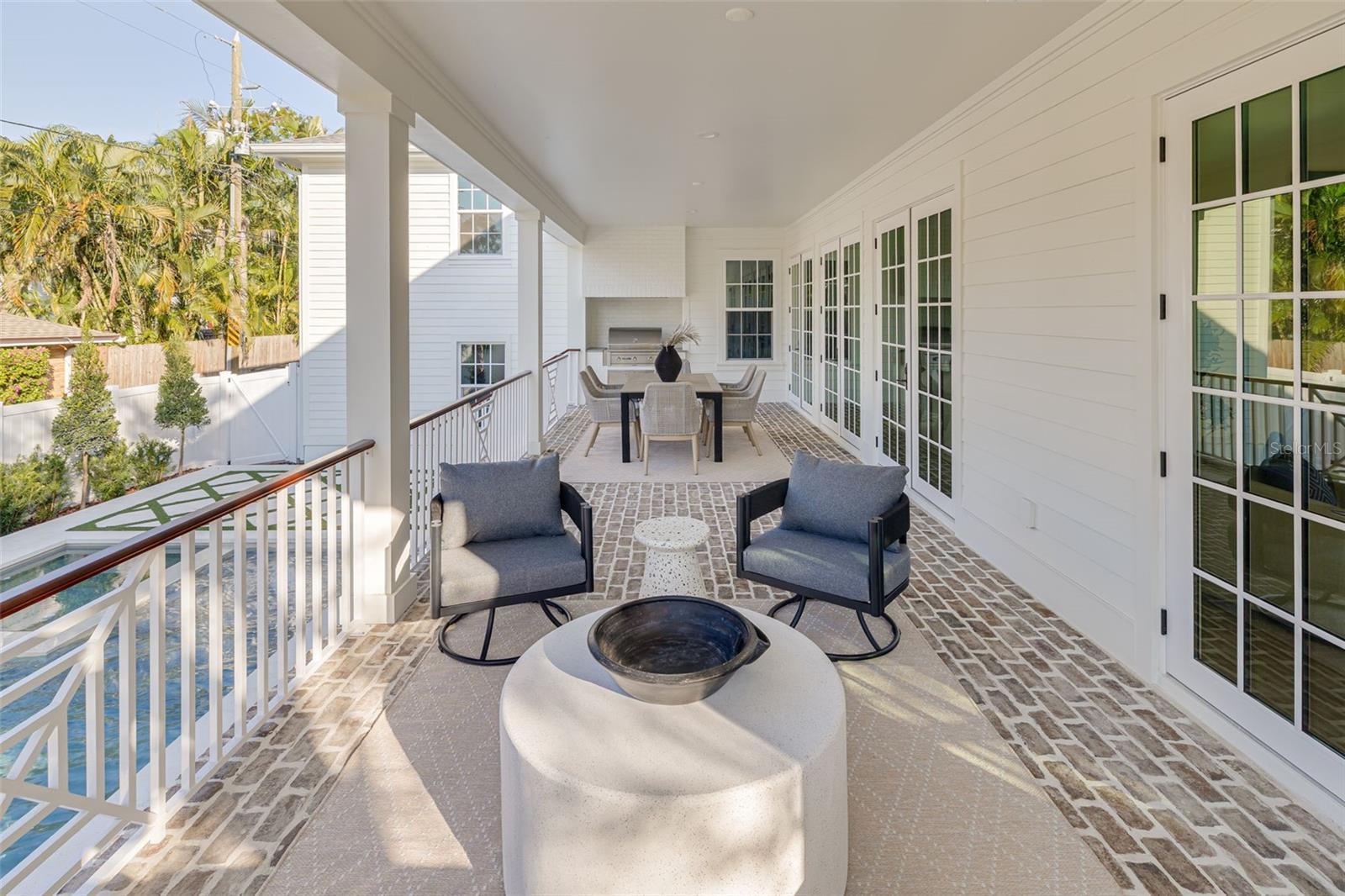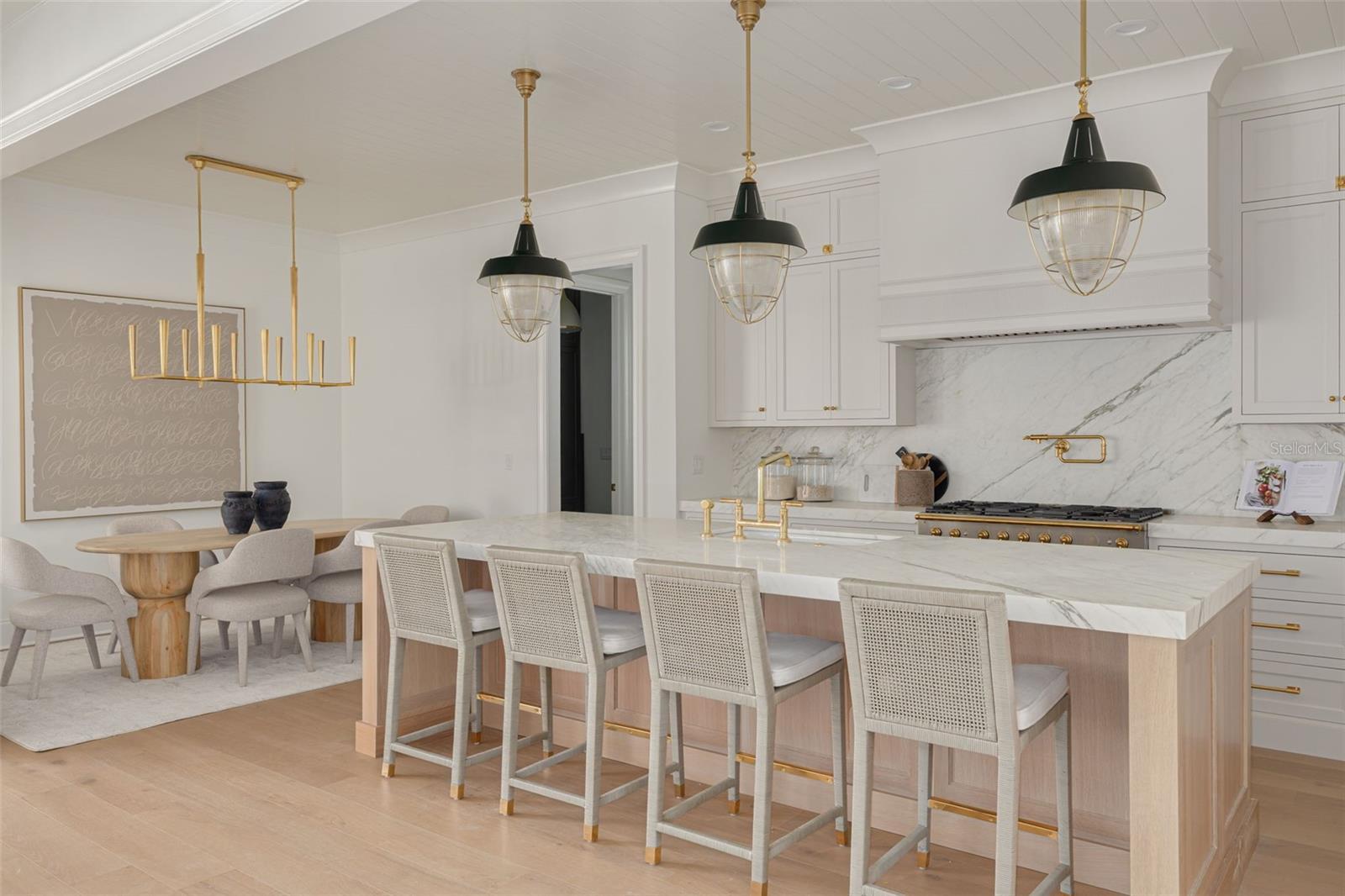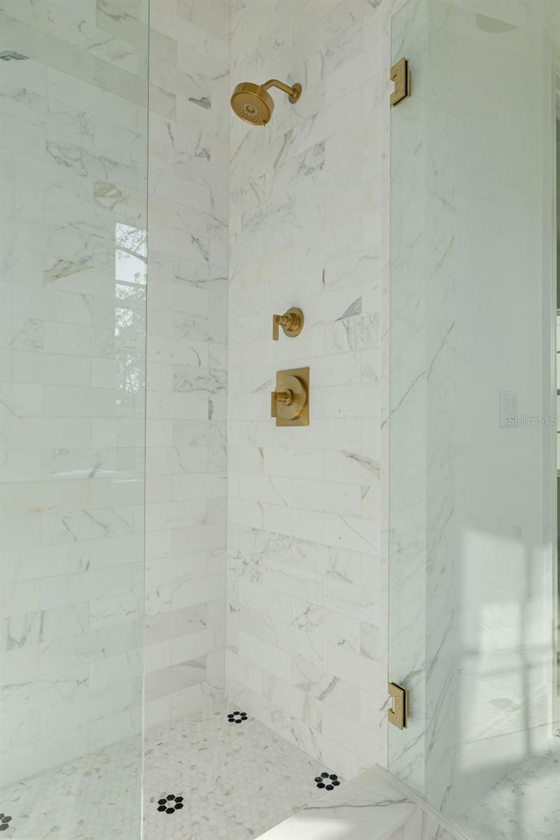 This is a MOVE-IN READY CANOPY SIGNATURE HOME in collaboration with LAUREN LEITNER DESIGN. Would you love to live just steps from BEACH DRIVE in St. Petersburg’s coveted Historic Old Northeast in a custom designed Canopy Home? Here’s your chance to make that dream a reality with Canopy Builders – St. Petersburg’s most trusted name in luxury home construction. This new build sits on a desirable 89 x 110 sq ft corner lot and offers 4 Bedrooms (FIRST-FLOOR PRIMARY SUITE) + Study + Loft, 4 Baths, an oversized 2-car garage, pool and spa, plus an Accessory Dwelling Unit (ADU) with 1 bedroom and 1 bath. The main residence boasts 3,985 sq ft of living space, with the ADU adding 589 sq ft for a total of 4,574 sq ft under air. The ADU includes a full kitchen, laundry, and walk-in closet—ideal for guests, extended family, or rental income. Surrounded by brick streets and mature oak trees, this home blends modern luxury with timeless character, just a 10-minute walk to downtown St. Pete and the waterfront parks. From the welcoming front porch, you enter a foyer with tongue-and-groove paneling and designer lighting, while the formal dining room showcases grasscloth wallpaper, wainscoting, and a statement chandelier. The great room boasts a fireplace and coffered ceilings, flowing seamlessly into the kitchen, designed as both a chef’s dream and a gathering space. The kitchen features a La Cornue range, paneled Sub-Zero refrigerator, Bosch dishwasher, and inset custom cabinetry, anchored by a white oak island with Calcutta marble countertops, tongue-and-groove ceiling, and a custom reeded range hood. A breakfast nook with a gold pendant sits just beyond, while the butler’s pantry impresses with a paneled Avalon wine cooler, deep green cabinetry, brass shelving, marble counters, and gold hardware. The main level also includes a mudroom with dark cabinetry and brick herringbone flooring, a powder room with wallpaper and a soapstone vanity, and a laundry with custom cabinetry, marble checkerboard floors, and Calcutta counters. The primary suite offers wood-beamed ceilings and a spa-like bath with gold accents, fluted vanities, and Calcutta marble. Upstairs, a loft opens to three bedrooms, each with its own en suite, including designs with navy handcrafted tile and dark wood vanity, gingham tile with marble accents, and a white reeded vanity with silver hardware. The upstairs laundry includes deep green tile, Carrera marble counters, and soft white cabinetry. Canopy not only designed the interior but also customized all exterior finishes. Out back, enjoy a custom pool and spa, outdoor kitchen with grill and brick hood, and lush surroundings. The detached ADU includes quartz counters, white cabinetry, and subway tile backsplash. Planned features include Hardie Board siding, a tankless gas water heater, impact-resistant windows, and engineered hardwood floors throughout. Dual digital thermostats allow independent climate control. Additional luxuries include 10’ ceilings on the first floor, 9’ ceilings on the second, 8’ interior doors, and Canopy’s signature gas sconces on the porch. This home is walking distance to waterfront North Shore Park, biking distance to downtown, and just a 20-minute drive to St. Pete Beach or Tampa. Contact us to learn more about the custom finishes that make this home truly one of a kind.